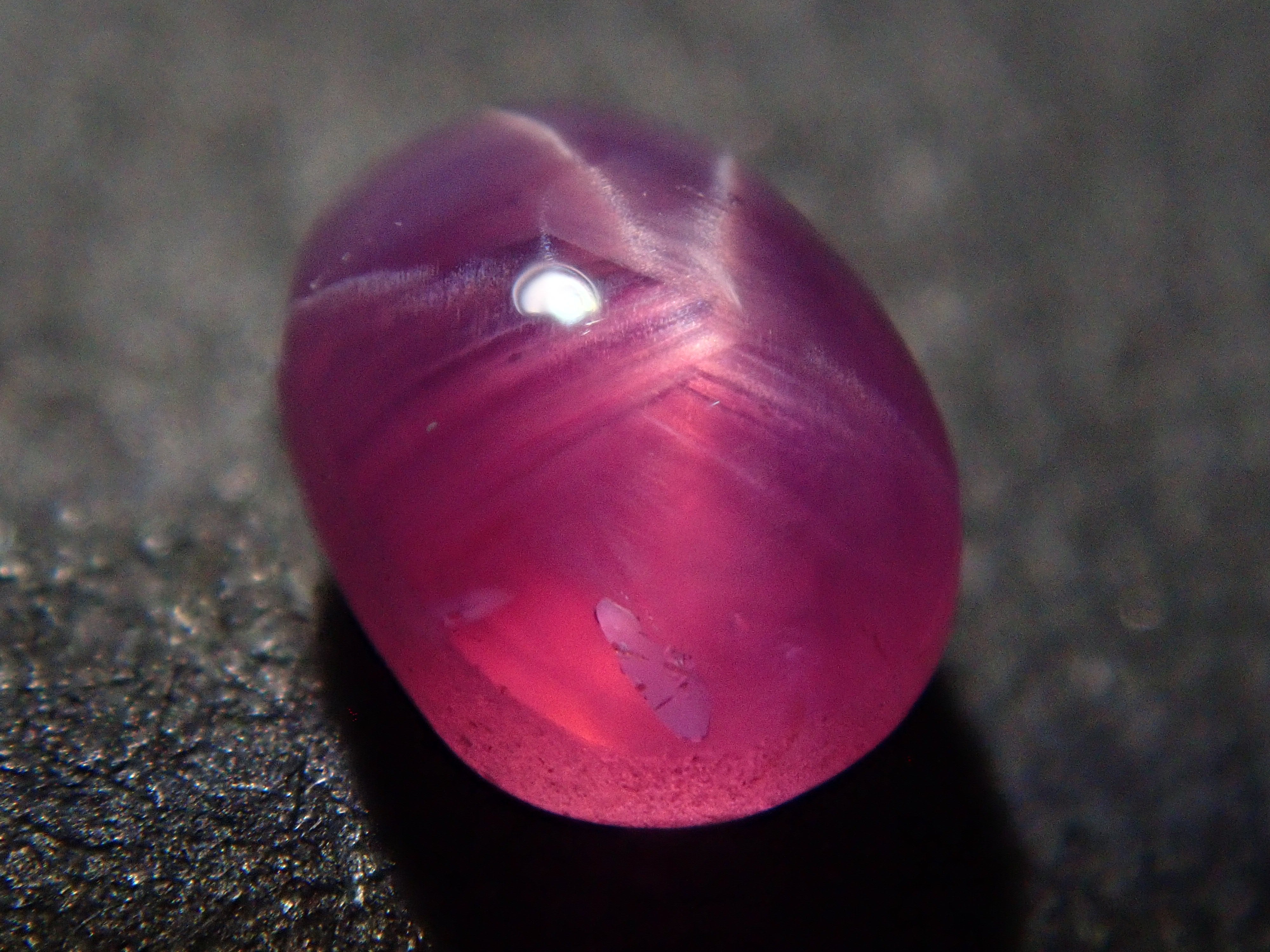 紅寶石自古以來就備受珍視。它指的是紅色剛玉。紅寶石的硬度為9,是僅次於鑽石的第二硬寶石,而且韌性強、穩定性高,易於保養。這顆紅寶石呈現出星光效果,照片使用了筆型手電筒拍攝。寶石背面基本未經拋光。附有真品證書。
