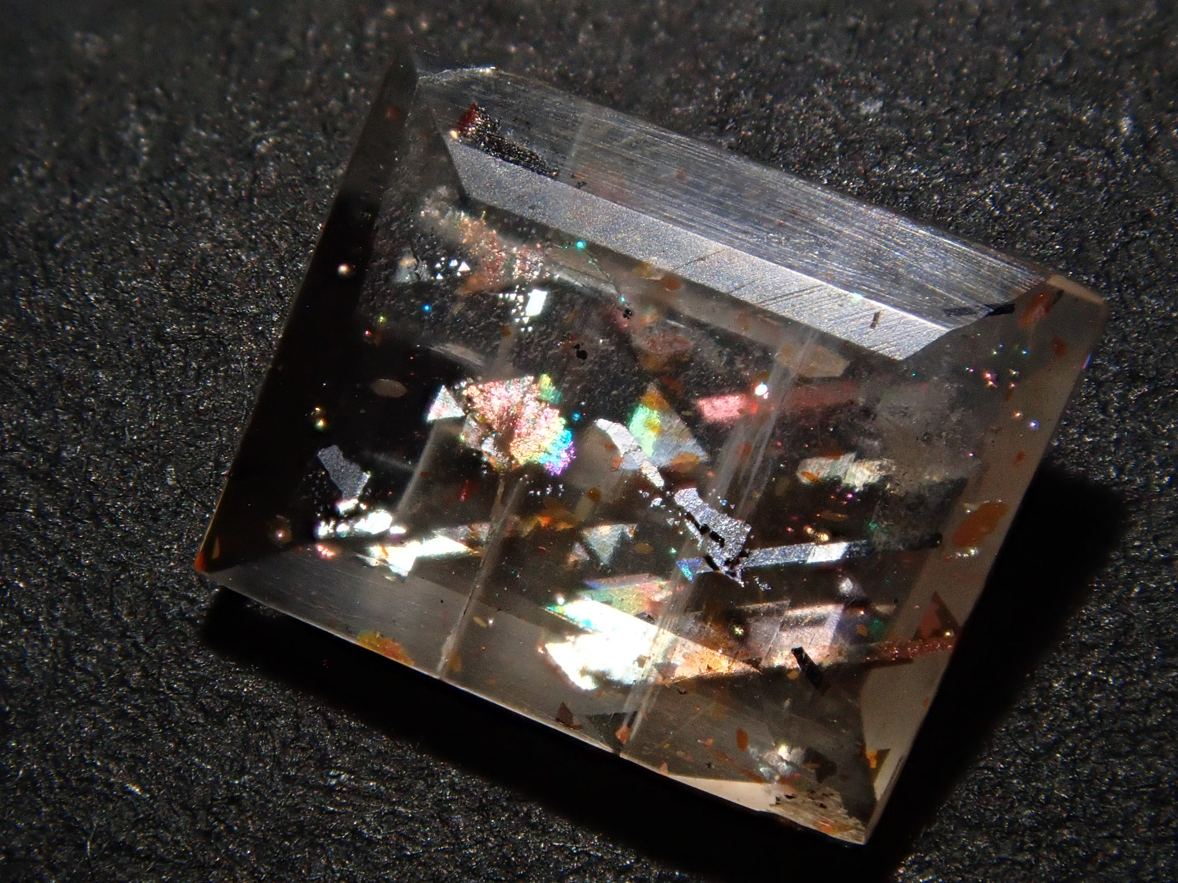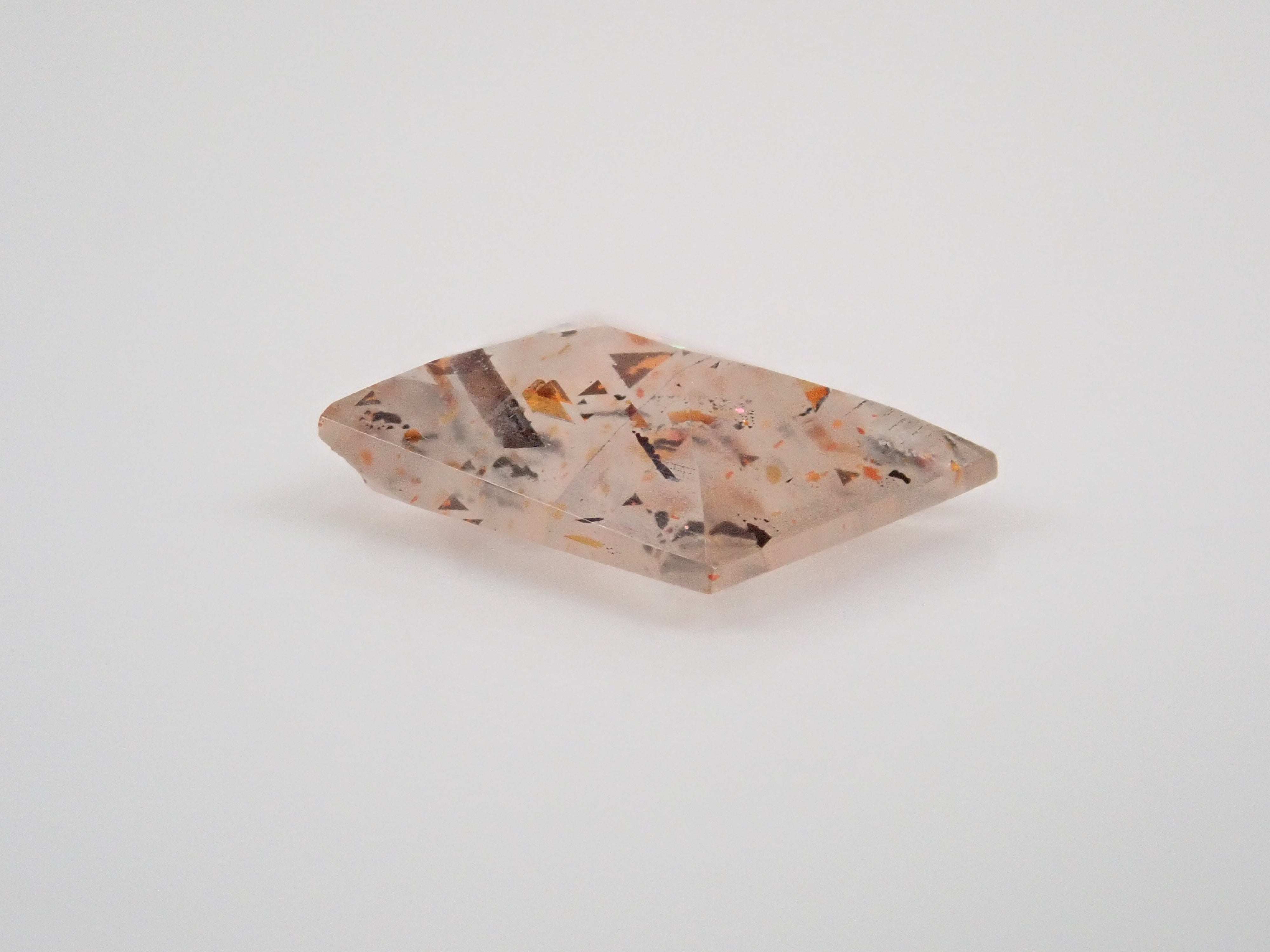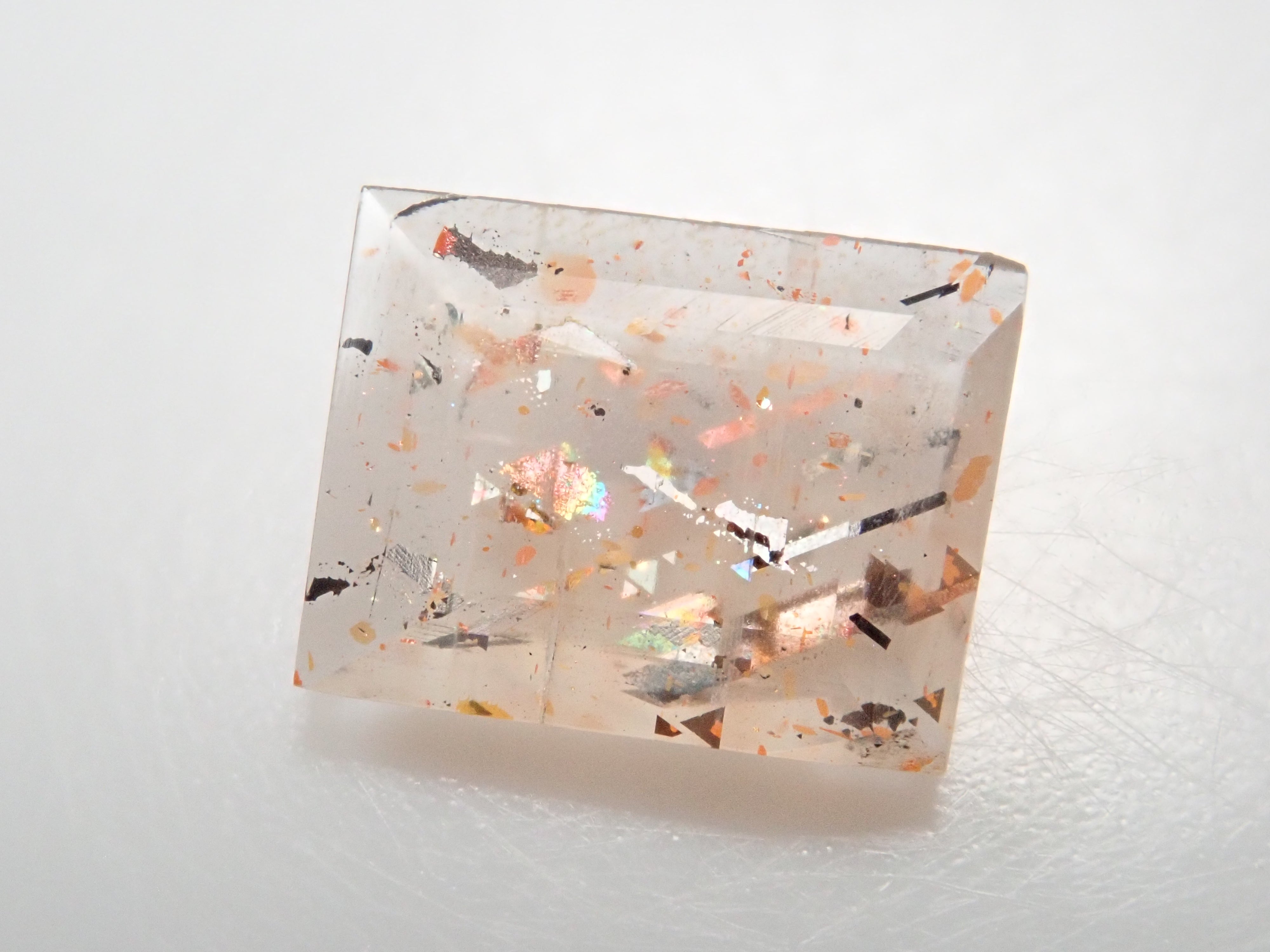 彩虹格子日光石據說是所有日光石中最稀有的一種。月光石的彩虹暈彩效果與彩虹格子(格子圖案)的結合極為罕見,使其成為最稀有的日光石。它屬於長石族的正長石類型,被稱為彩虹格子日光石(商業名稱)。這是圖森新發現的一塊彩虹格紋日光石。