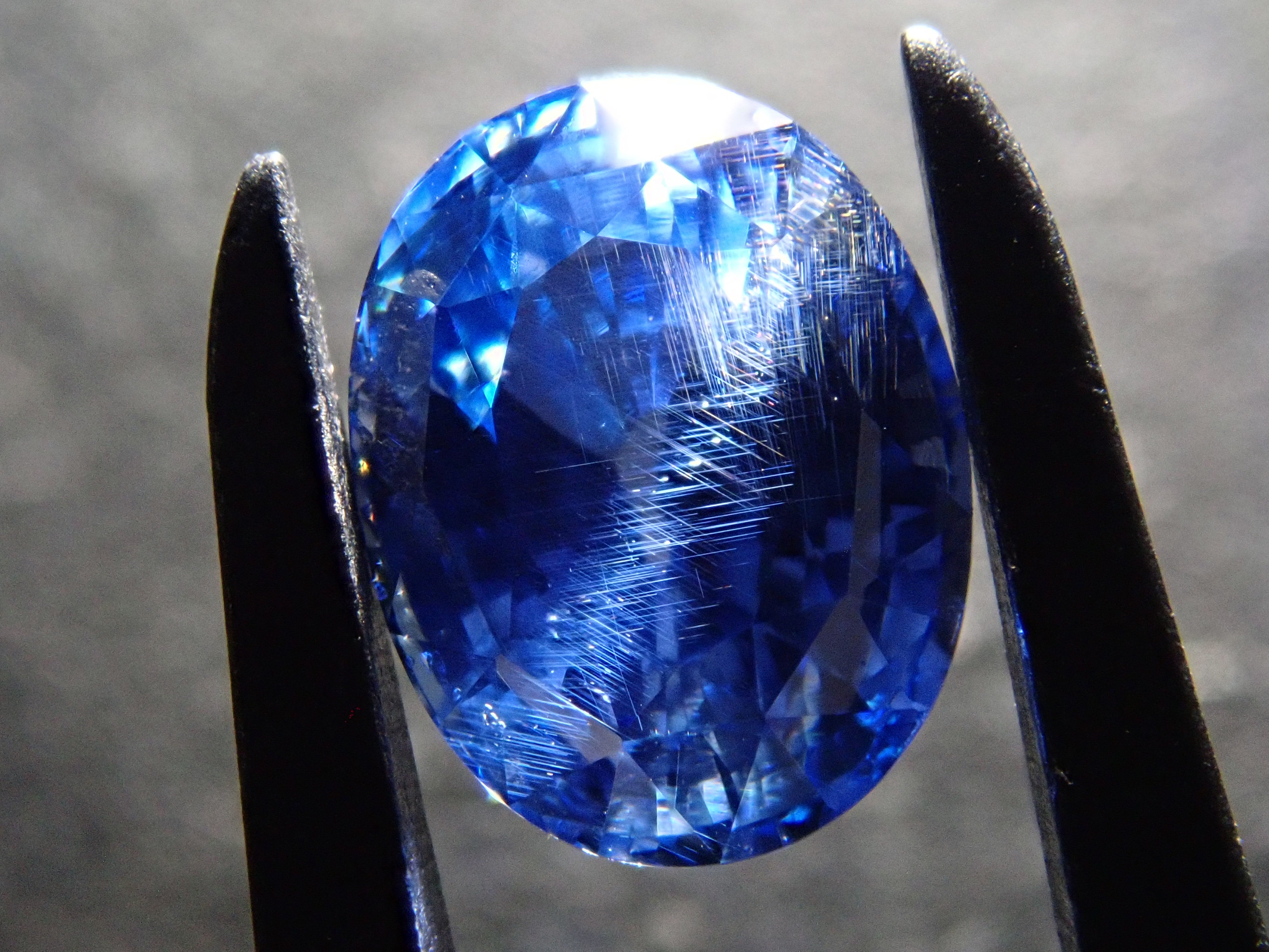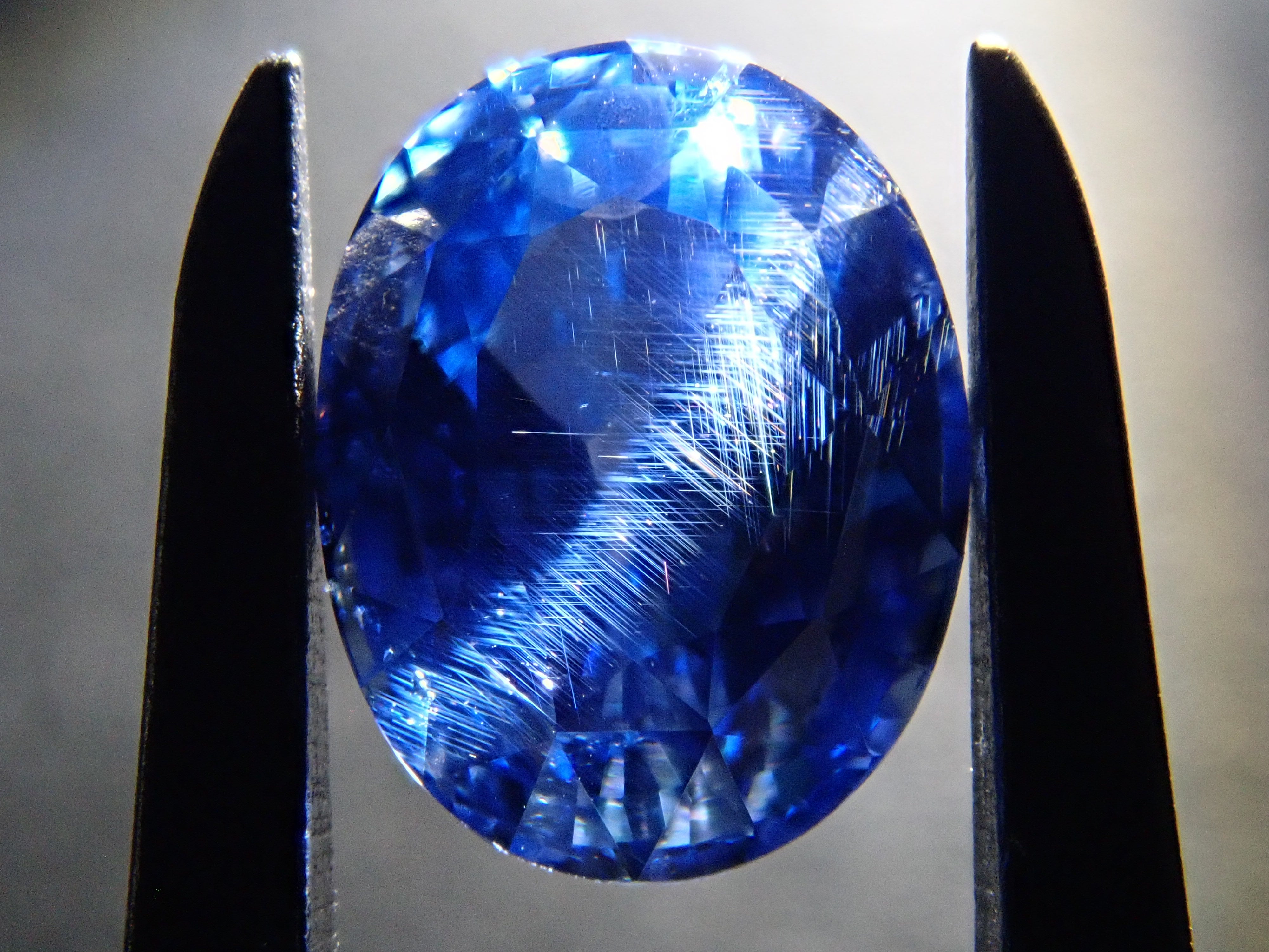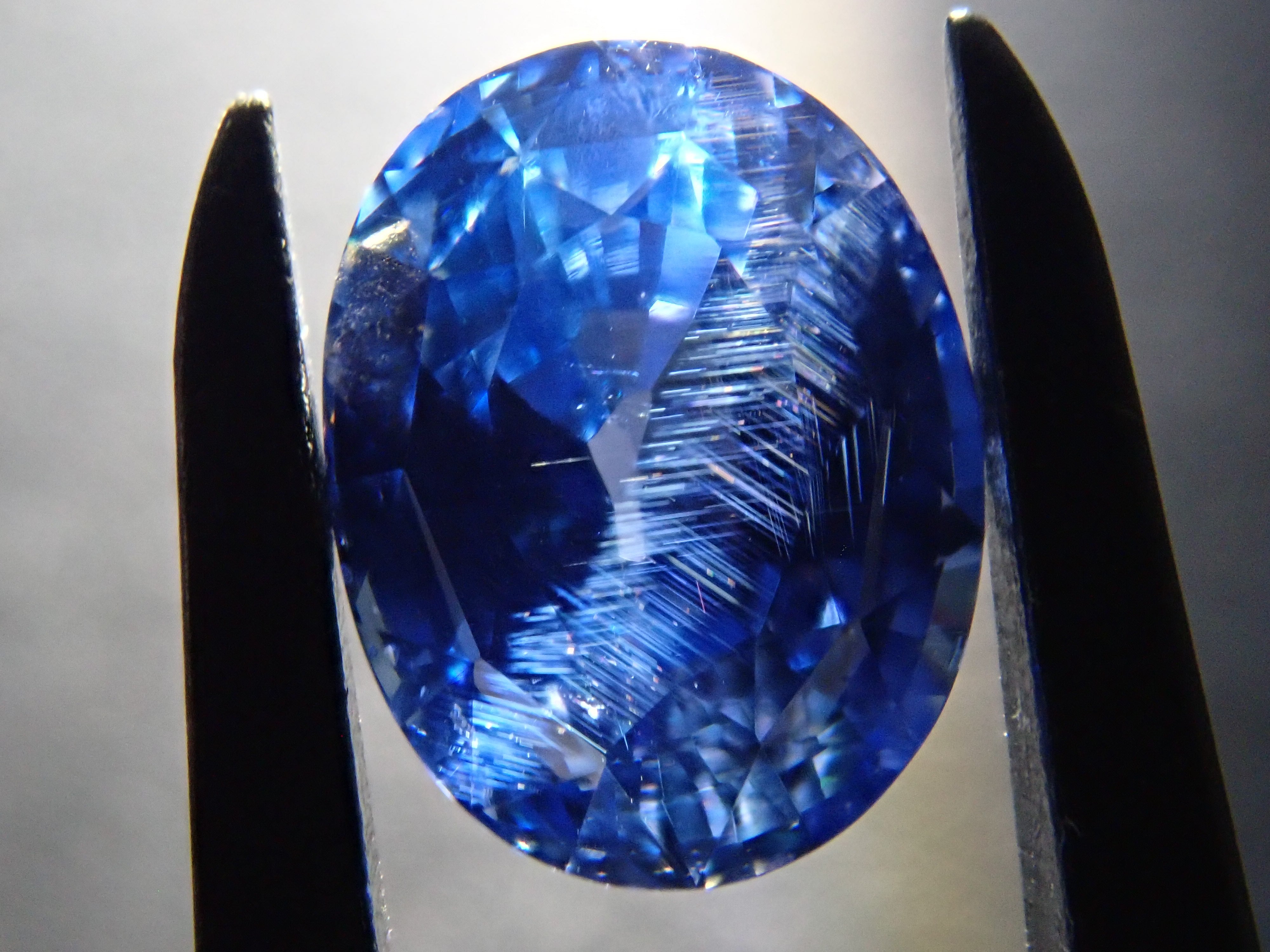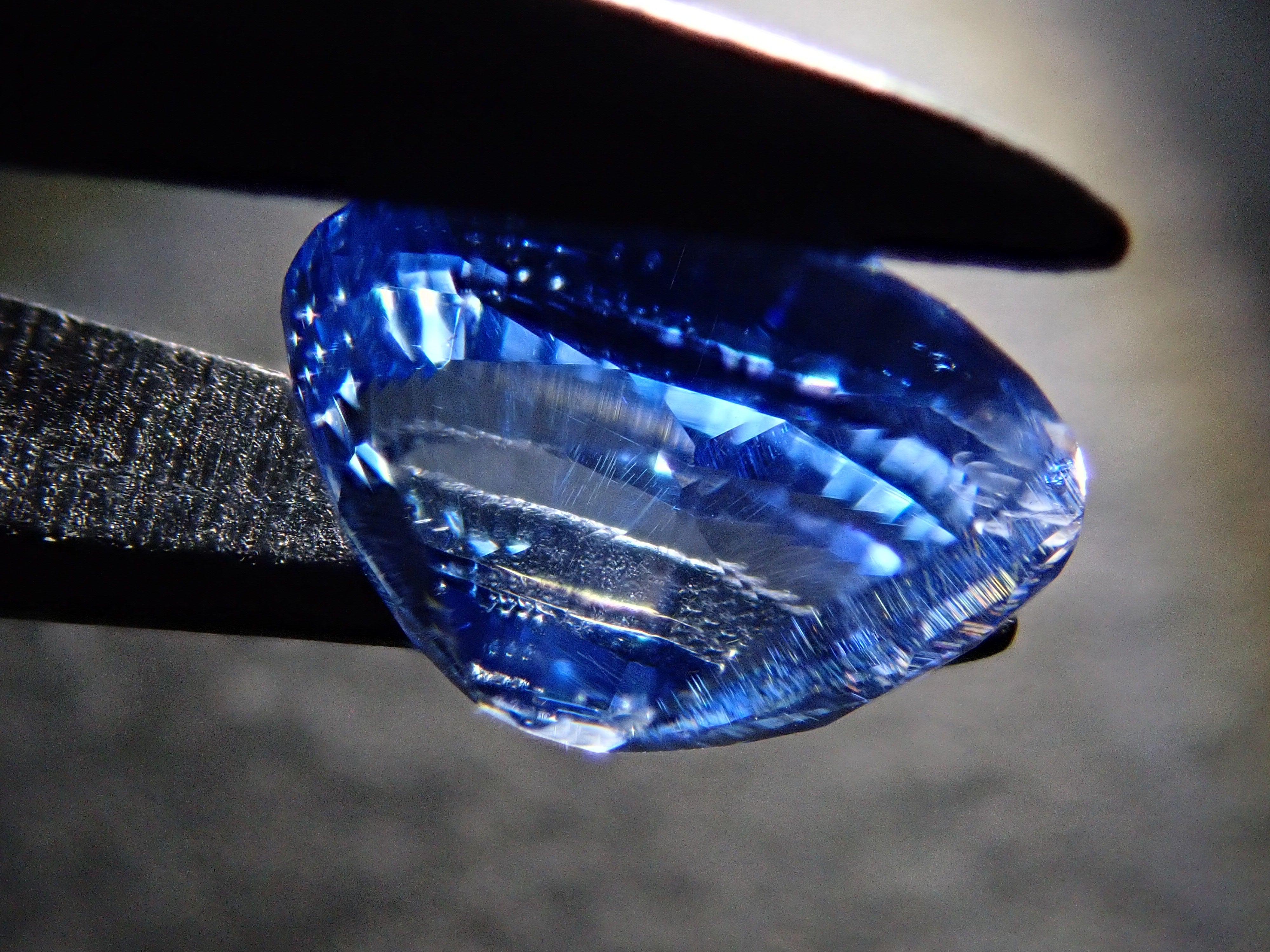 這顆藍寶石內部, 您可以看到未經加熱處理的寶石特有的「 絲狀內含物」。這些是天然形成的金紅石(針狀內含物),也是加熱後會消失的特徵之一。儘管寶石高度透明,但隱約可見這些絲狀內含物足以證明其未經加熱處理,這也是收藏家高度重視的元素。這顆藍寶石是一顆高品質的高透明度裸石。它附有GIA鑑定證書。