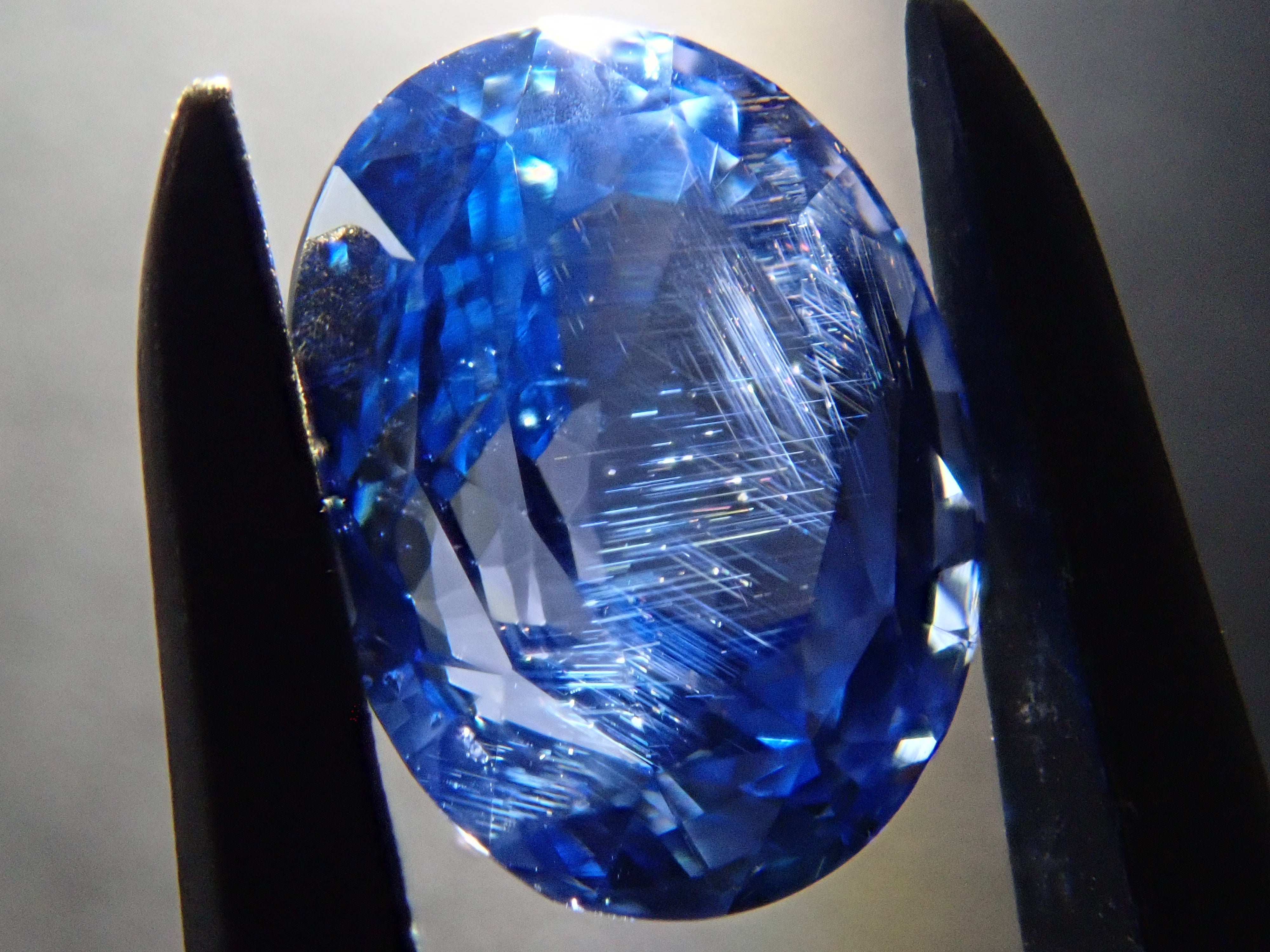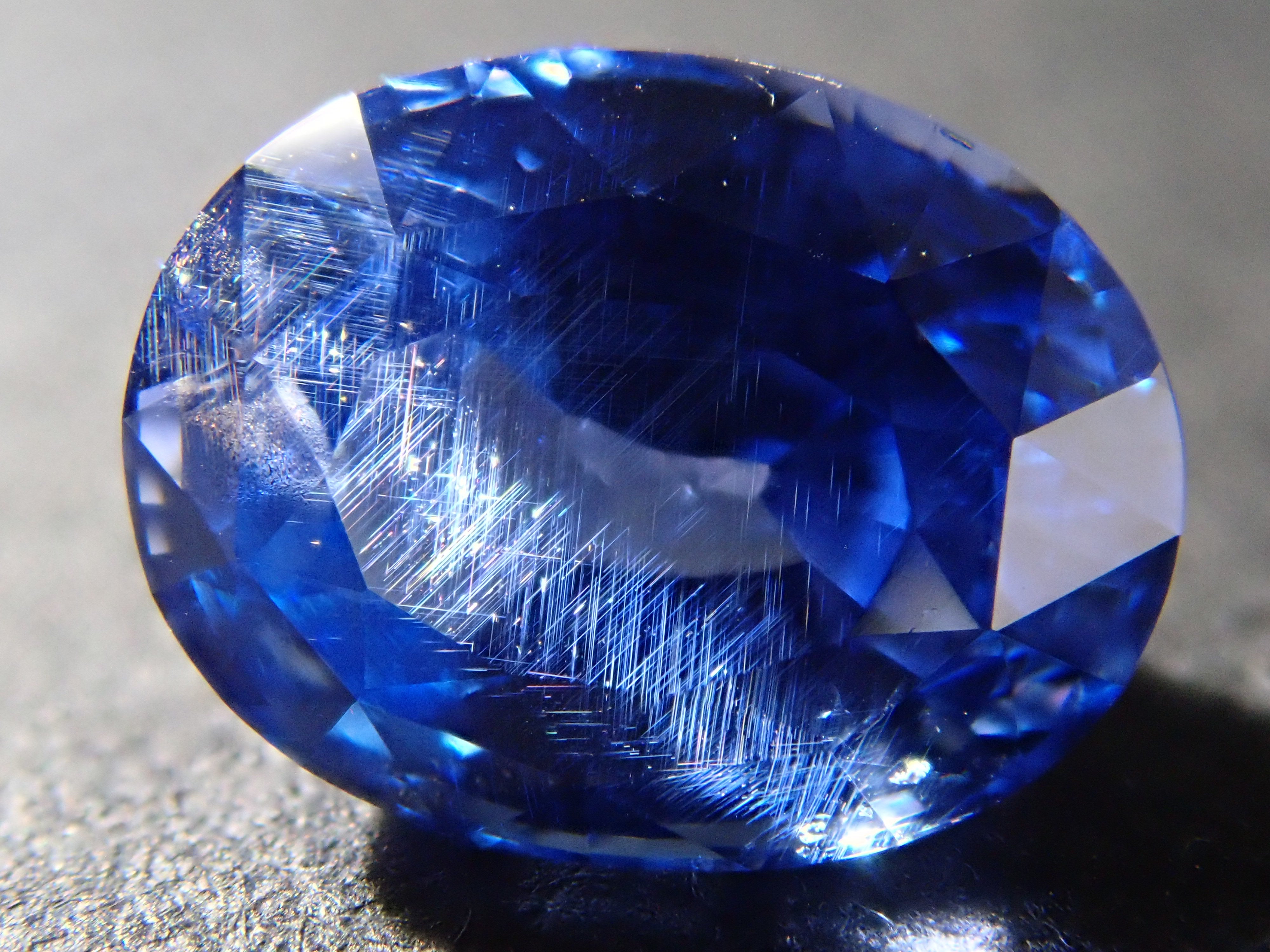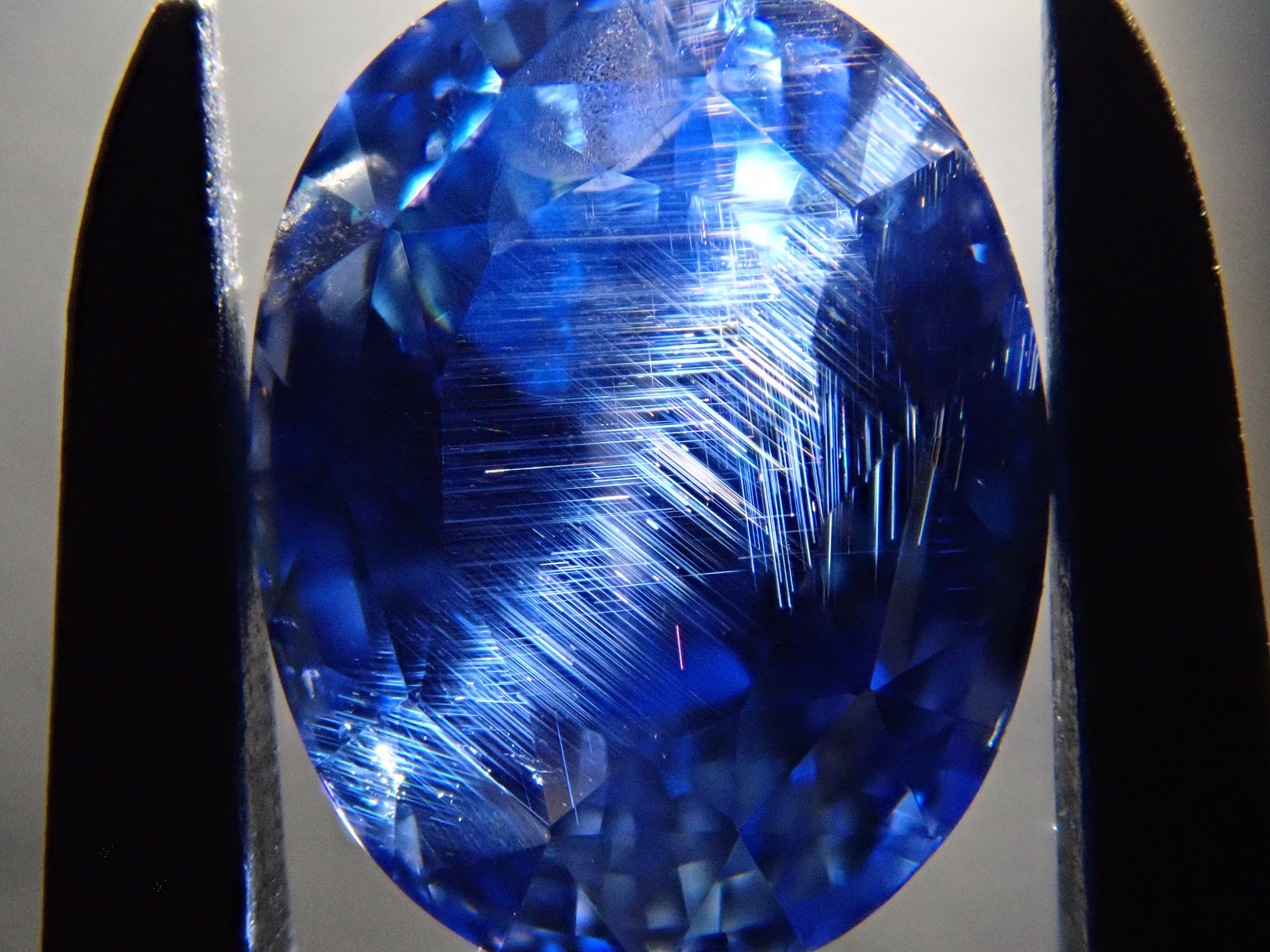 這顆藍寶石內部, 您可以看到未經加熱處理的寶石特有的「 絲狀內含物」。這些是天然形成的金紅石(針狀內含物),也是加熱後會消失的特徵之一。儘管寶石高度透明,但隱約可見這些絲狀內含物足以證明其未經加熱處理,這也是收藏家高度重視的元素。這顆藍寶石是一顆高品質的高透明度裸石。它附有GIA鑑定證書。