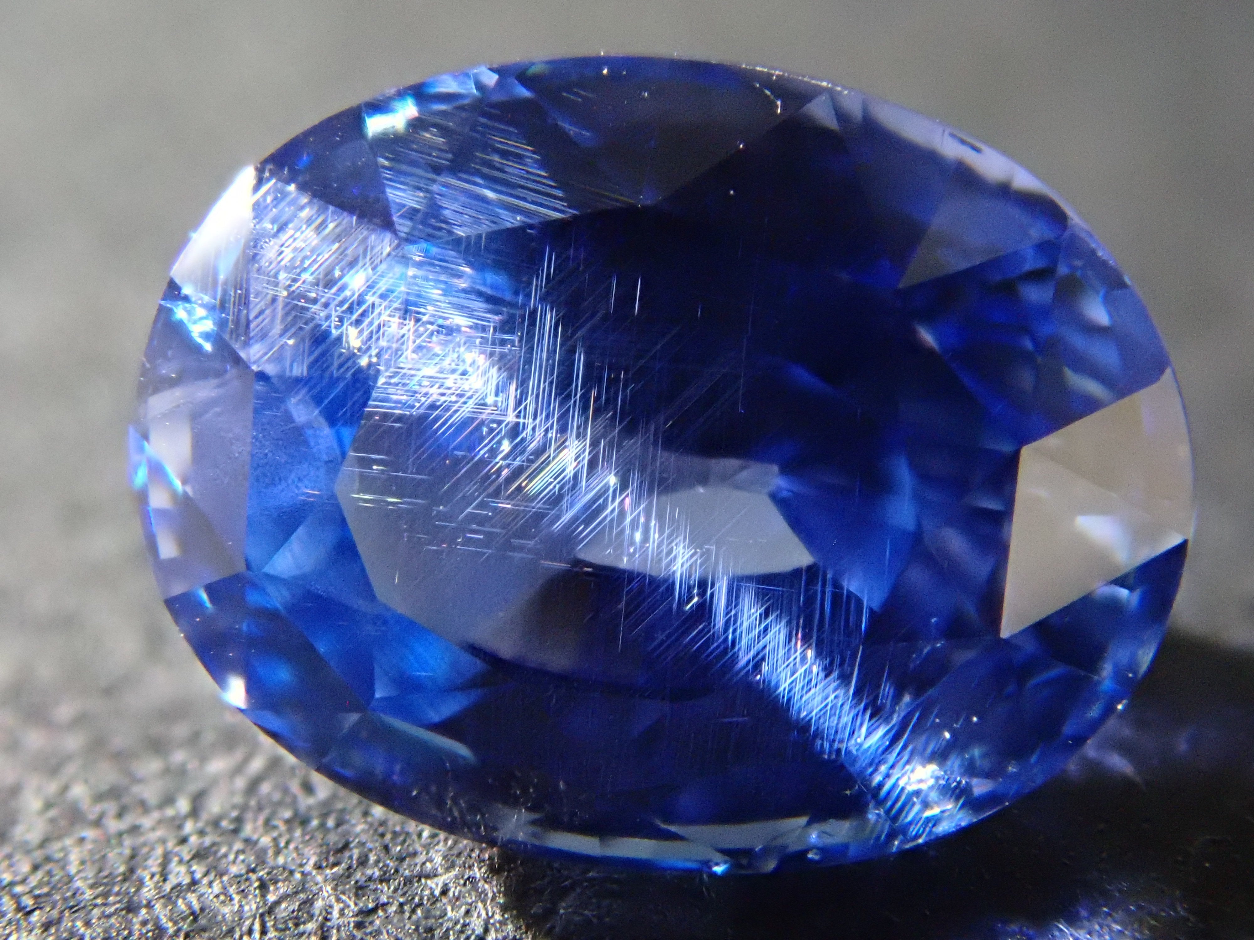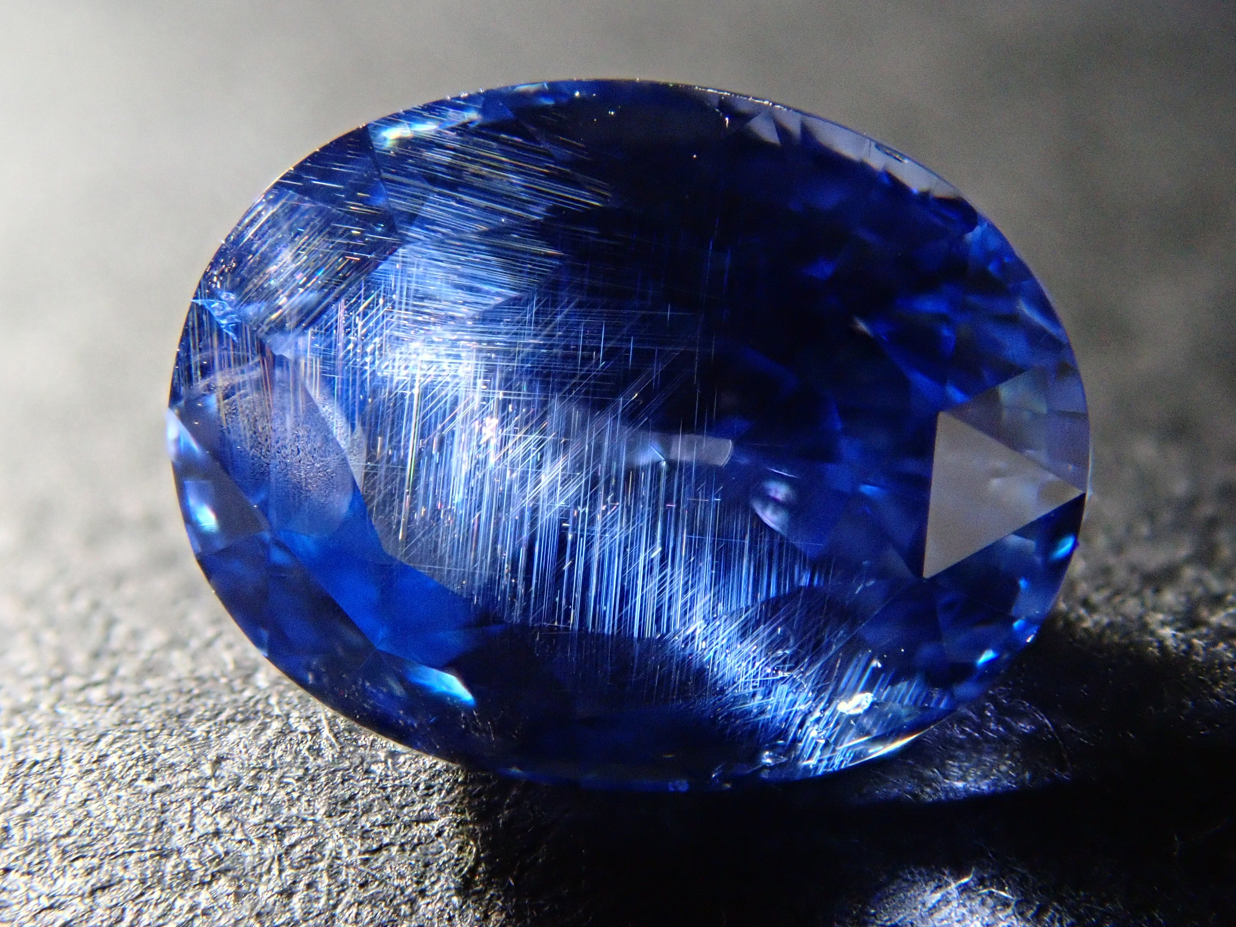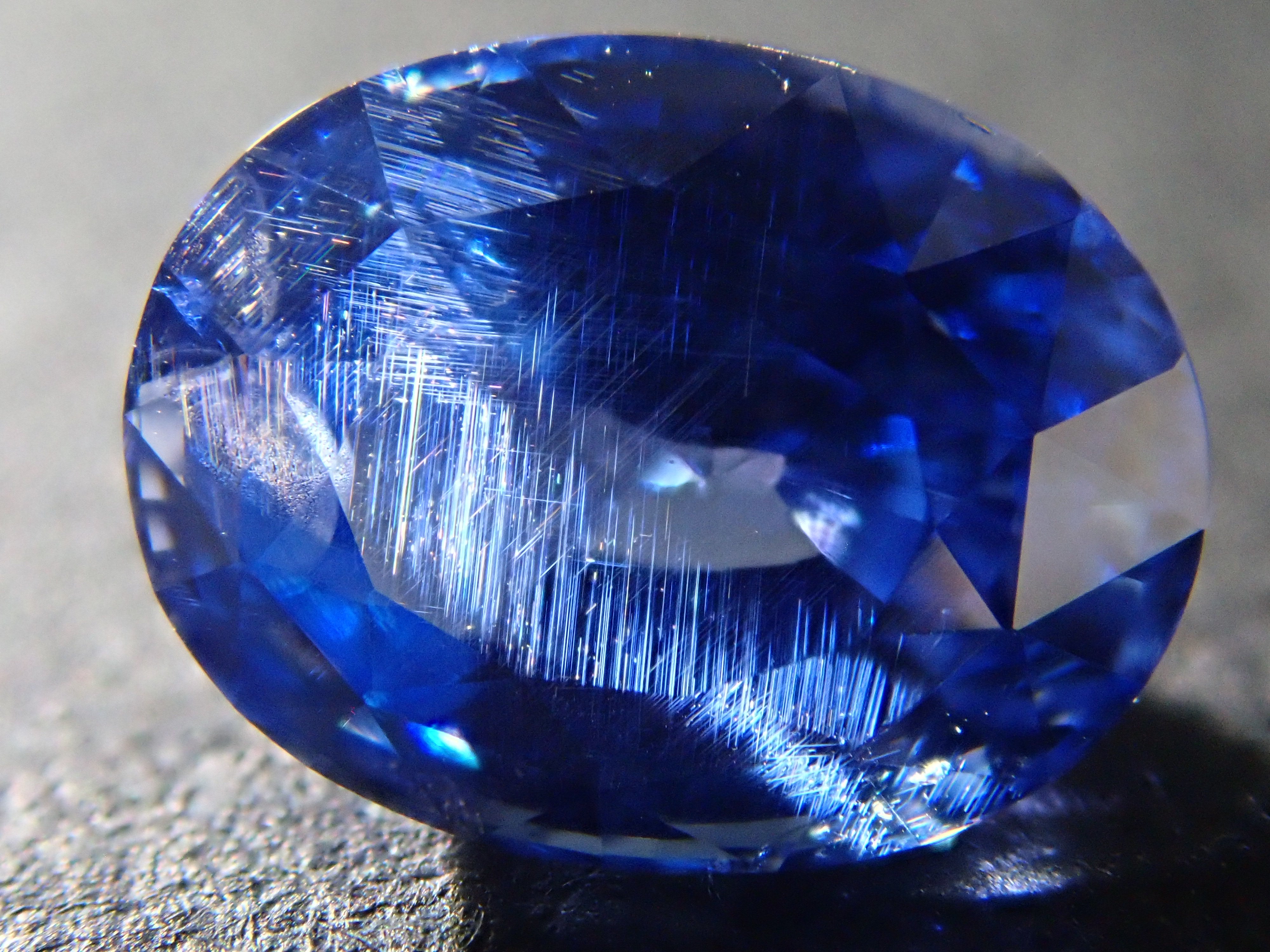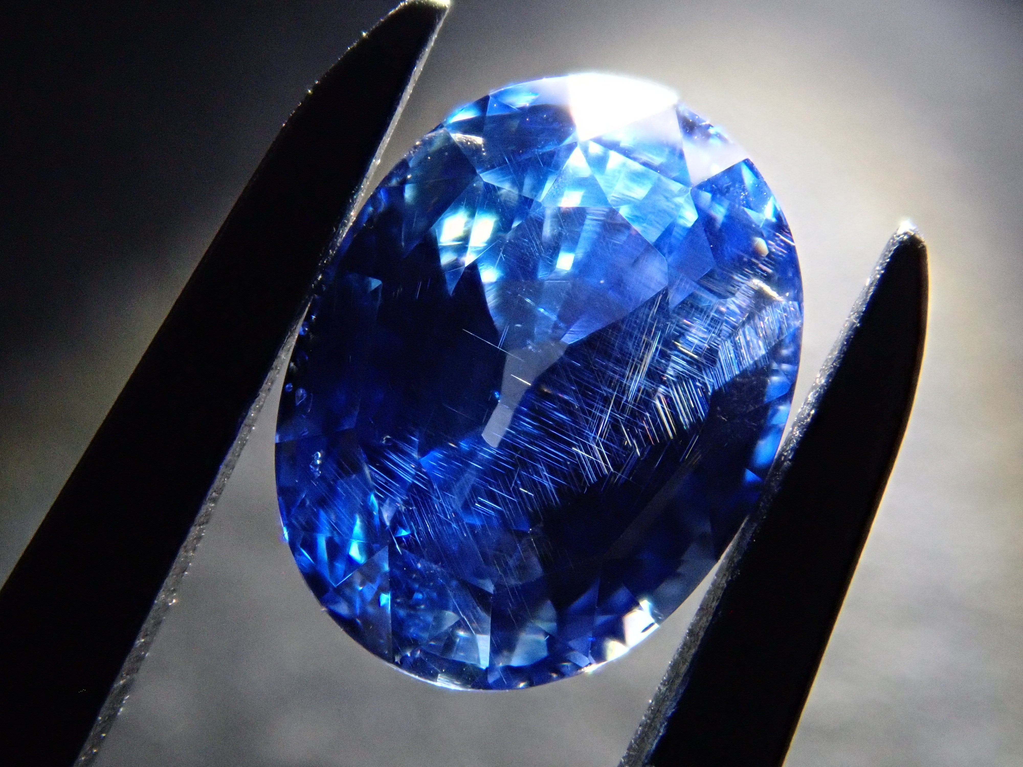這顆藍寶石內部, 您可以看到未經加熱處理的寶石特有的「 絲狀內含物」。這些是天然形成的金紅石(針狀內含物),也是加熱後會消失的特徵之一。儘管寶石高度透明,但隱約可見這些絲狀內含物足以證明其未經加熱處理,這也是收藏家高度重視的元素。這顆藍寶石是一顆高品質的高透明度裸石。它附有GIA鑑定證書。