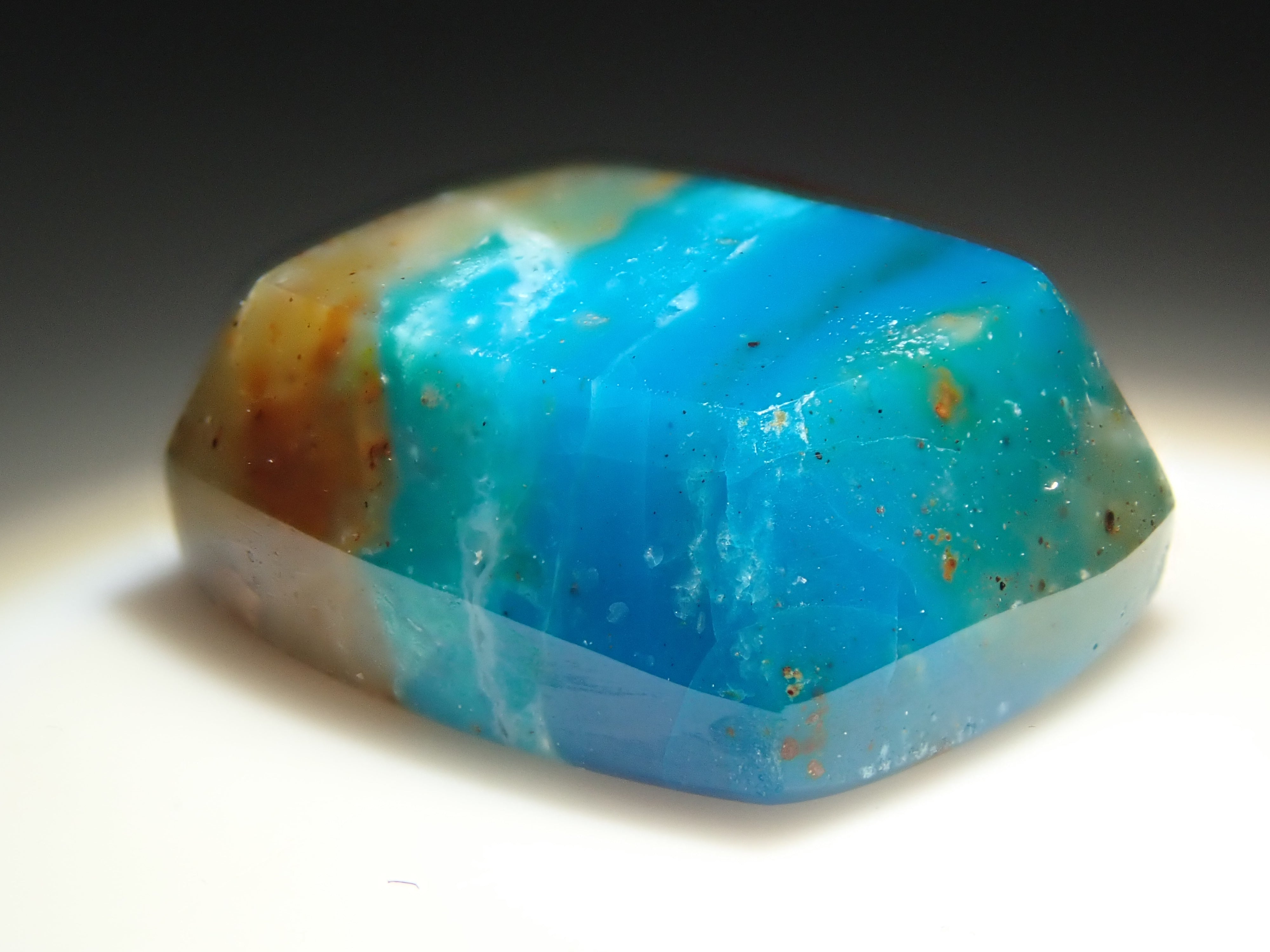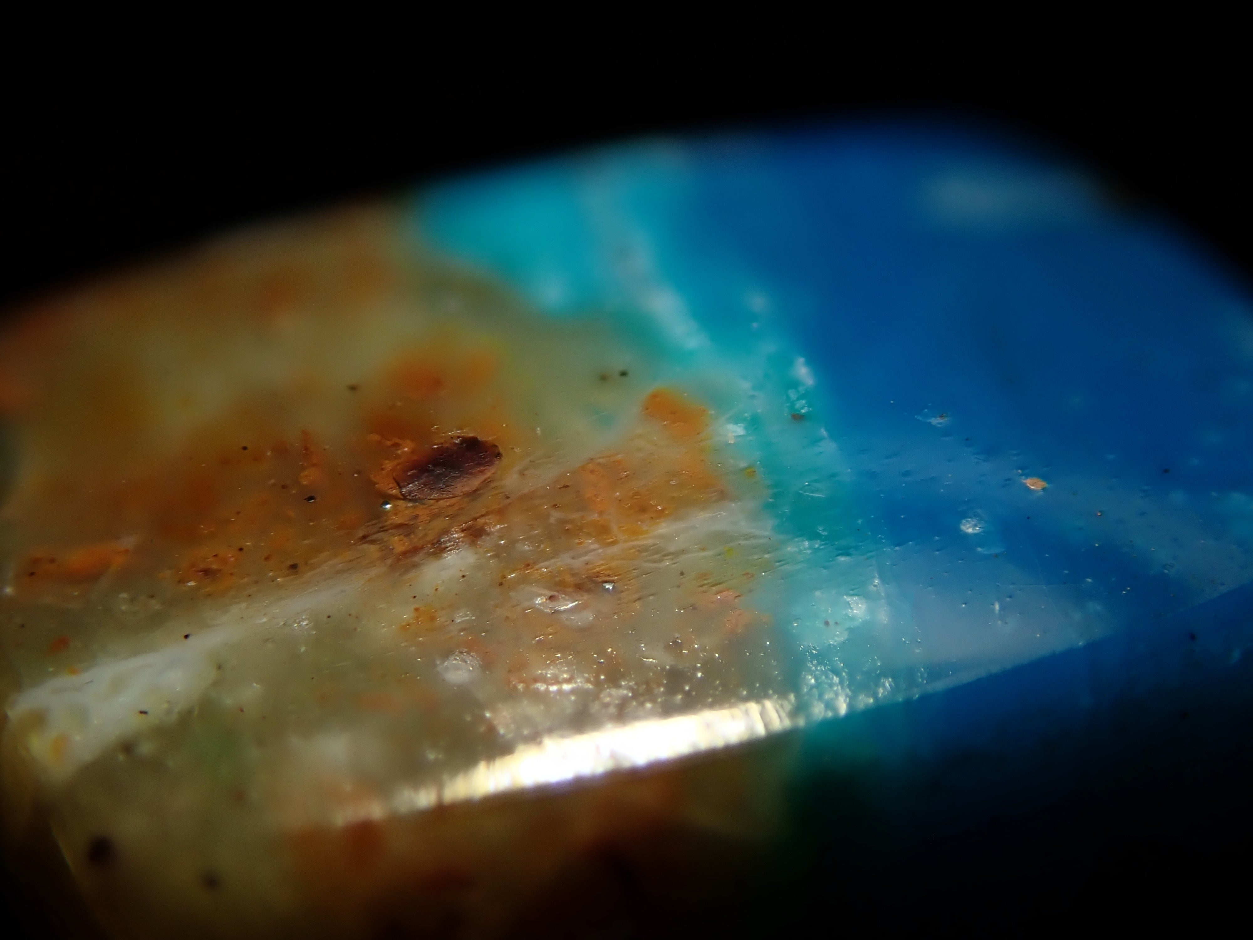 清新的藍色令人聯想到地中海。藍蛋白石閃耀著純淨的光芒。藍蛋白石通常指沒有變色的普通蛋白石,但有時也指帶有藍色的黑蛋白石。照片拍攝時也使用了筆型手電筒。