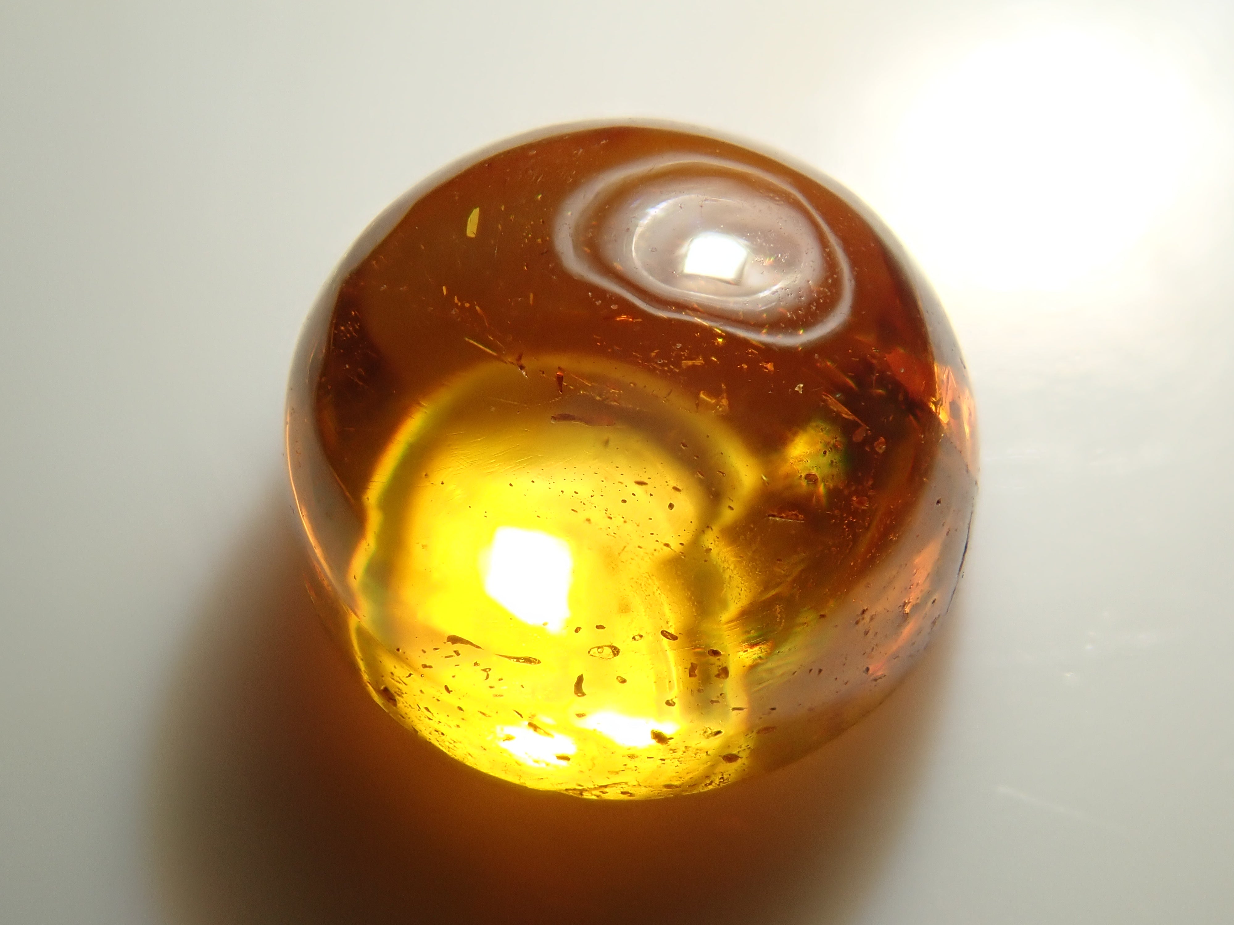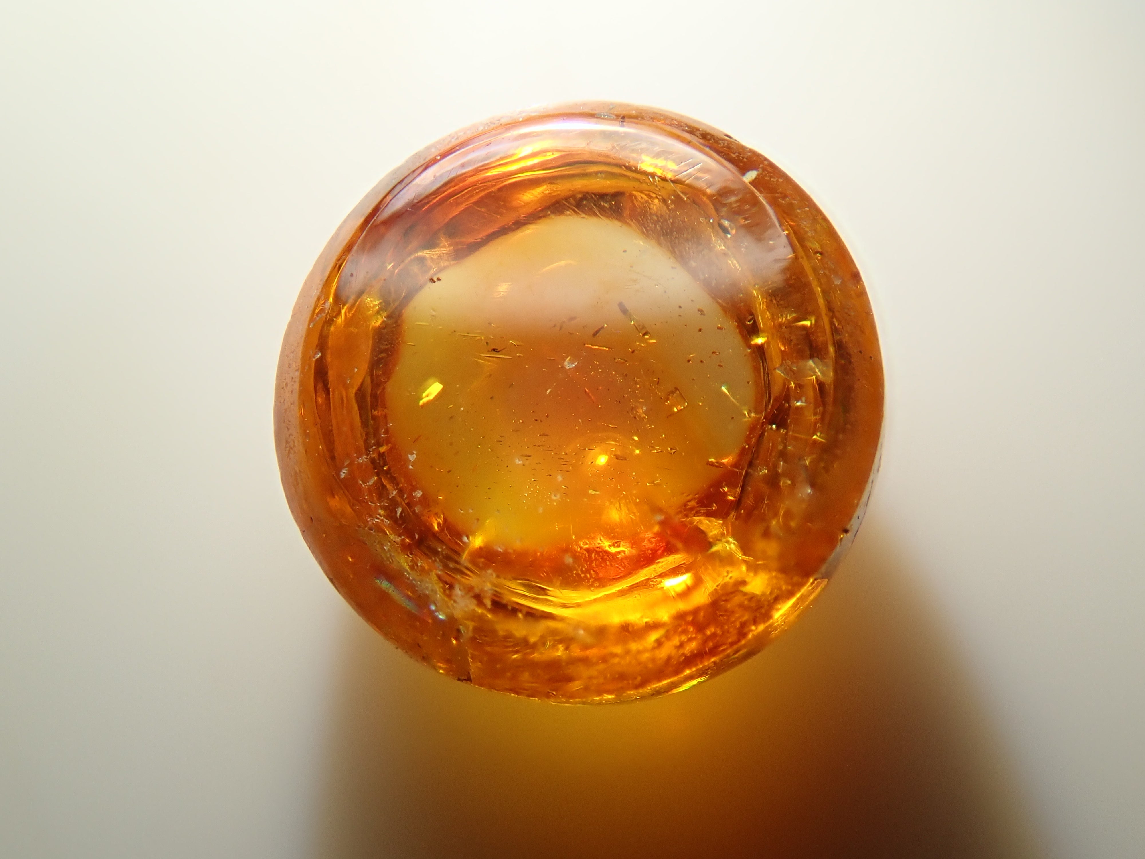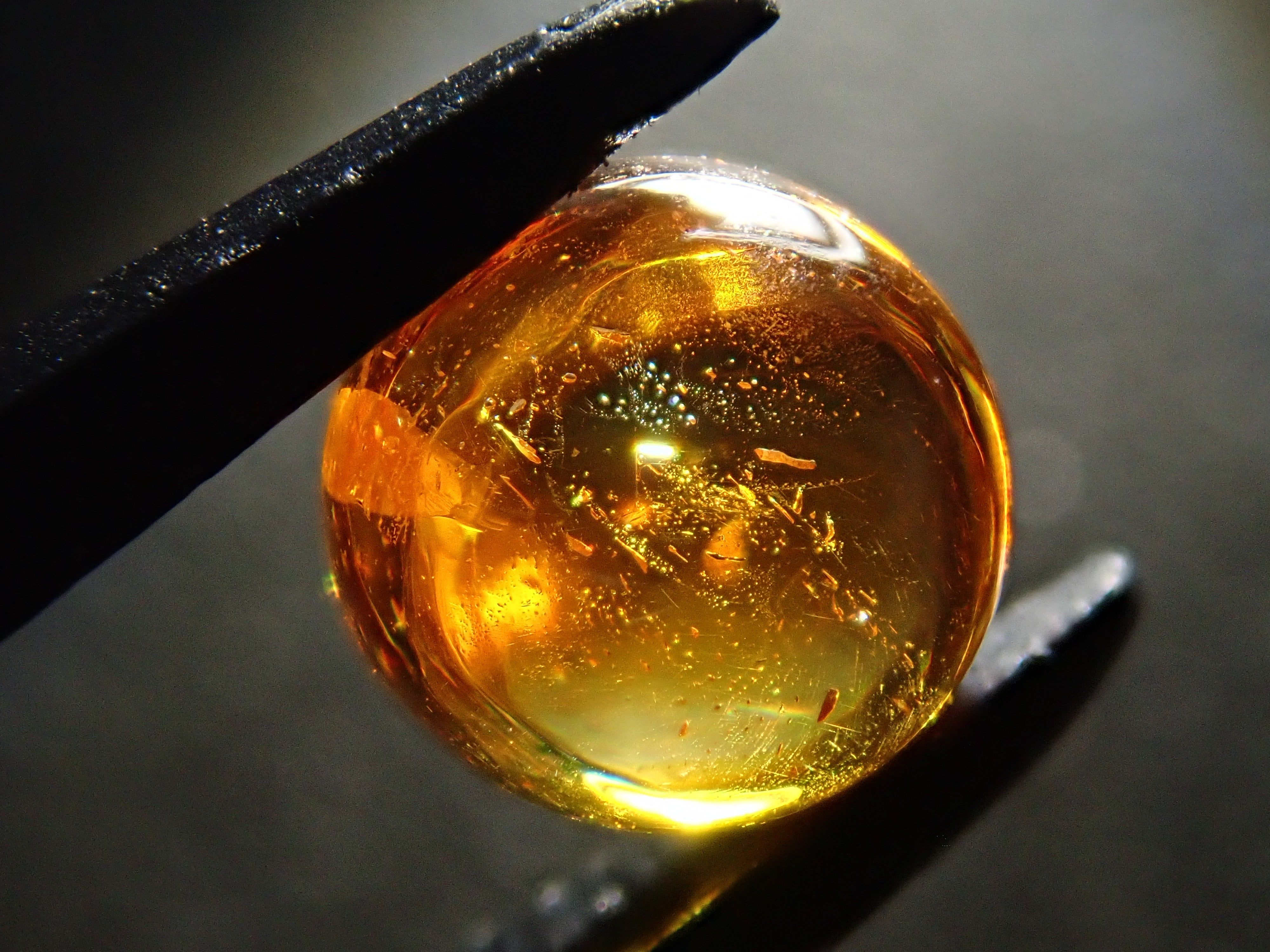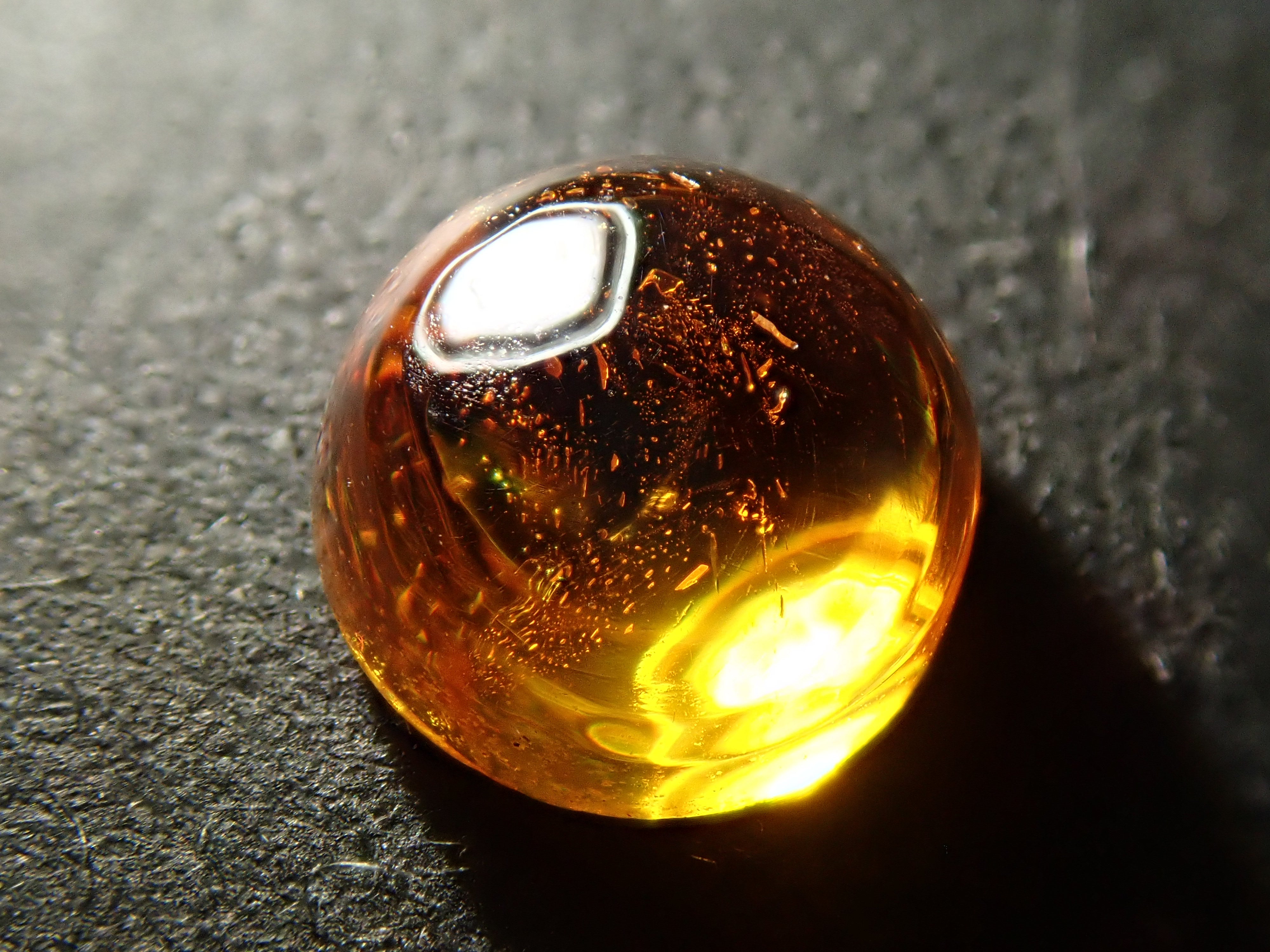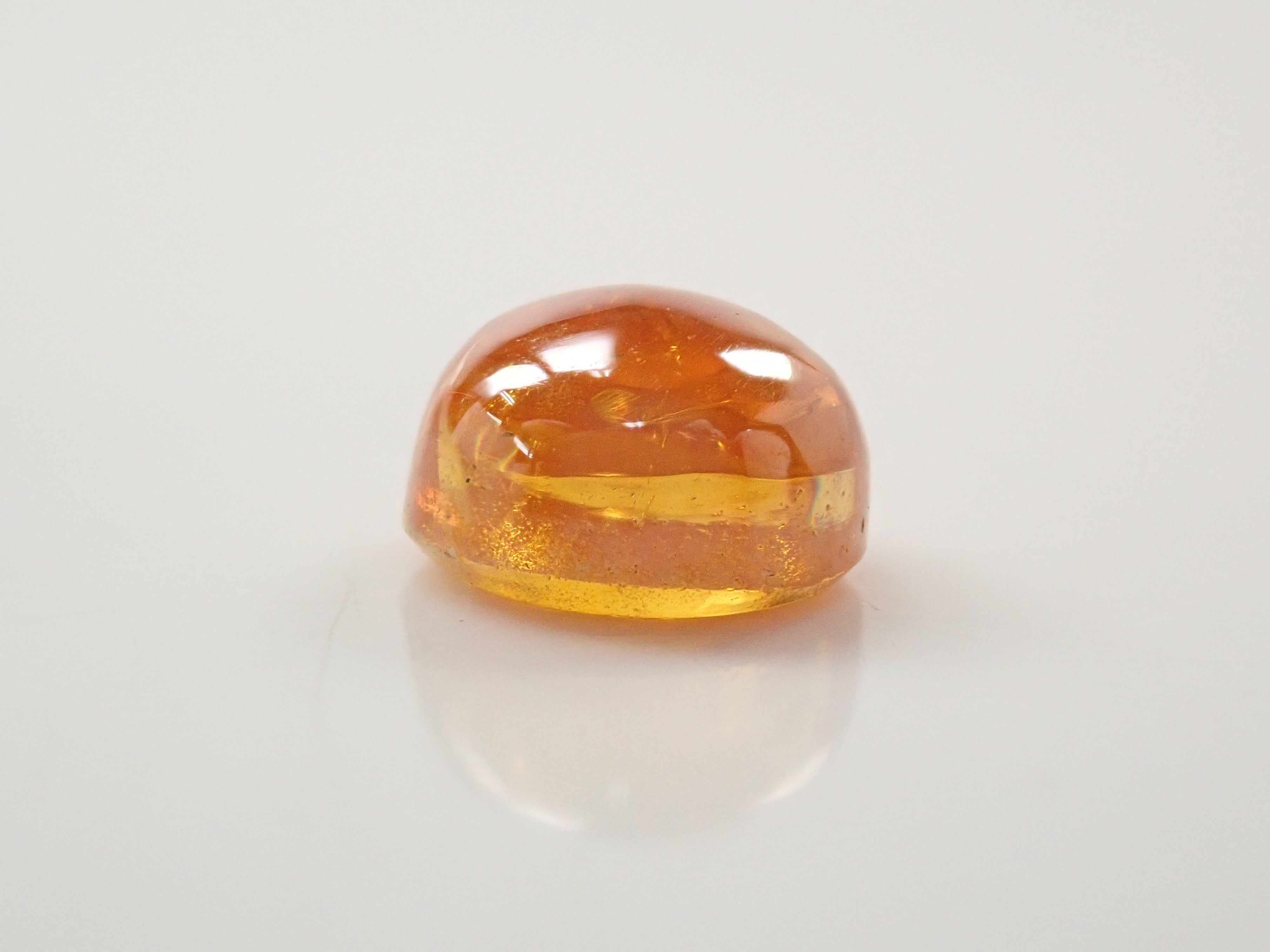 閃鋅礦的色散率幾乎是鑽石的四倍,並能展現出絢麗的火彩。據說,閃鋅礦是稀有寶石之一,流通量很小,在市場上並不常見。其底色為黃色、橙色、綠色等,火彩則呈現各種顏色,例如黃色、棕色、橙色、紅色和綠色。這是一顆剛抵達圖森的凸圓形切割西班牙閃鋅礦。