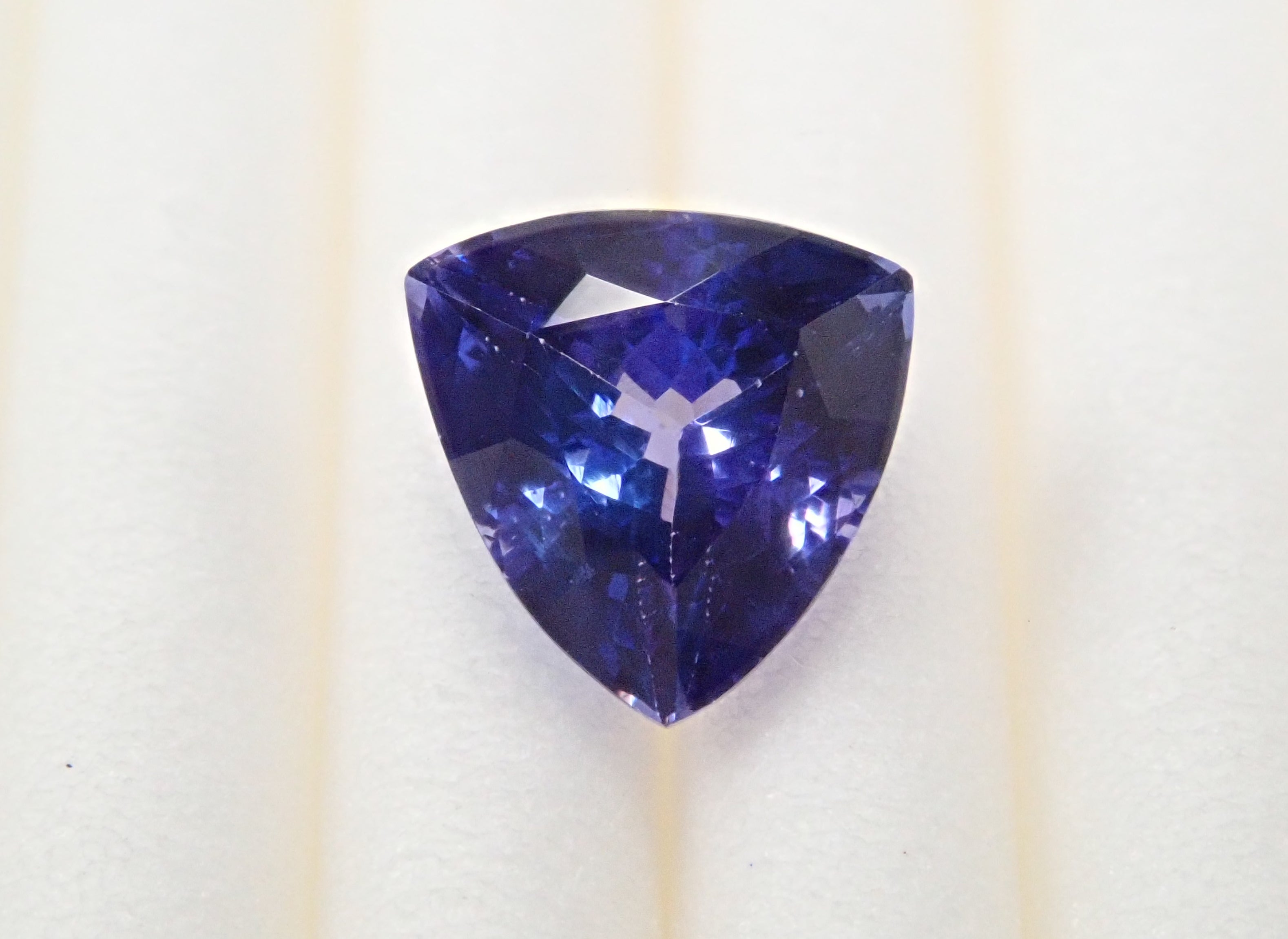 這是一顆深色調的三角形切割坦桑石。