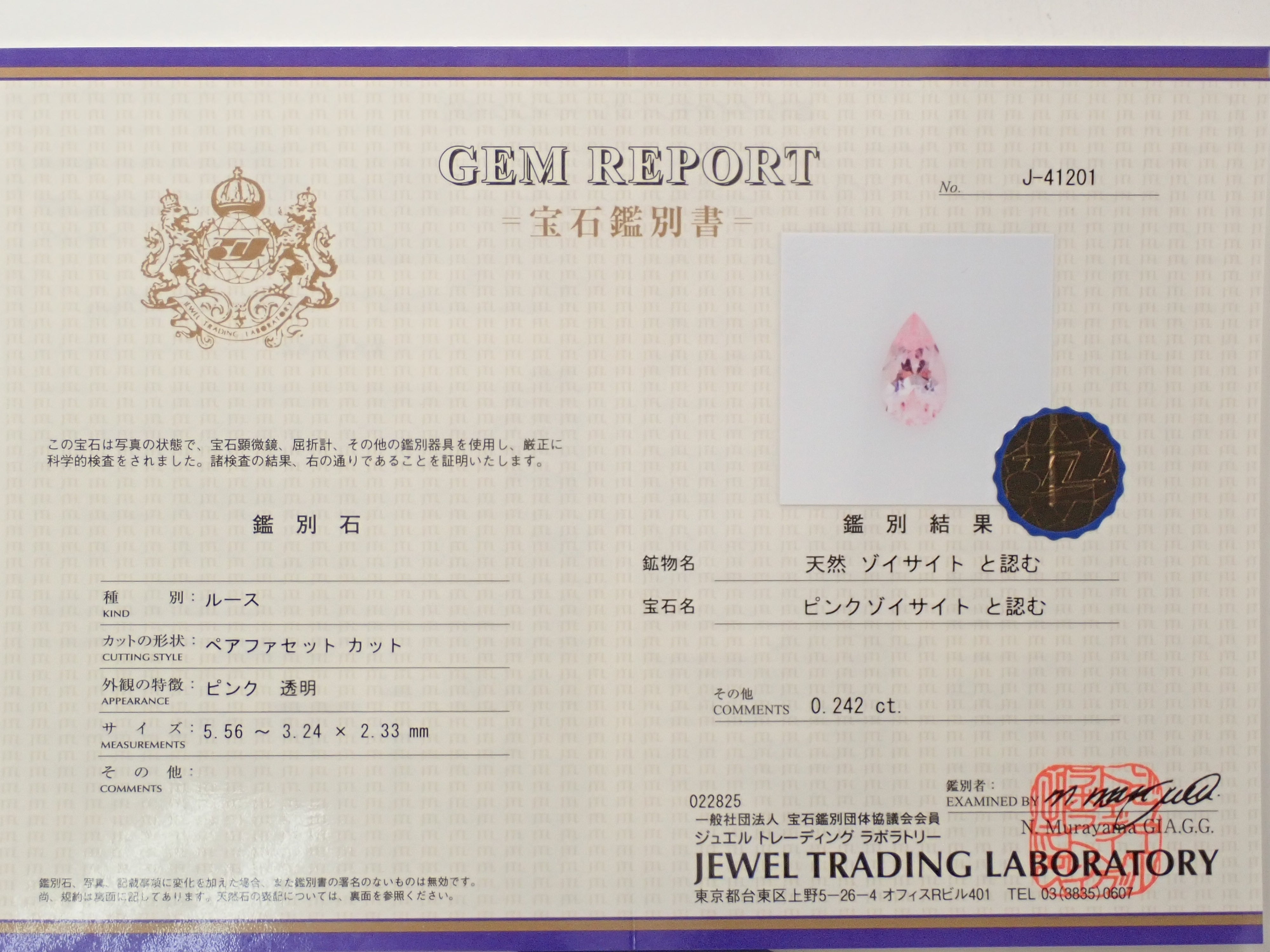 這是粉紅色黝簾石中透明度極高的優質裸石,可以欣賞到粉紅色。還附有鑑定證書。