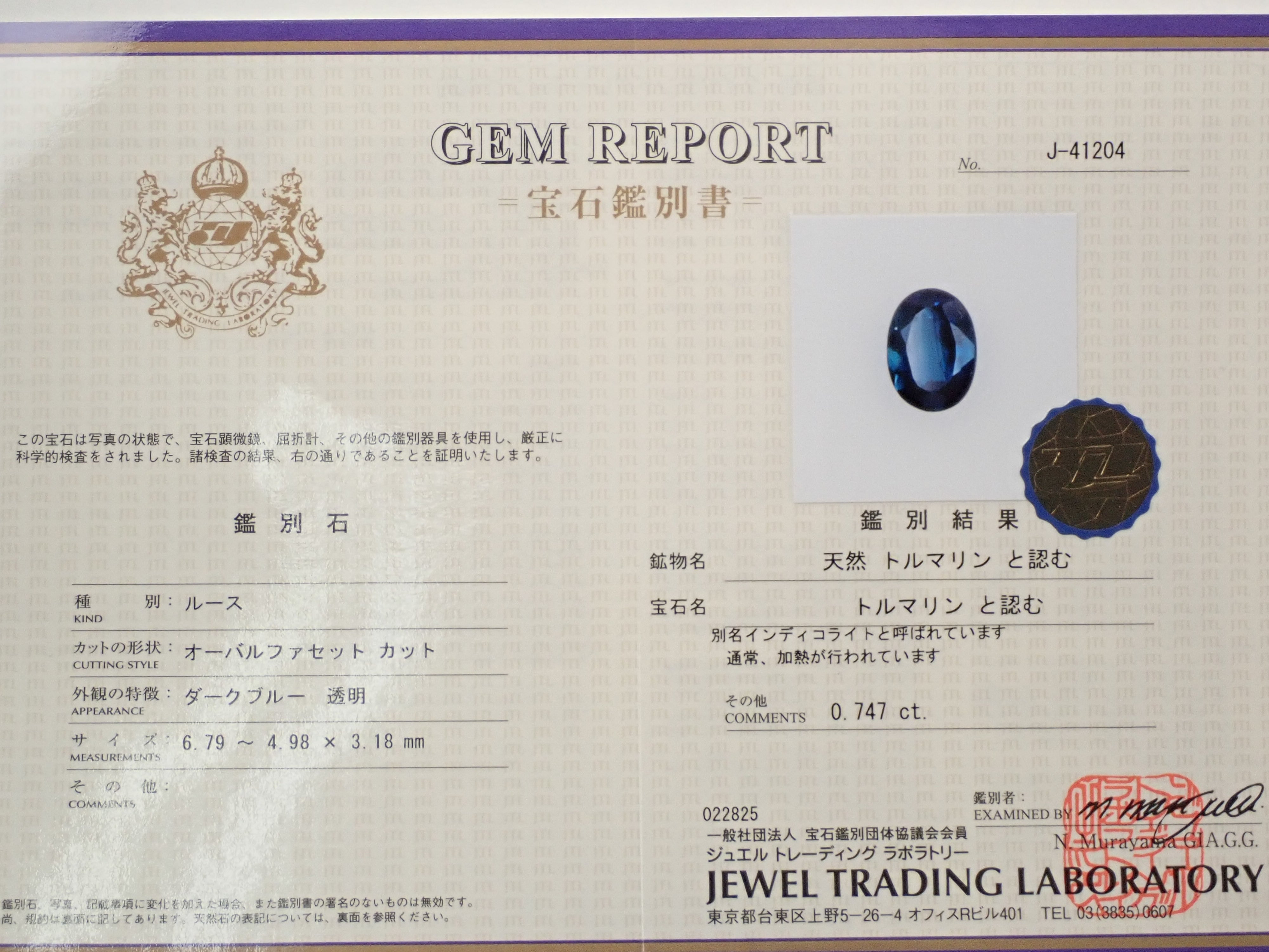 碧璽被稱為色彩寶庫。 「碧璽」一詞源自於僧伽羅語“Tourmali”,意為“各種顏色”。其中,靛藍色的碧璽被稱為「靛藍碧璽」。碧璽是一種讓人忍不住想要收集所有顏色的寶石。這是一顆產自美國圖森的全新巴西靛藍碧璽。它附有JTL真品證書。