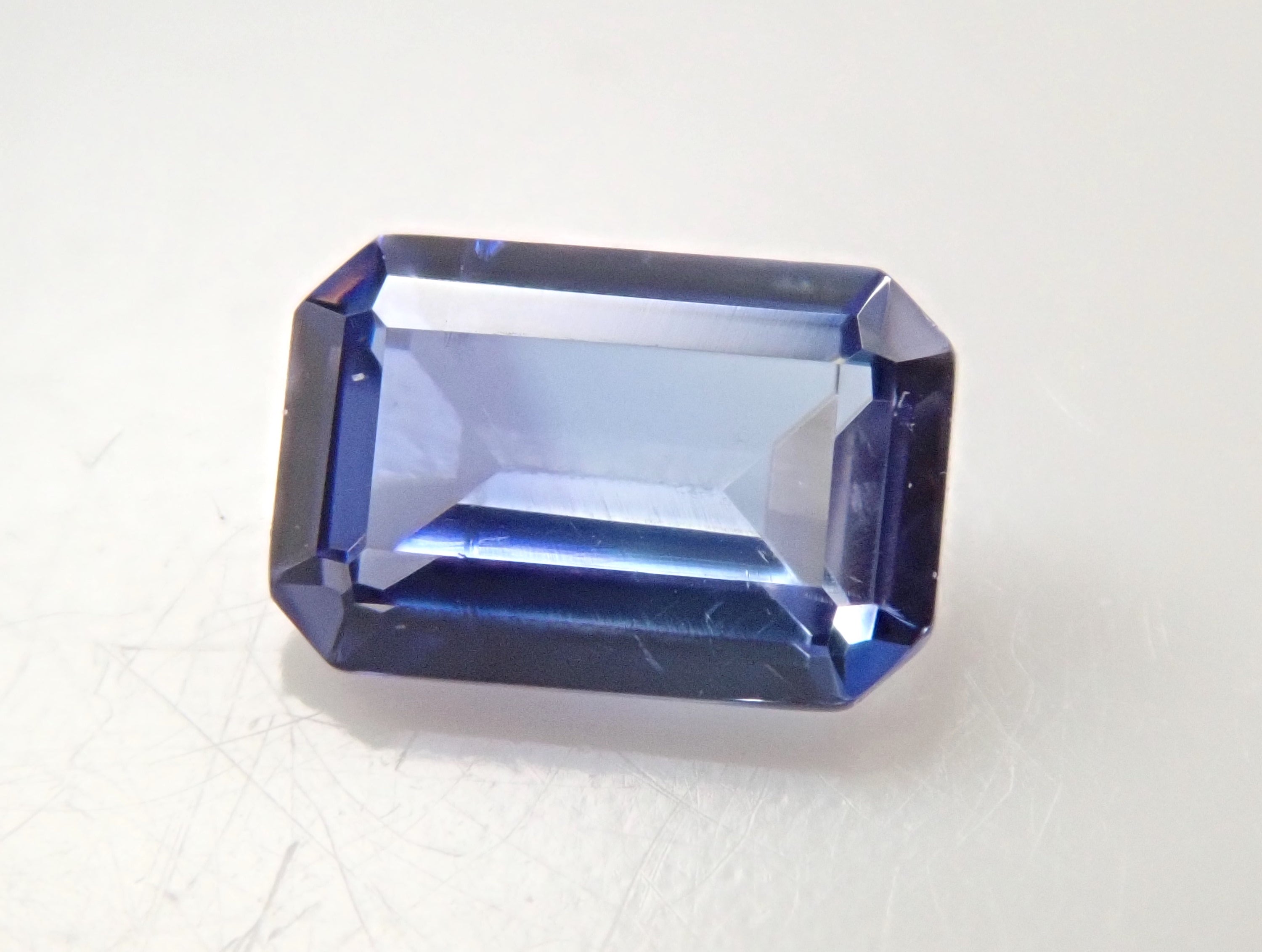 藍錐礦據說是美國三種最稀有的寶石之一。它兼具鑽石般的璀璨光芒和藍寶石般的迷人藍色,使其成為一種極具魅力的寶石。據說它在20世紀初在加州聖貝尼托河附近被發現,其特徵是光散射性強。這顆藍錐礦採用祖母綠切割,這種切割方式在藍錐礦中十分罕見。這顆藍錐礦品質極佳,透明度極高。