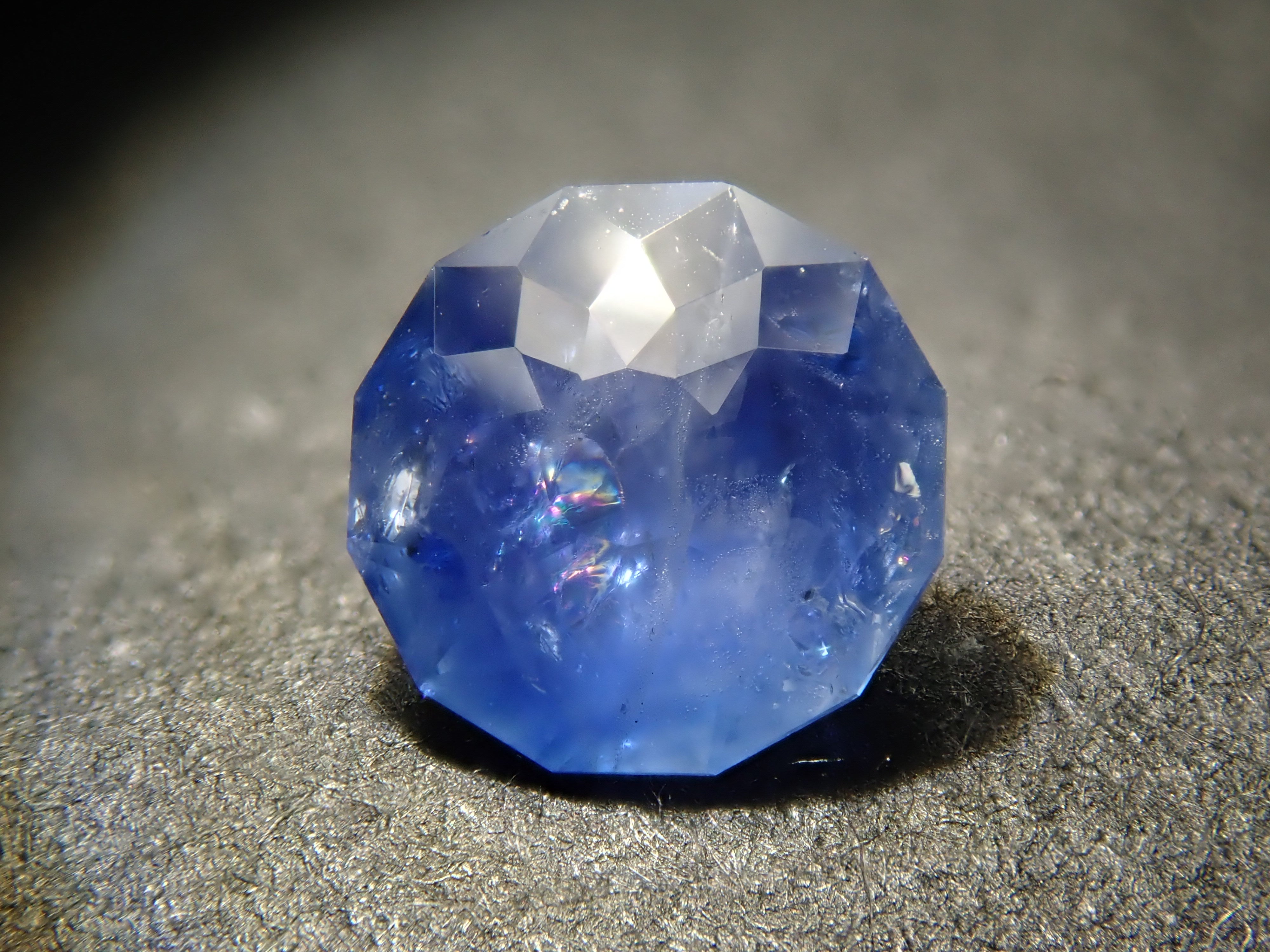 這是一種藍色藍寶石,透過內部的裂縫可以看到彩虹。