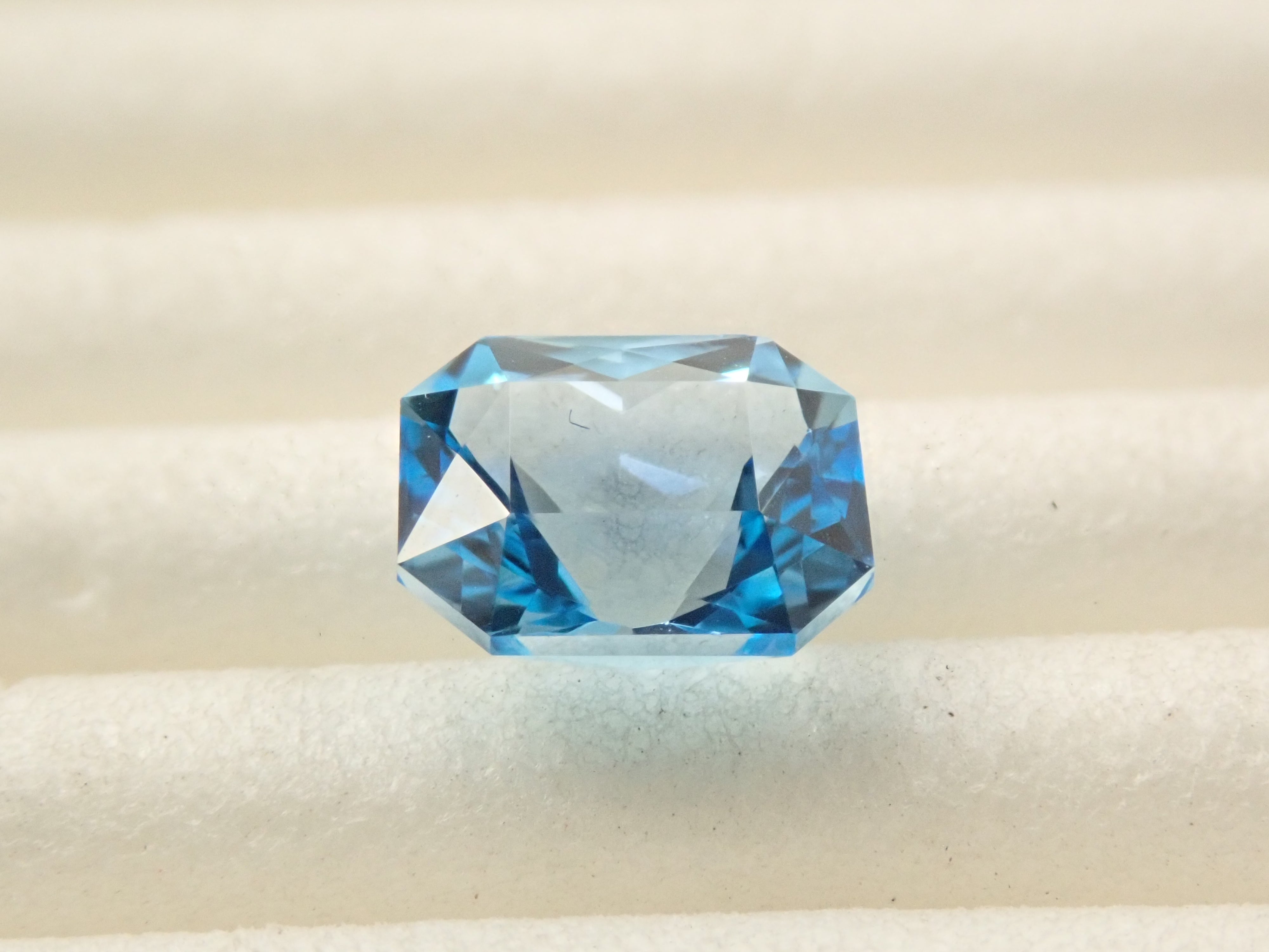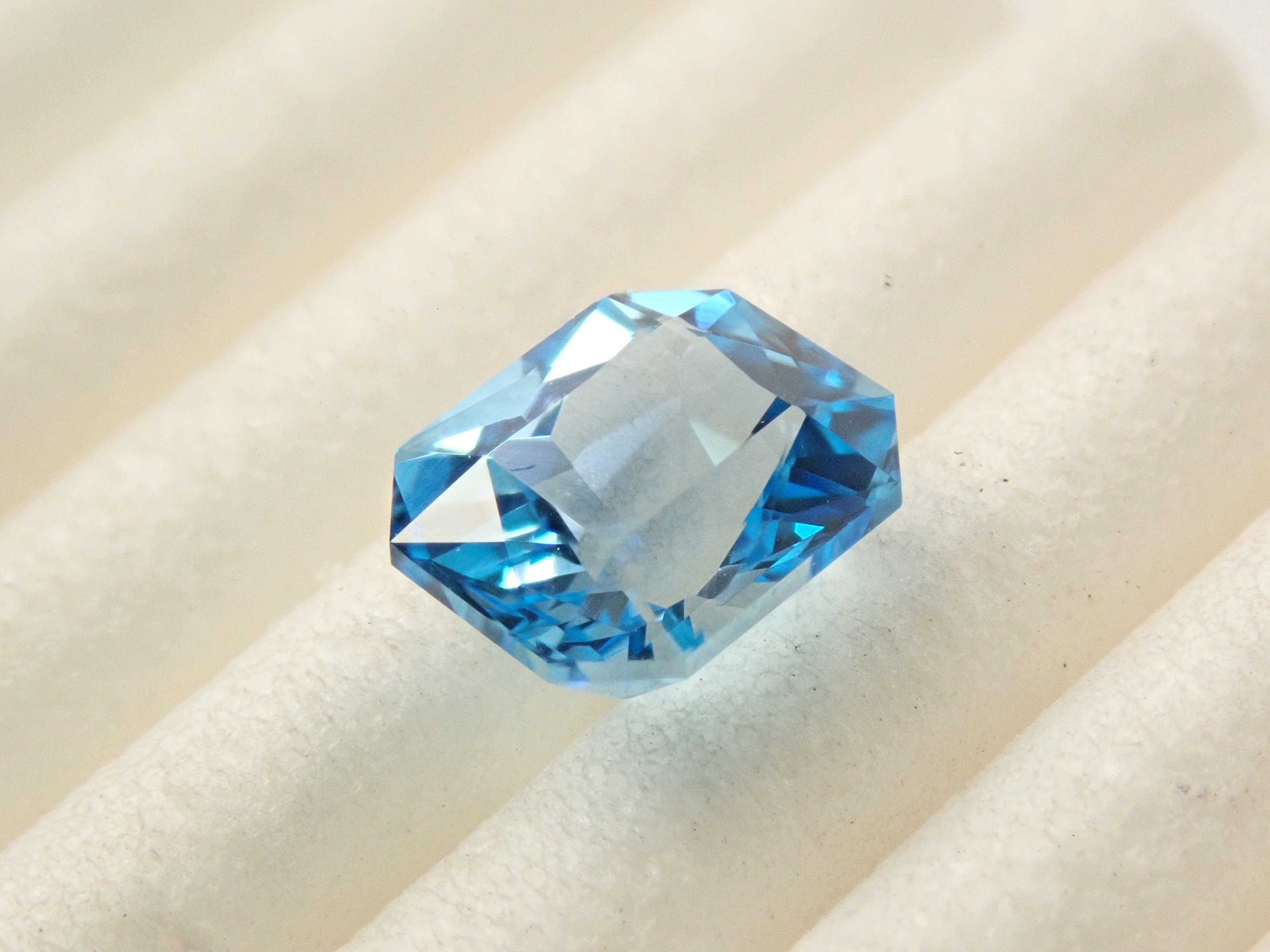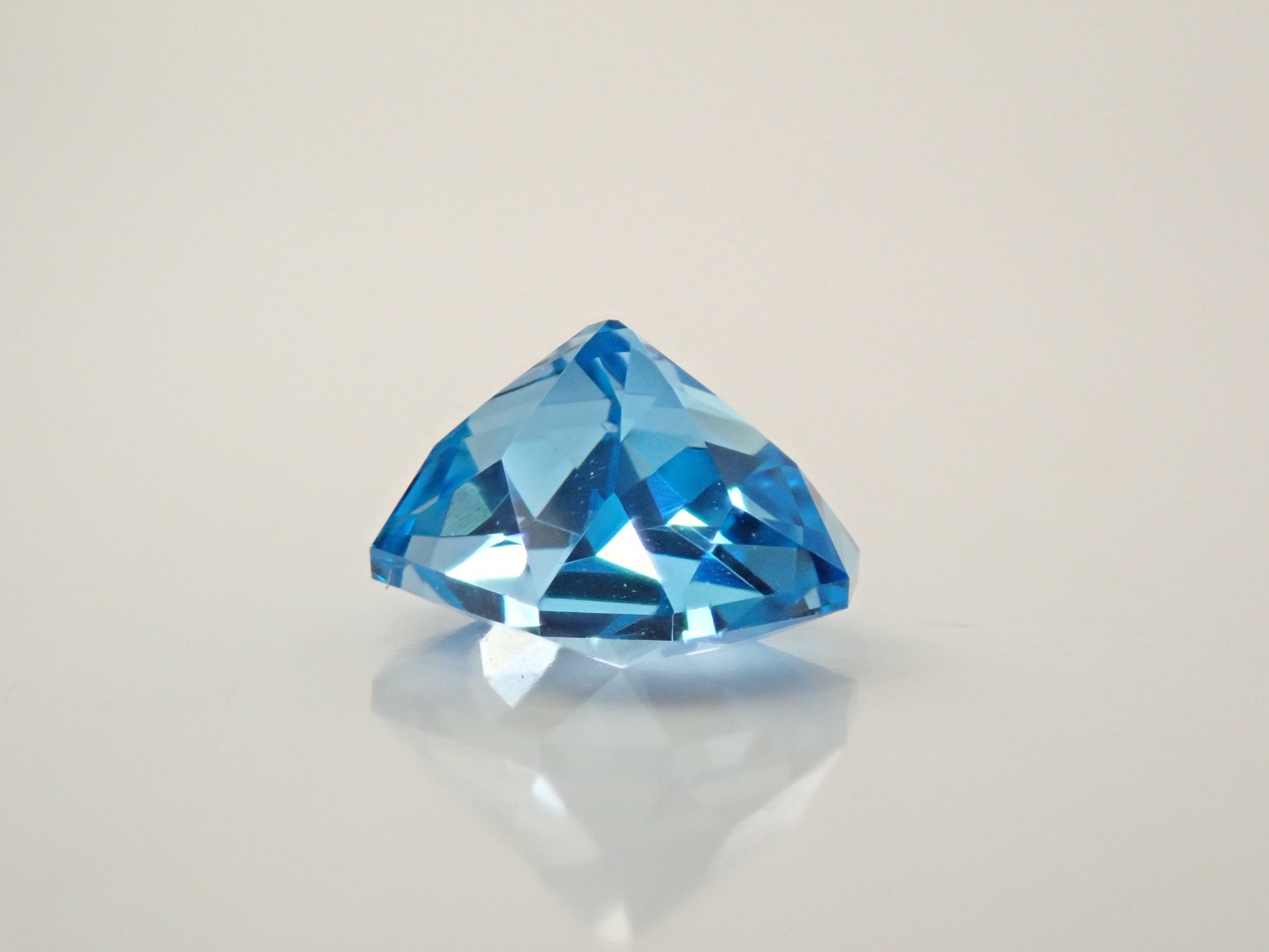 藍色托帕石以其迷人的藍色,是眾多托帕石變種中最受歡迎的顏色之一。其中,「瑞士藍托帕石」指的是像這顆散石一樣,擁有深邃而鮮豔藍色的寶石。這顆1.090克拉的瑞士藍色托帕石產自巴西,由斯里蘭卡拋光師桑傑拋光,散發出美麗的光澤。