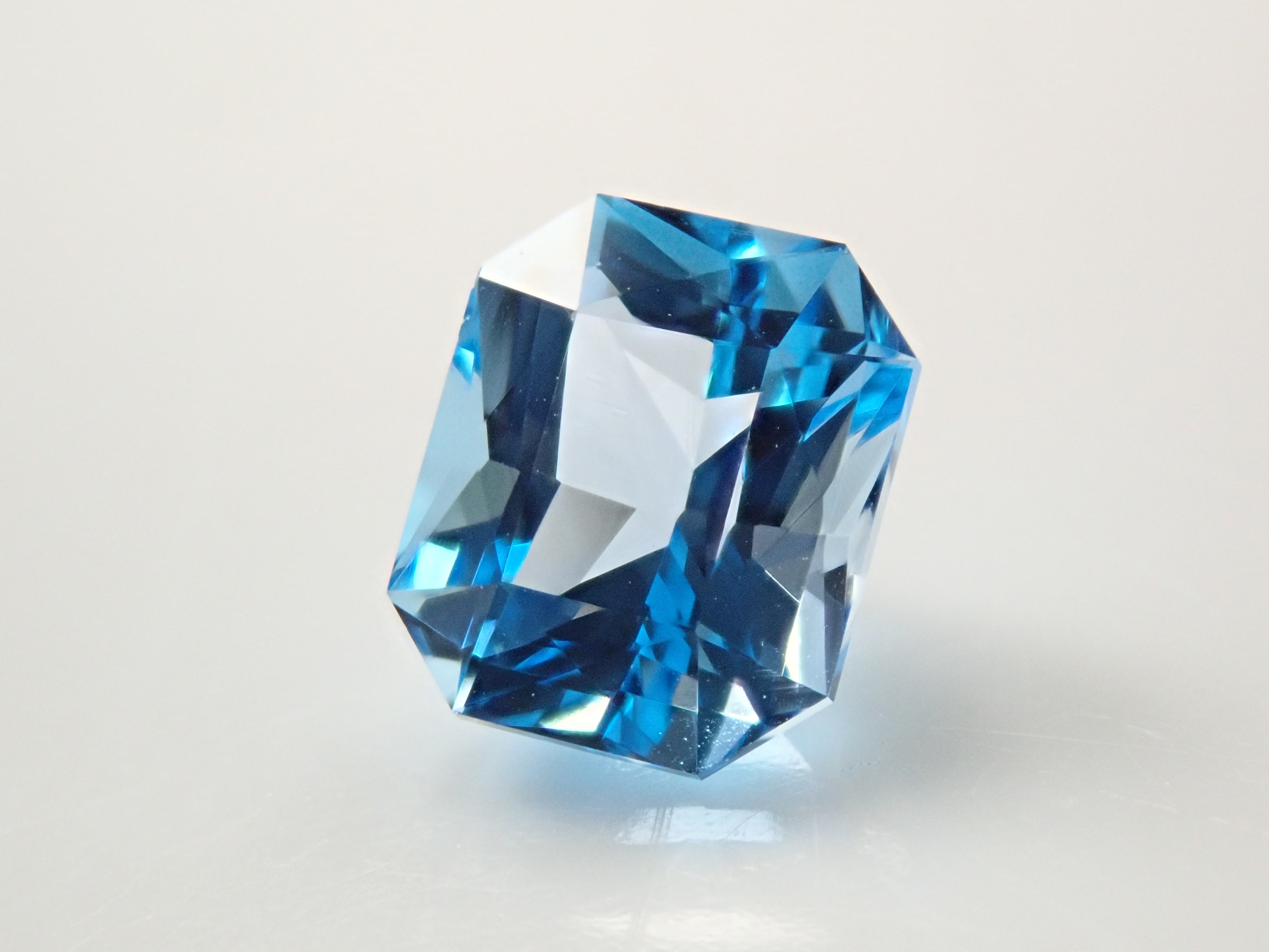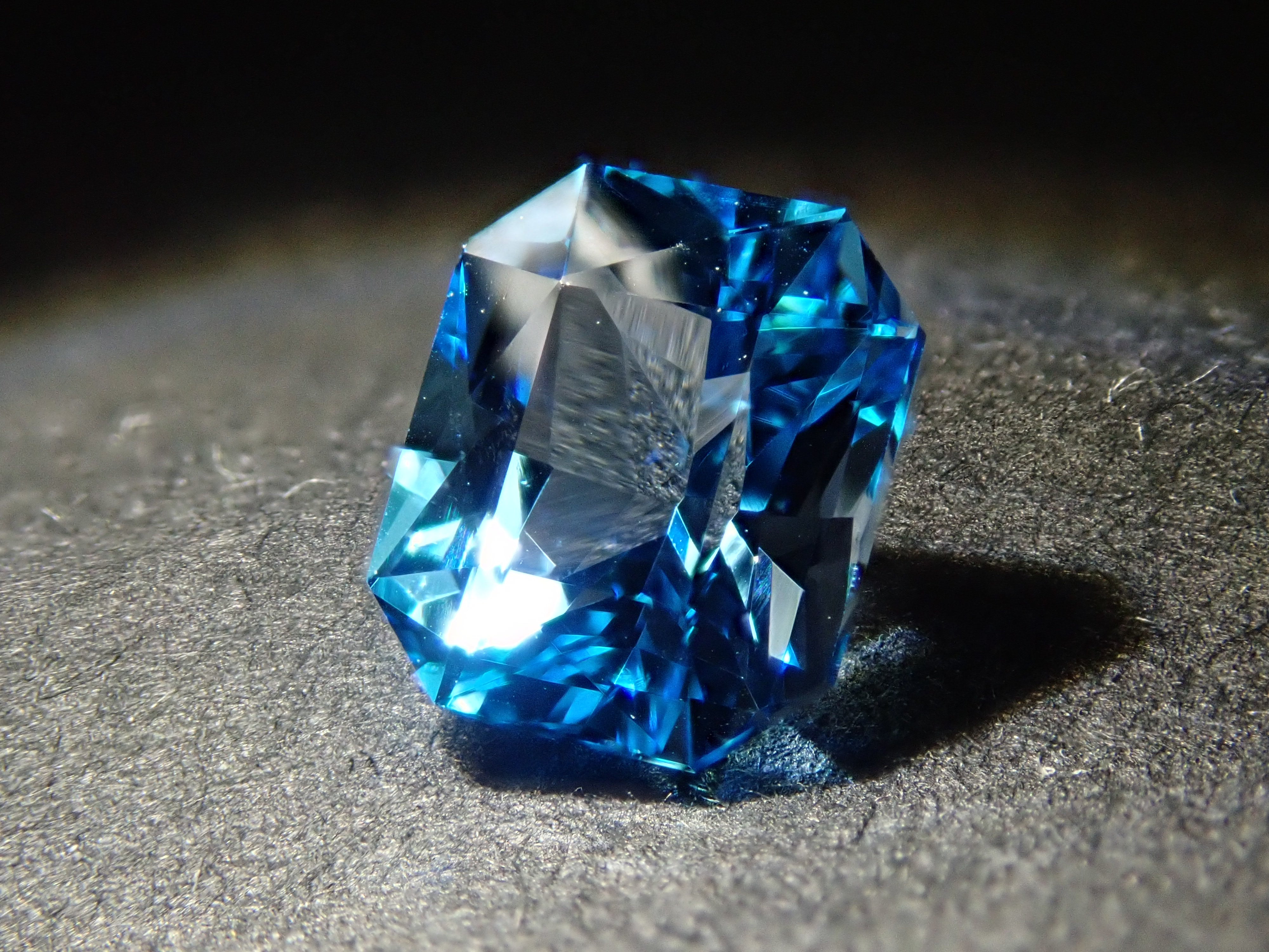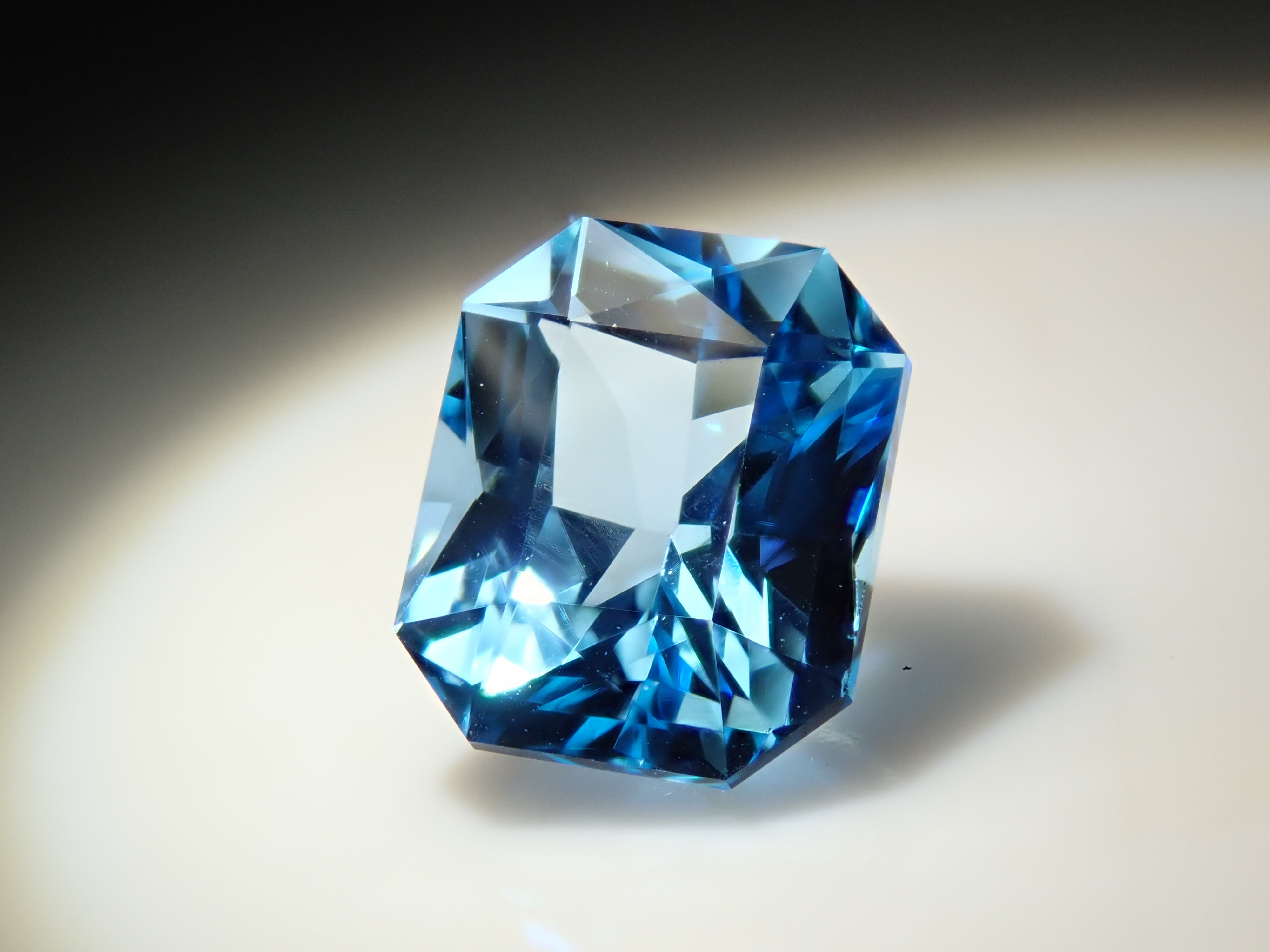 藍色托帕石以其迷人的藍色,是眾多托帕石變種中最受歡迎的顏色之一。其中,「瑞士藍托帕石」指的是像這顆散石一樣,擁有深邃而鮮豔藍色的寶石。這顆1.090克拉的瑞士藍色托帕石產自巴西,由斯里蘭卡拋光師桑傑拋光,散發出美麗的光澤。