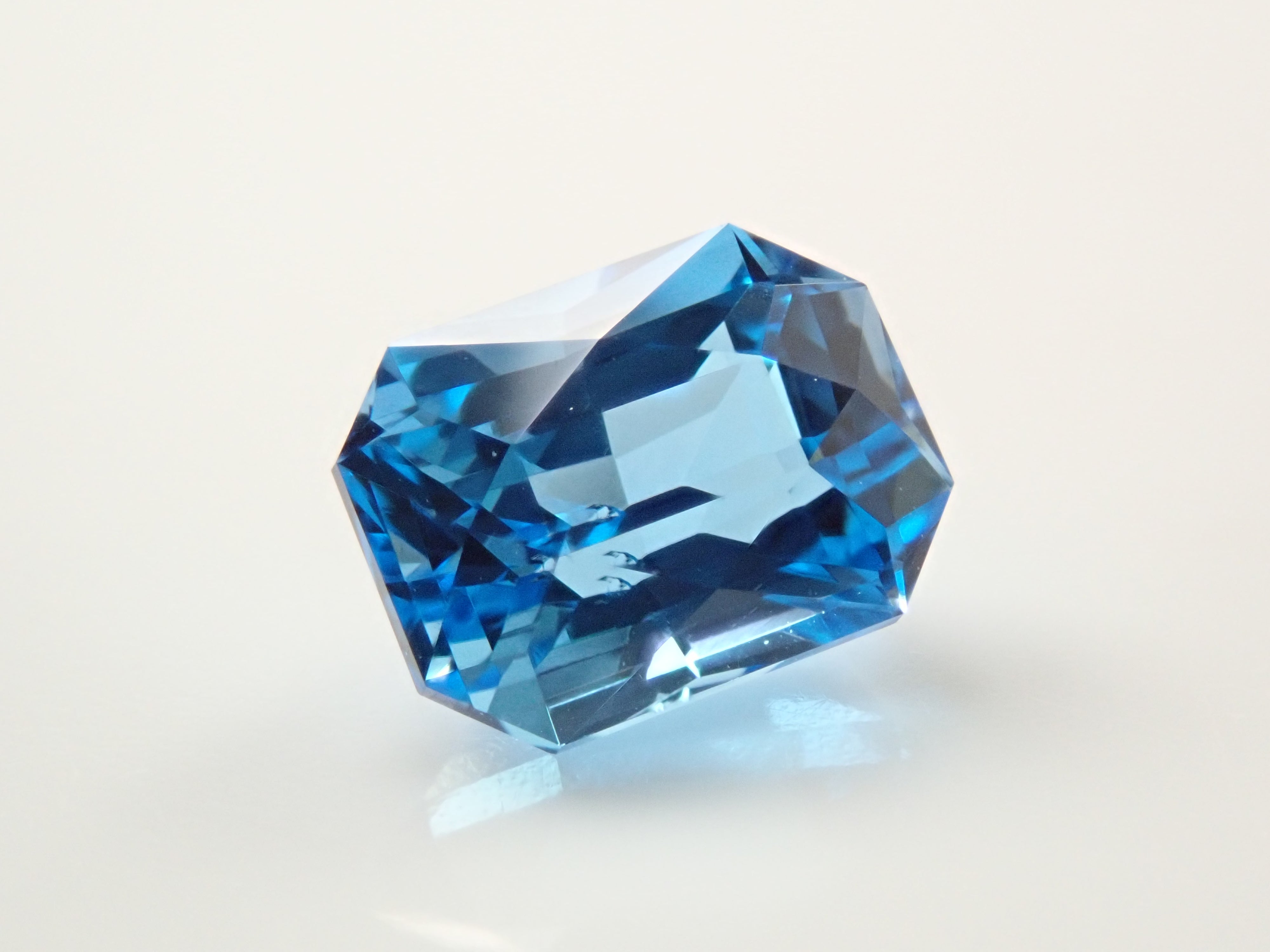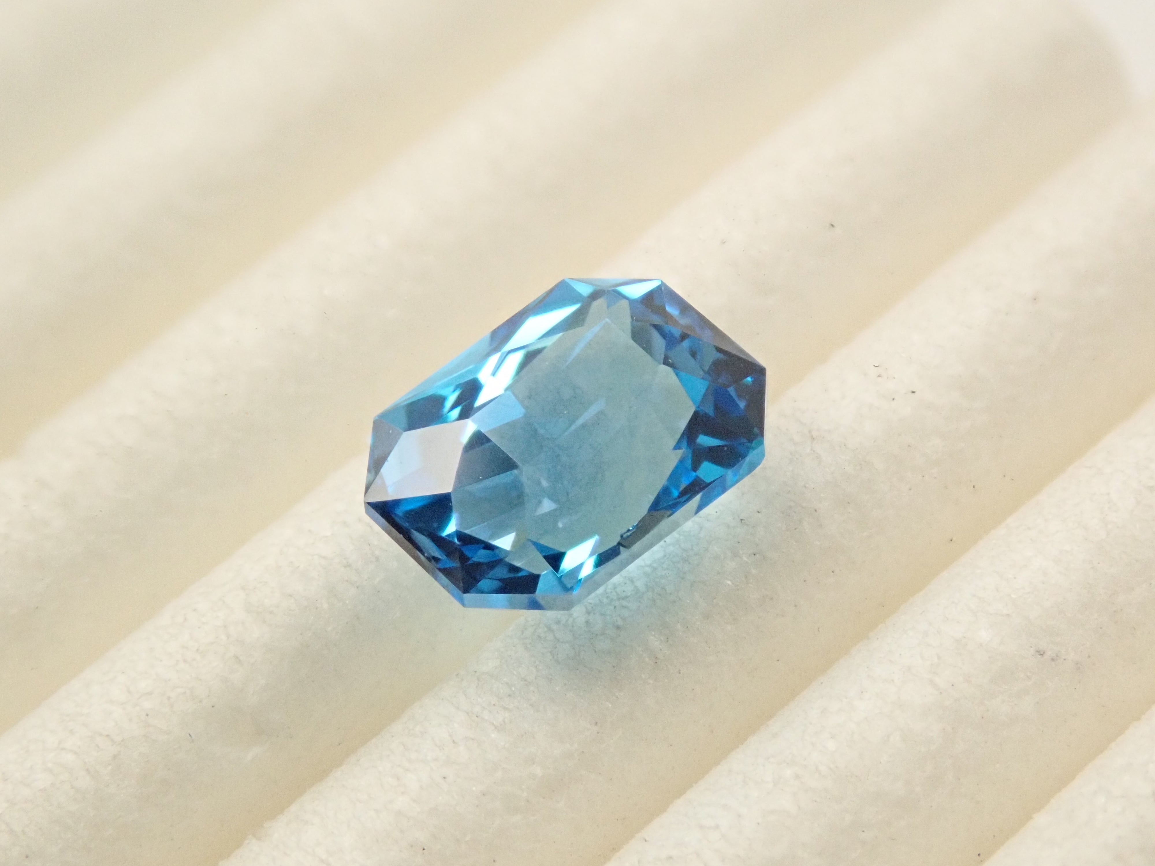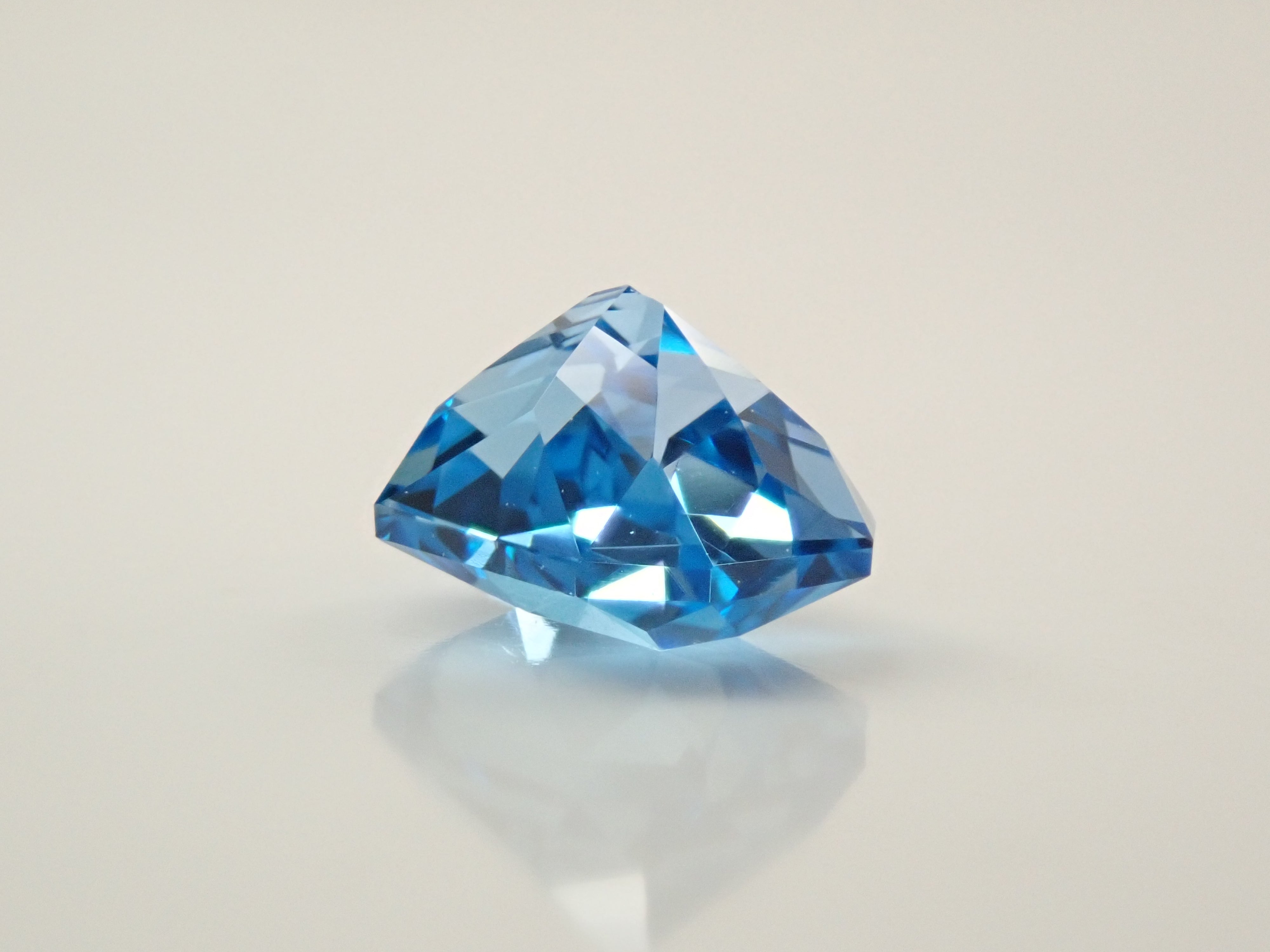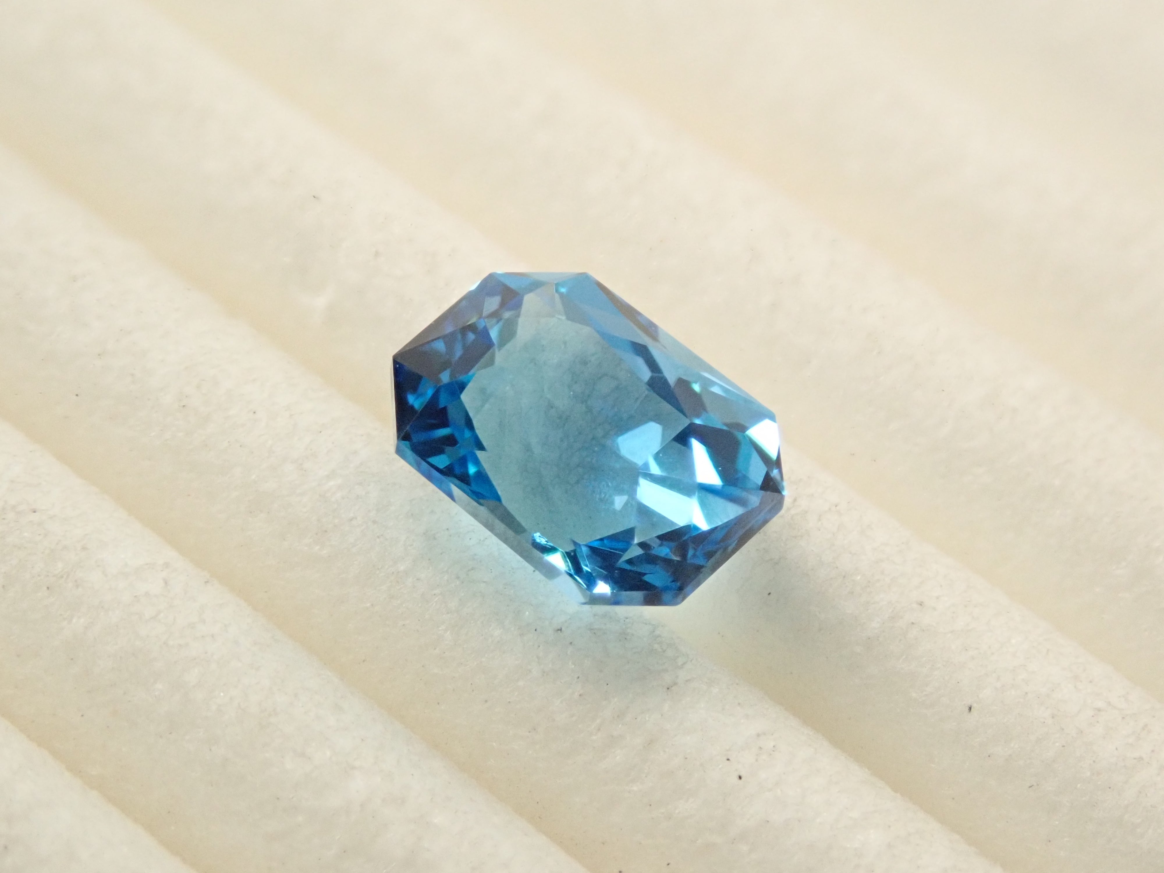 藍色托帕石以其迷人的藍色,是眾多托帕石變種中最受歡迎的顏色之一。其中,「瑞士藍托帕石」指的是像這顆散石一樣,擁有深邃而鮮豔藍色的寶石。這顆1.062克拉的瑞士藍托帕石產自巴西,由斯里蘭卡拋光師桑傑(Sanjay)拋光。