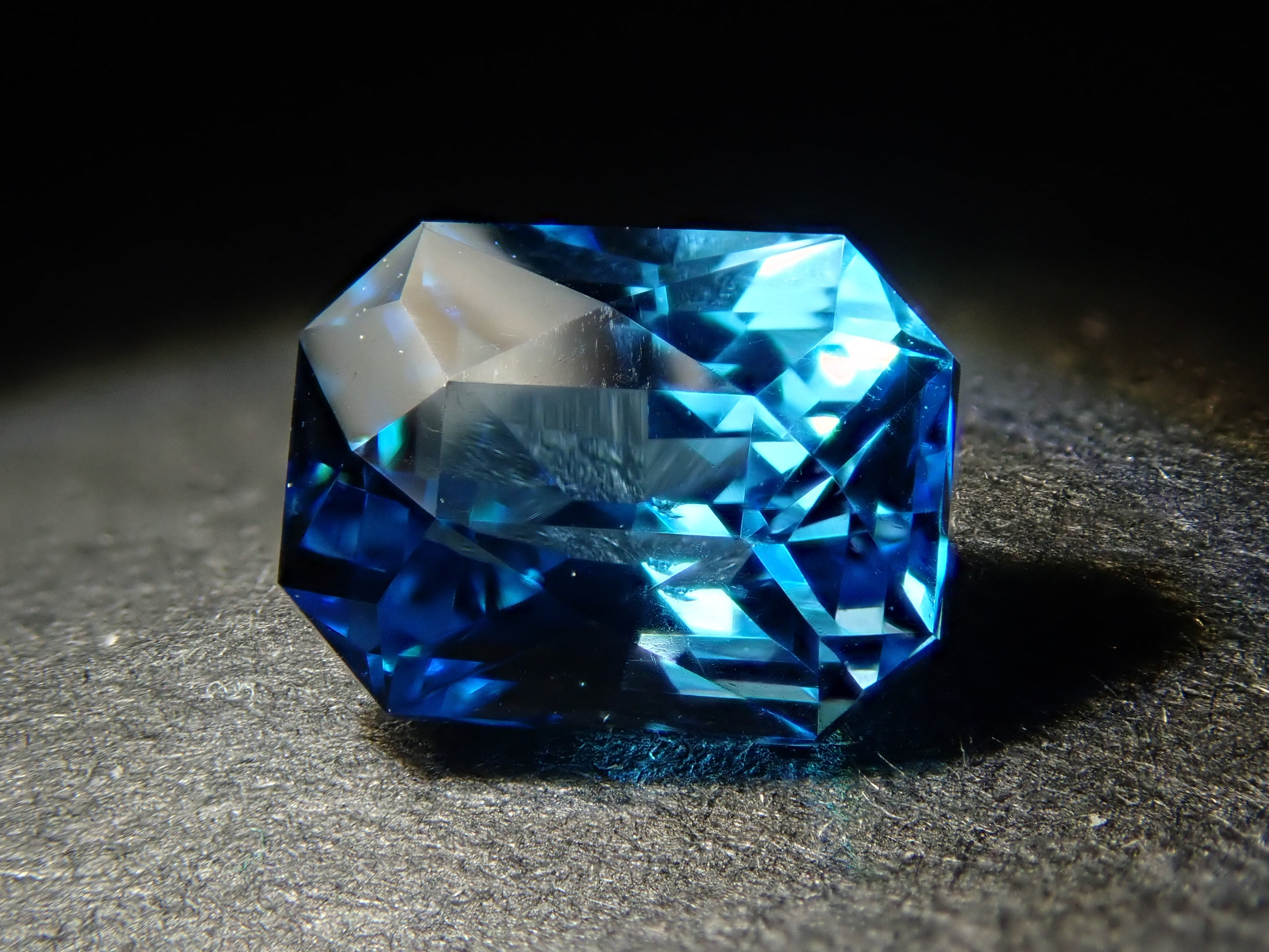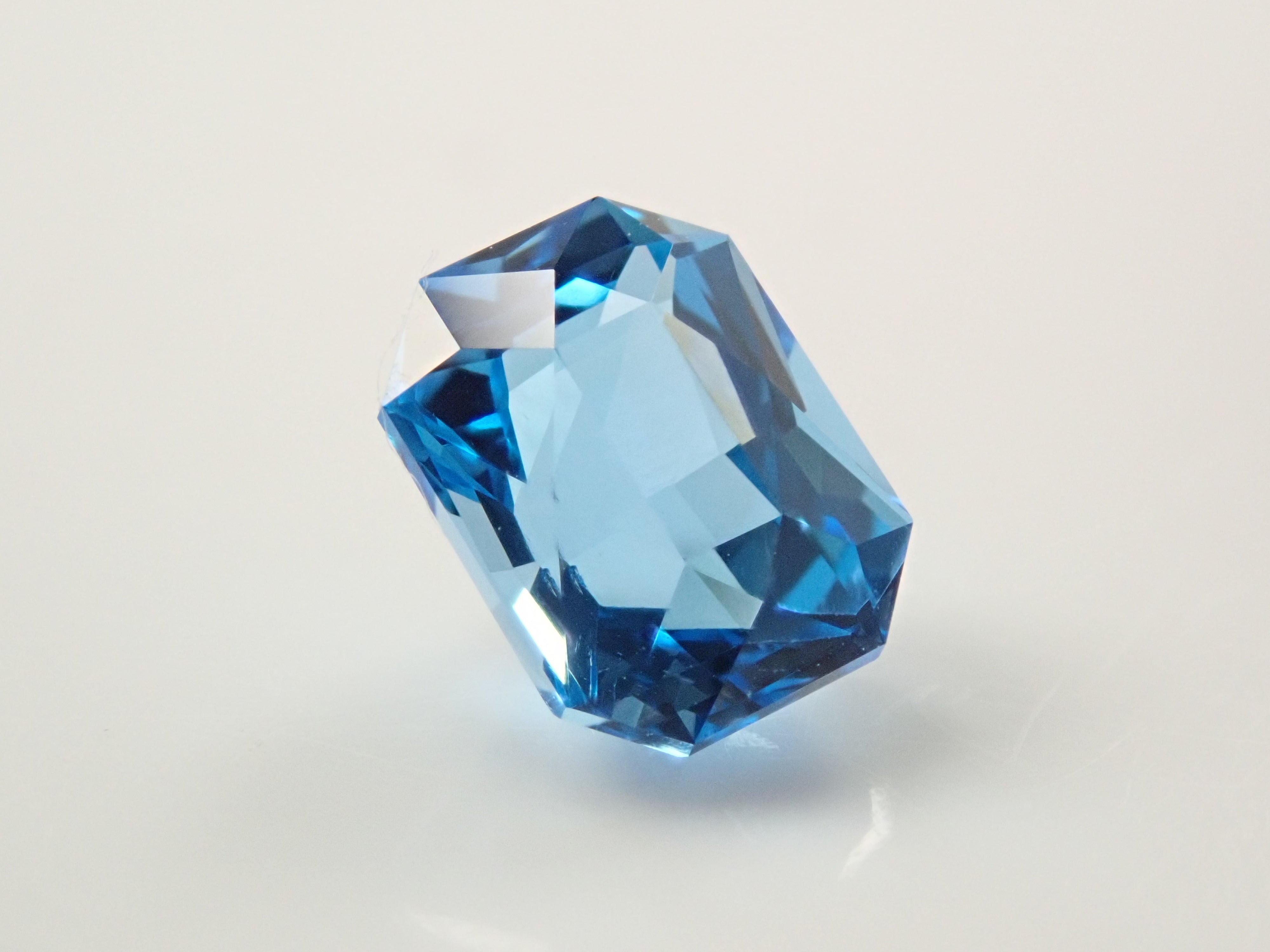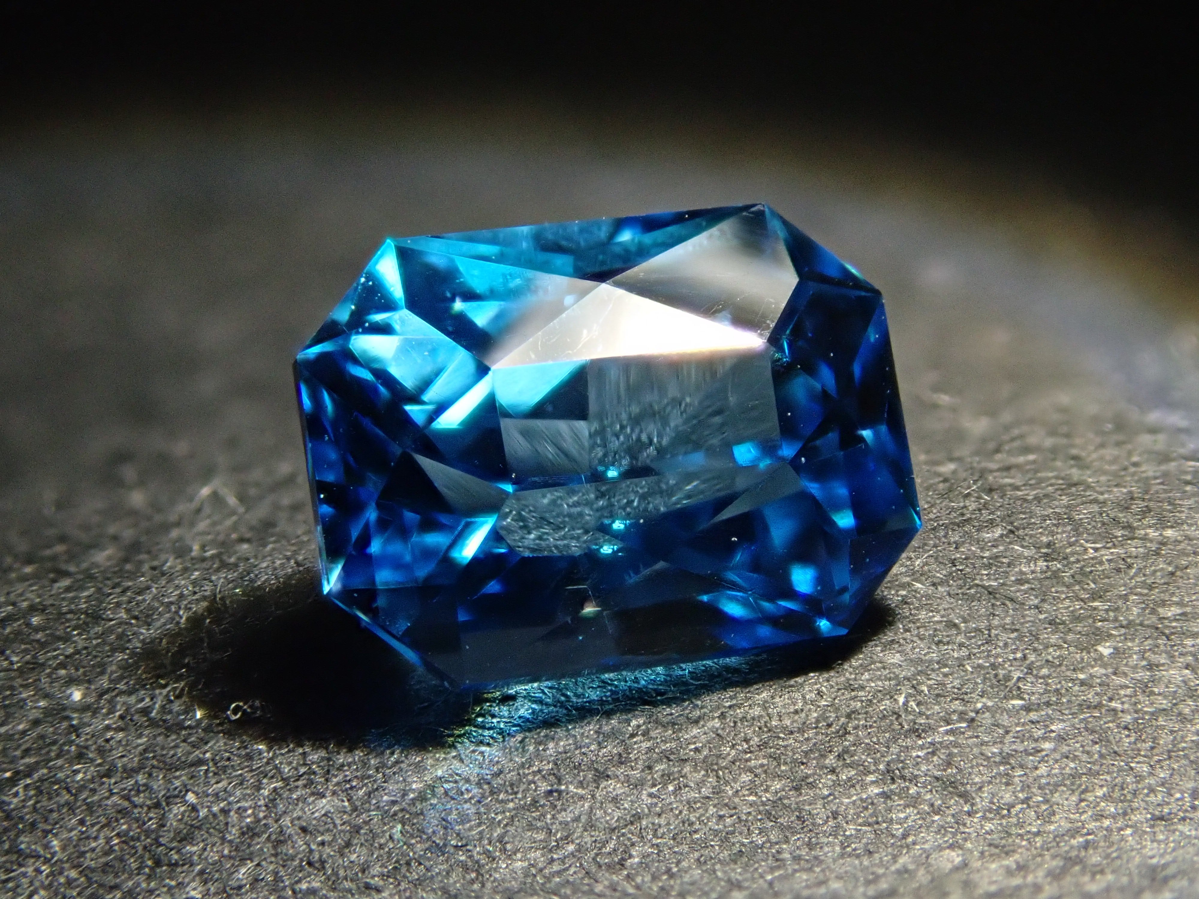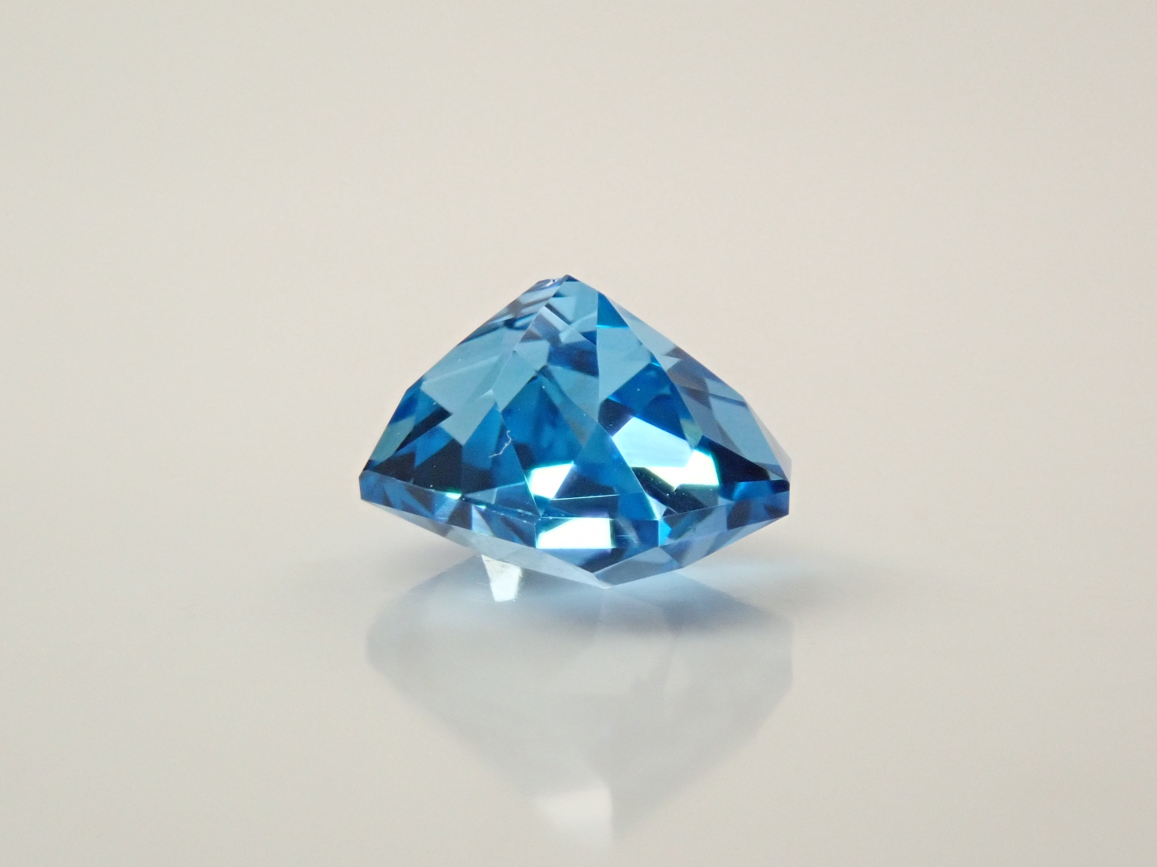 藍色托帕石以其迷人的藍色,是眾多托帕石變種中最受歡迎的顏色之一。其中,「瑞士藍托帕石」指的是像這顆散石一樣,擁有深邃而鮮豔藍色的寶石。這顆1.062克拉的瑞士藍托帕石產自巴西,由斯里蘭卡拋光師桑傑(Sanjay)拋光。
