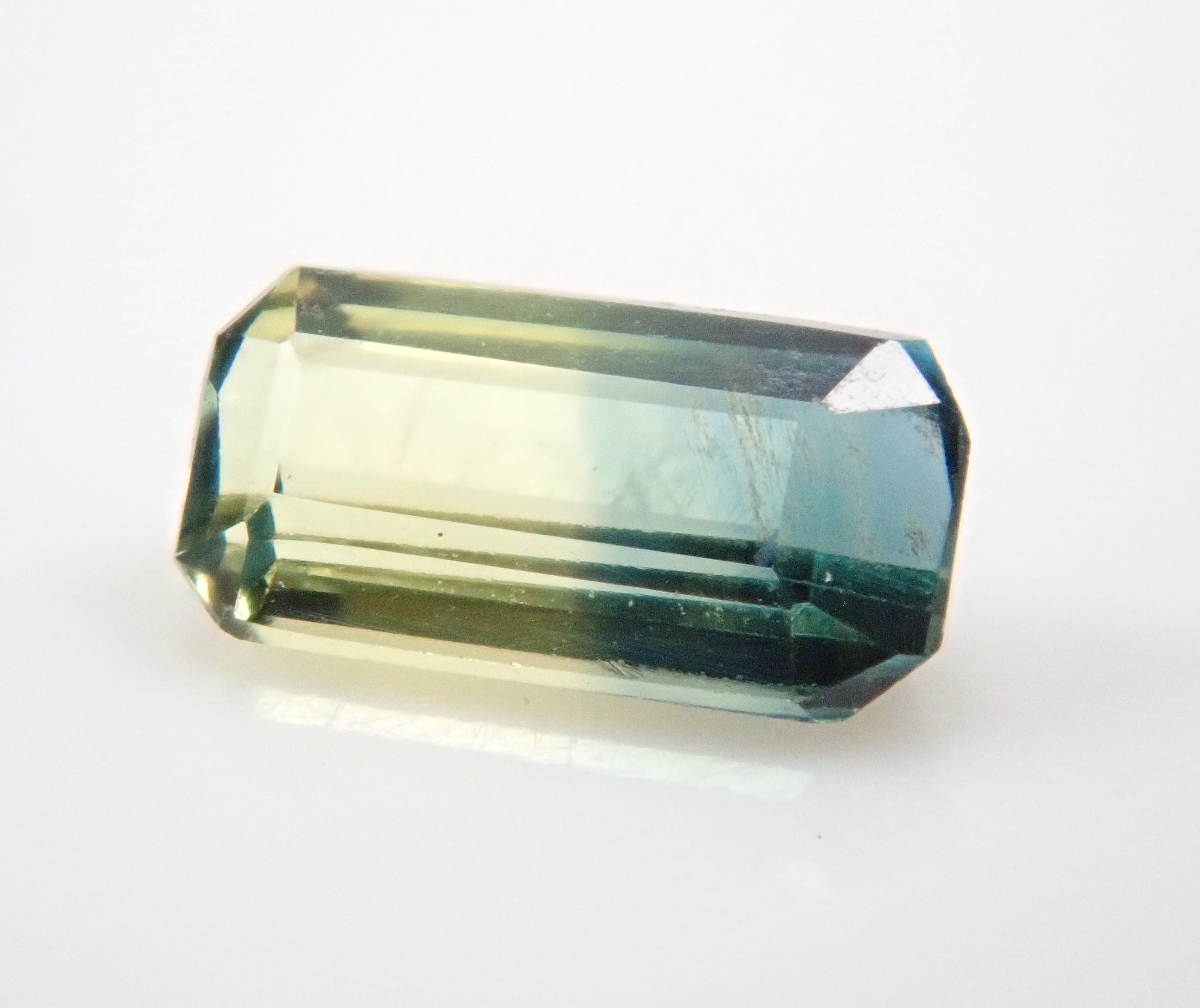 這顆雙色藍寶石可讓您同時欣賞黃色和綠色藍寶石。它是一種高度透明的裸石。