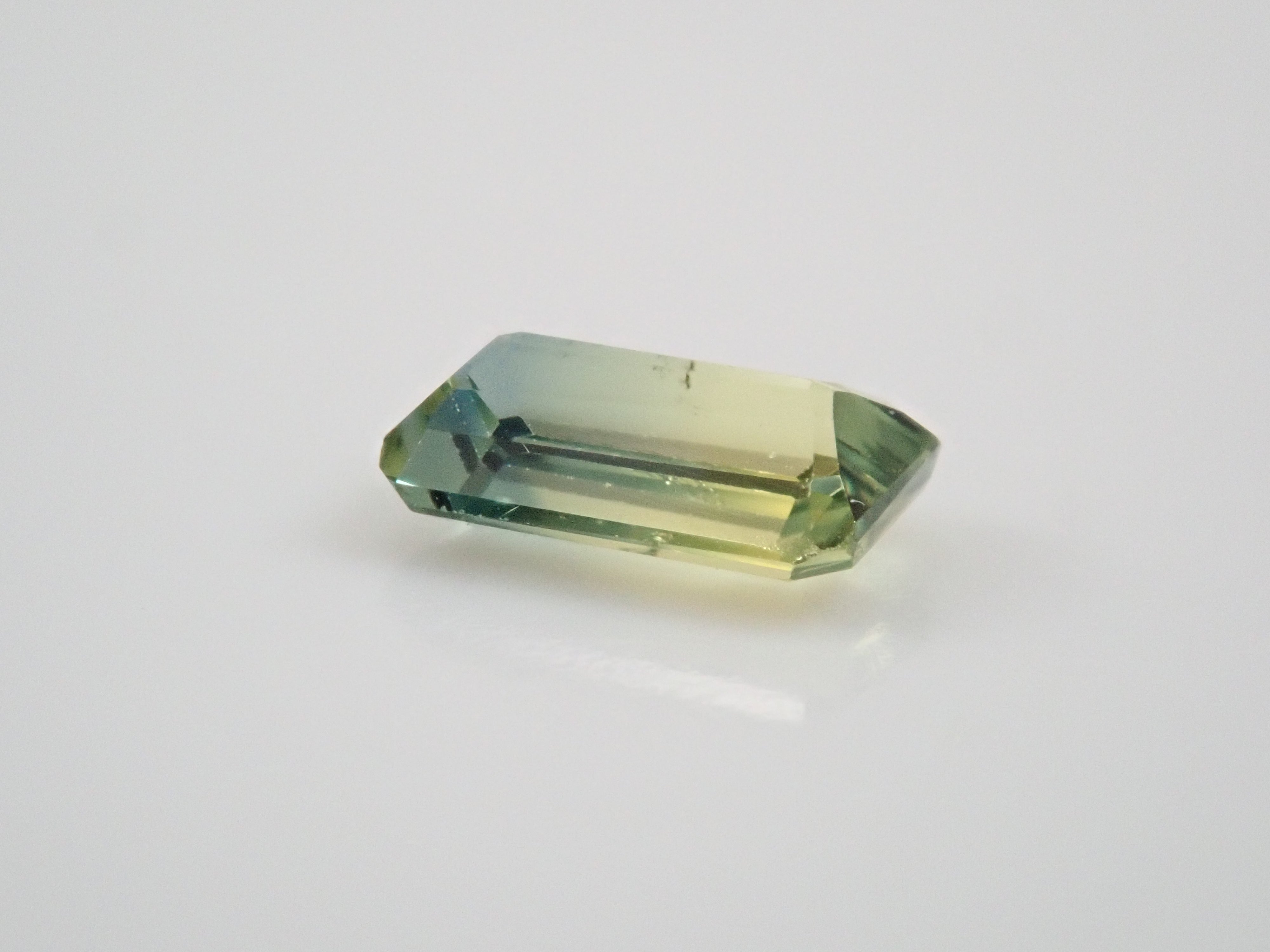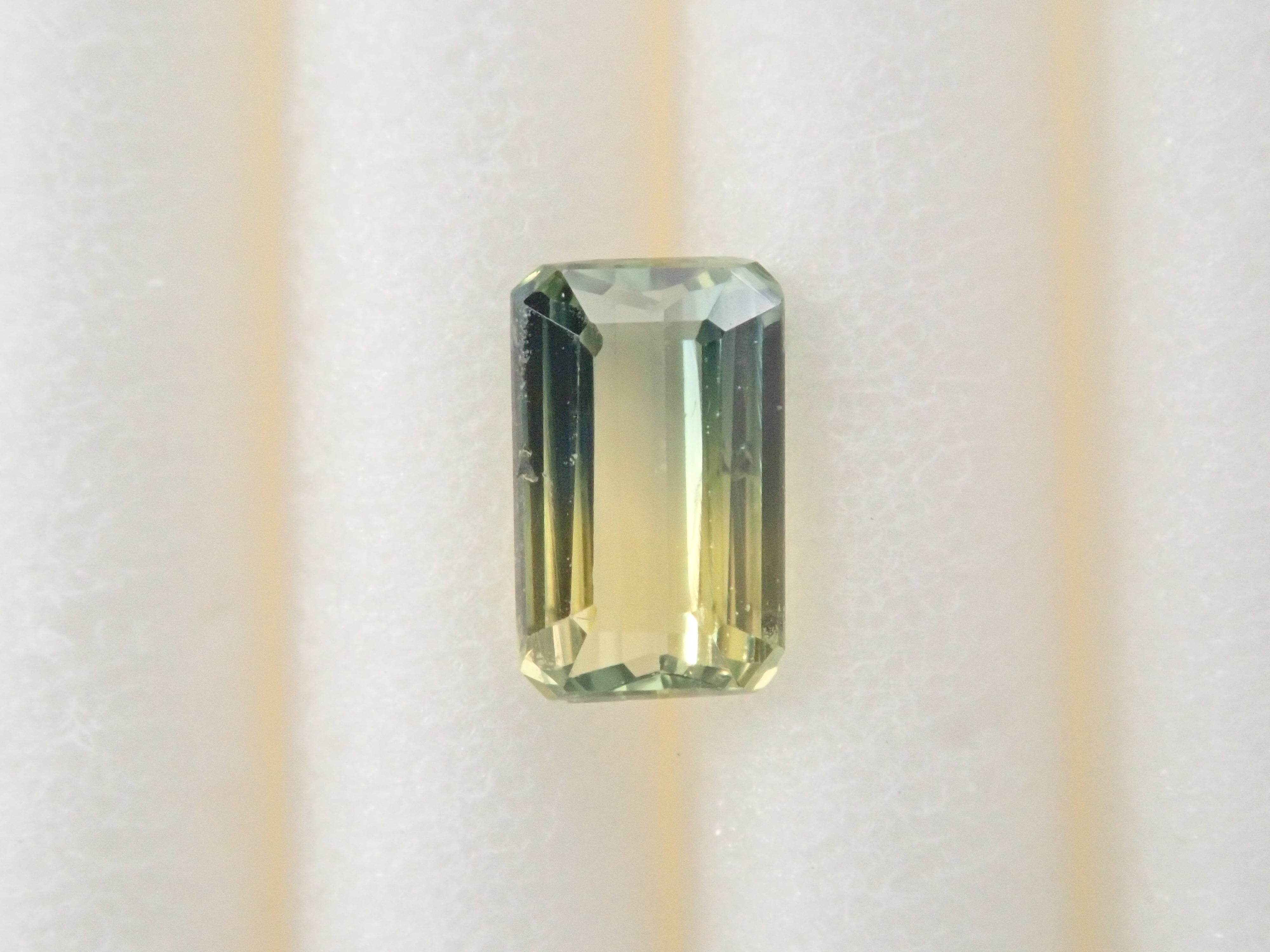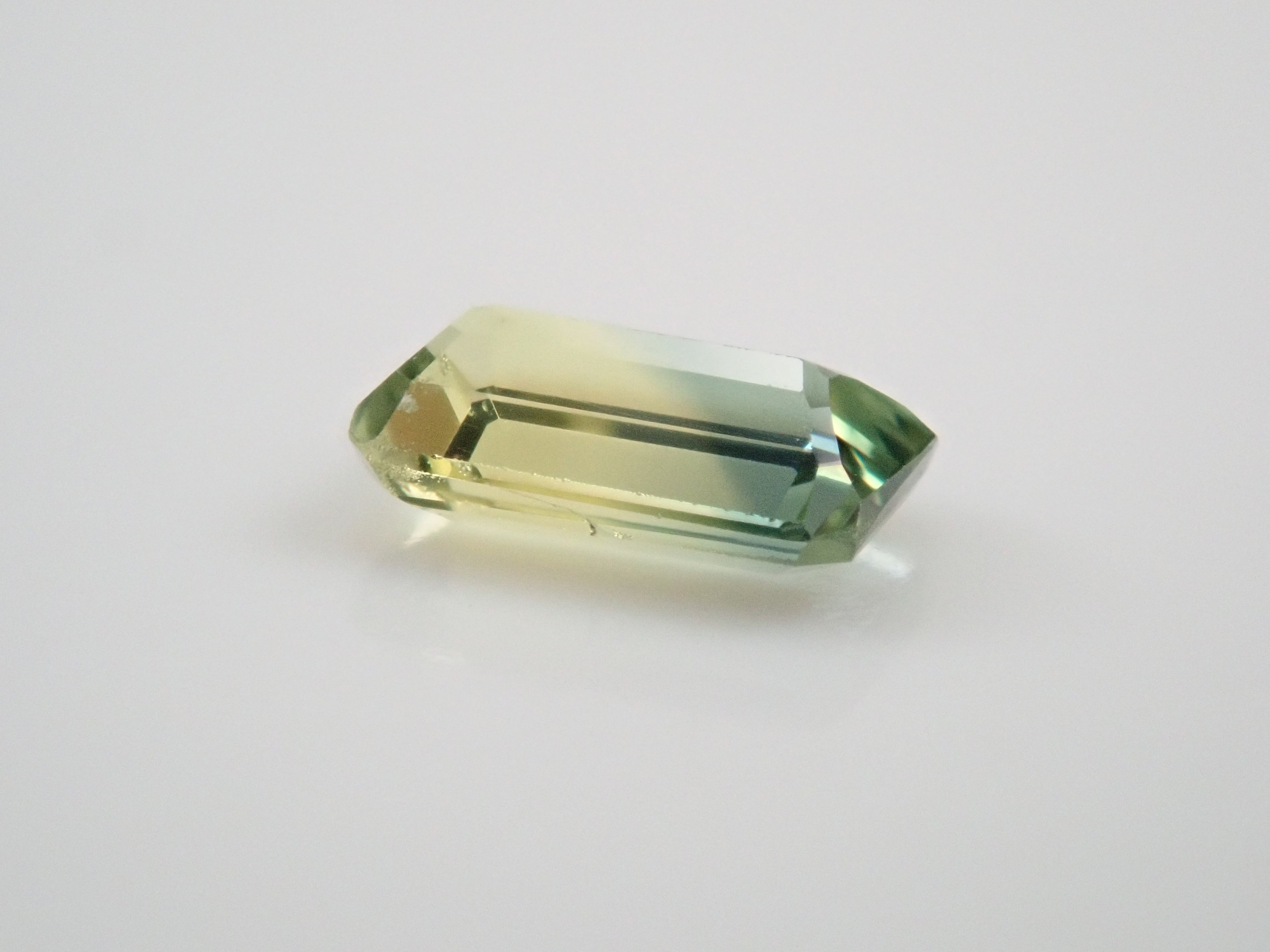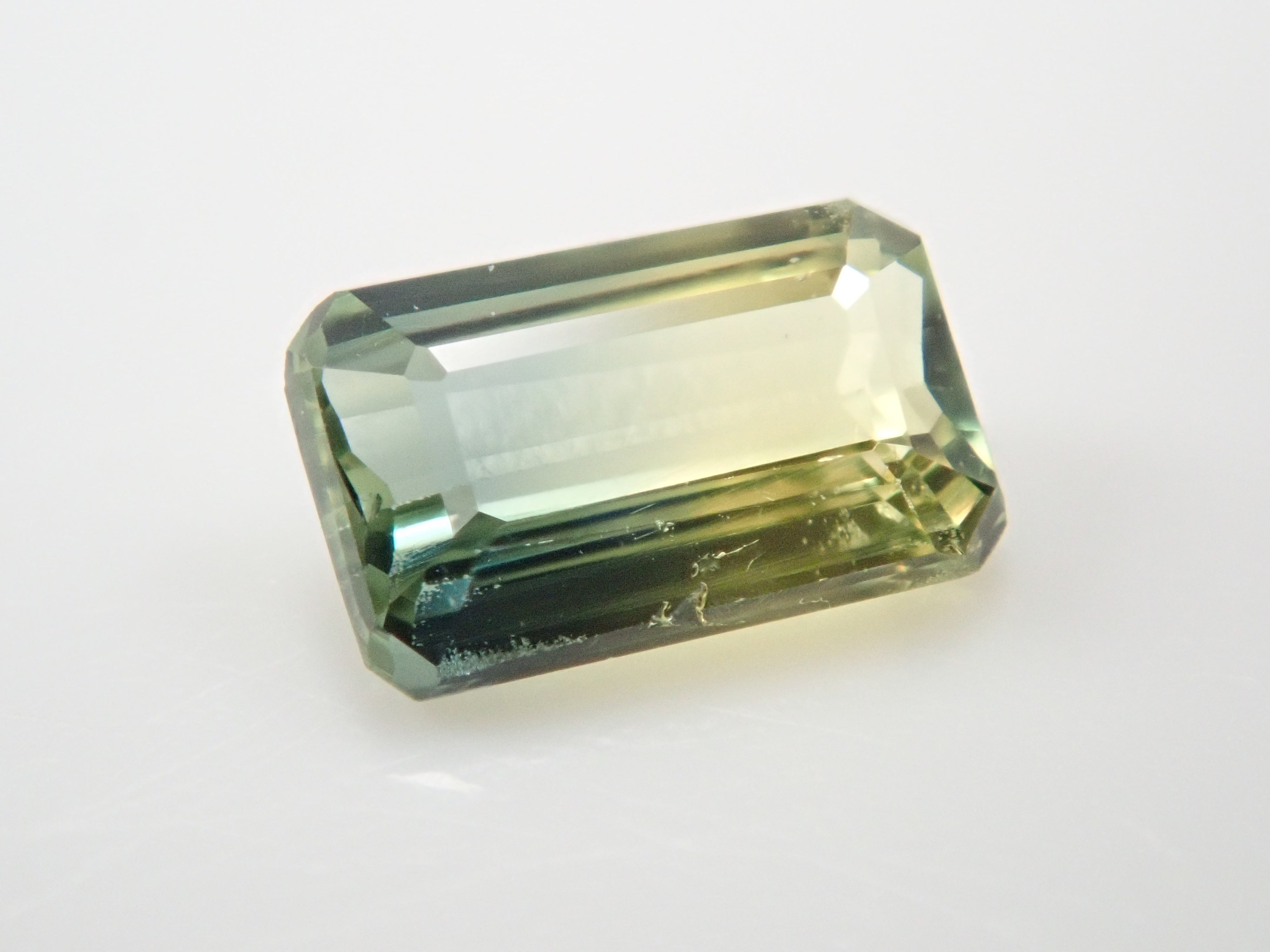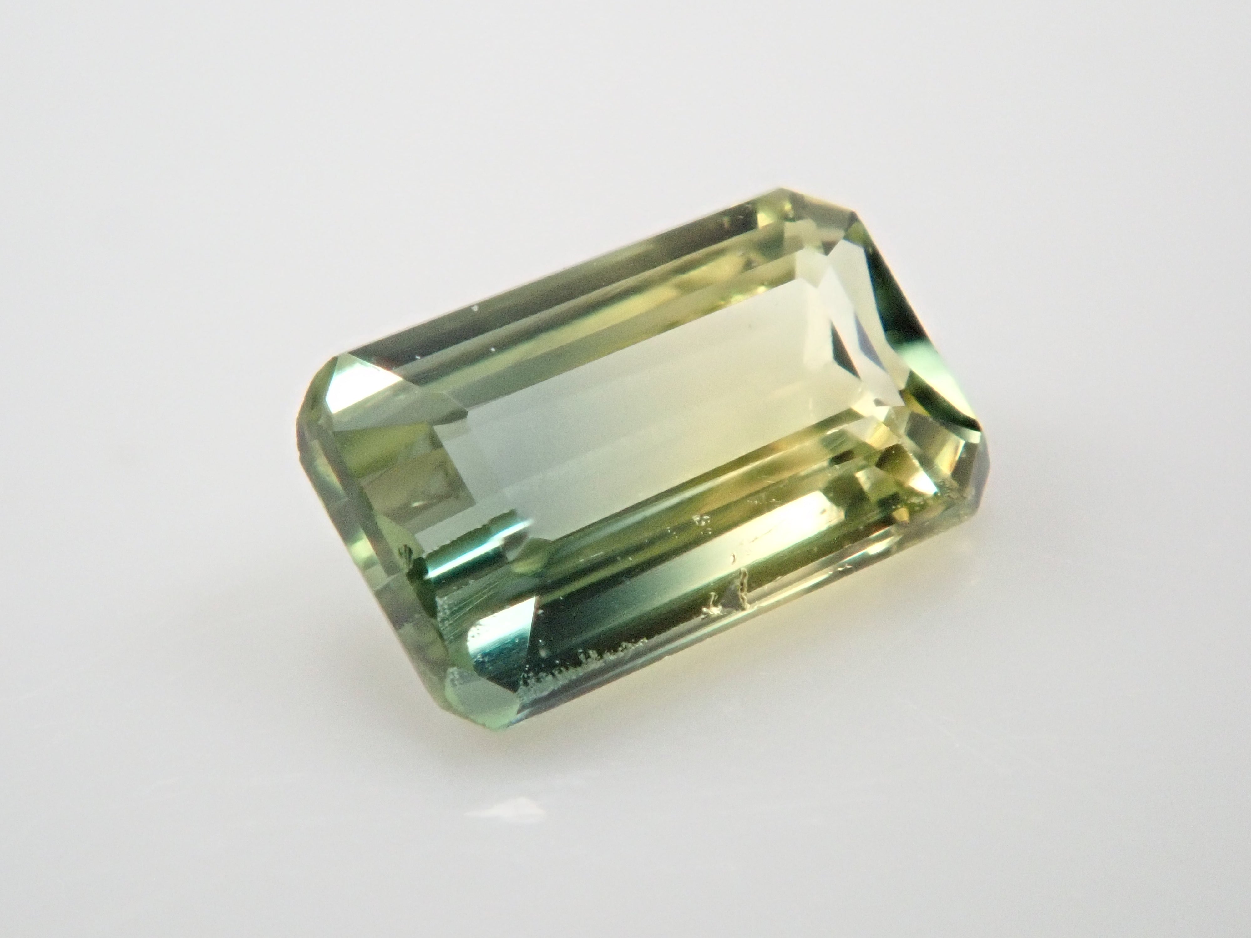 這顆雙色藍寶石可讓您同時欣賞黃色和綠色藍寶石。它是一種高度透明的裸石。
