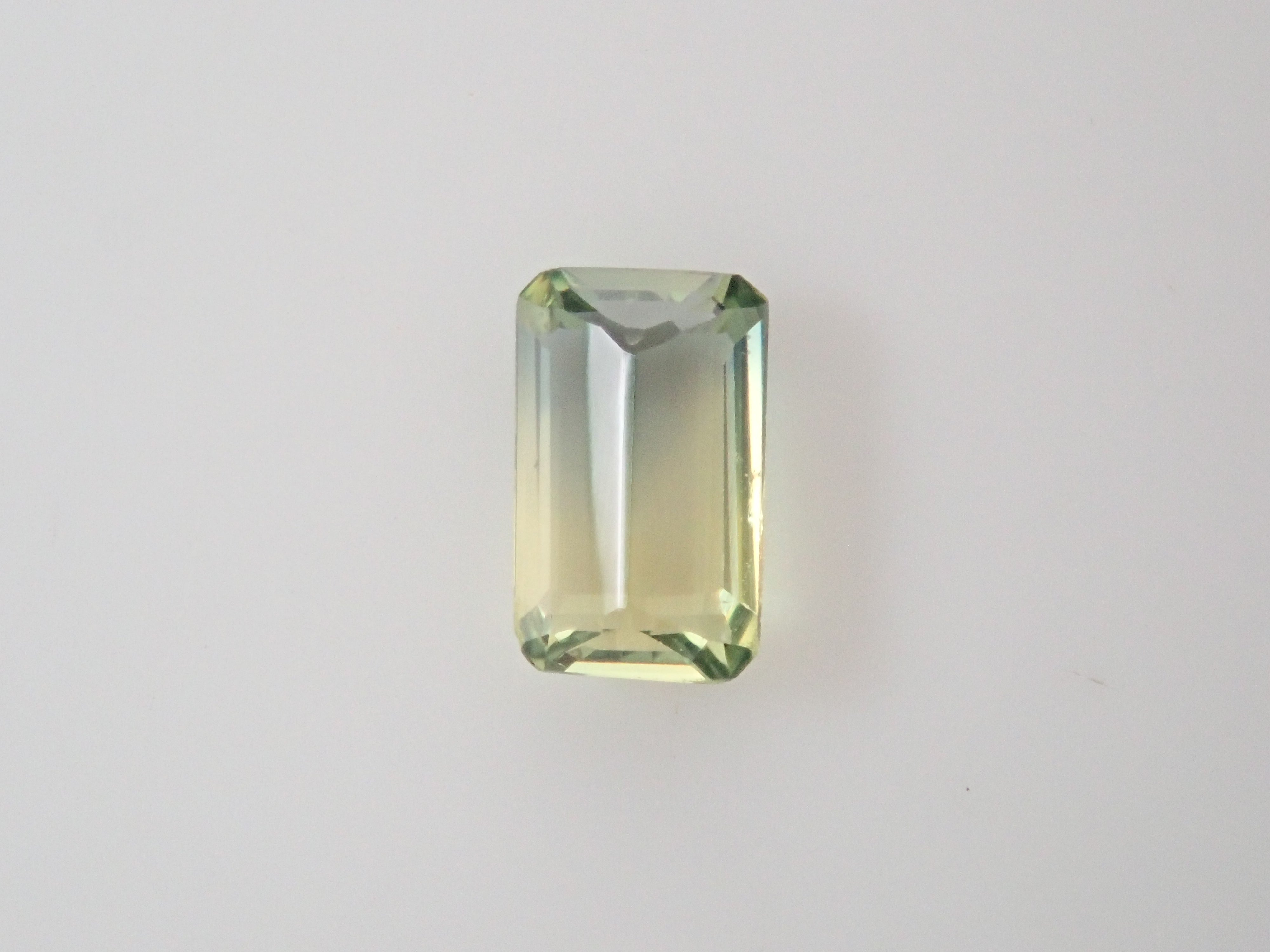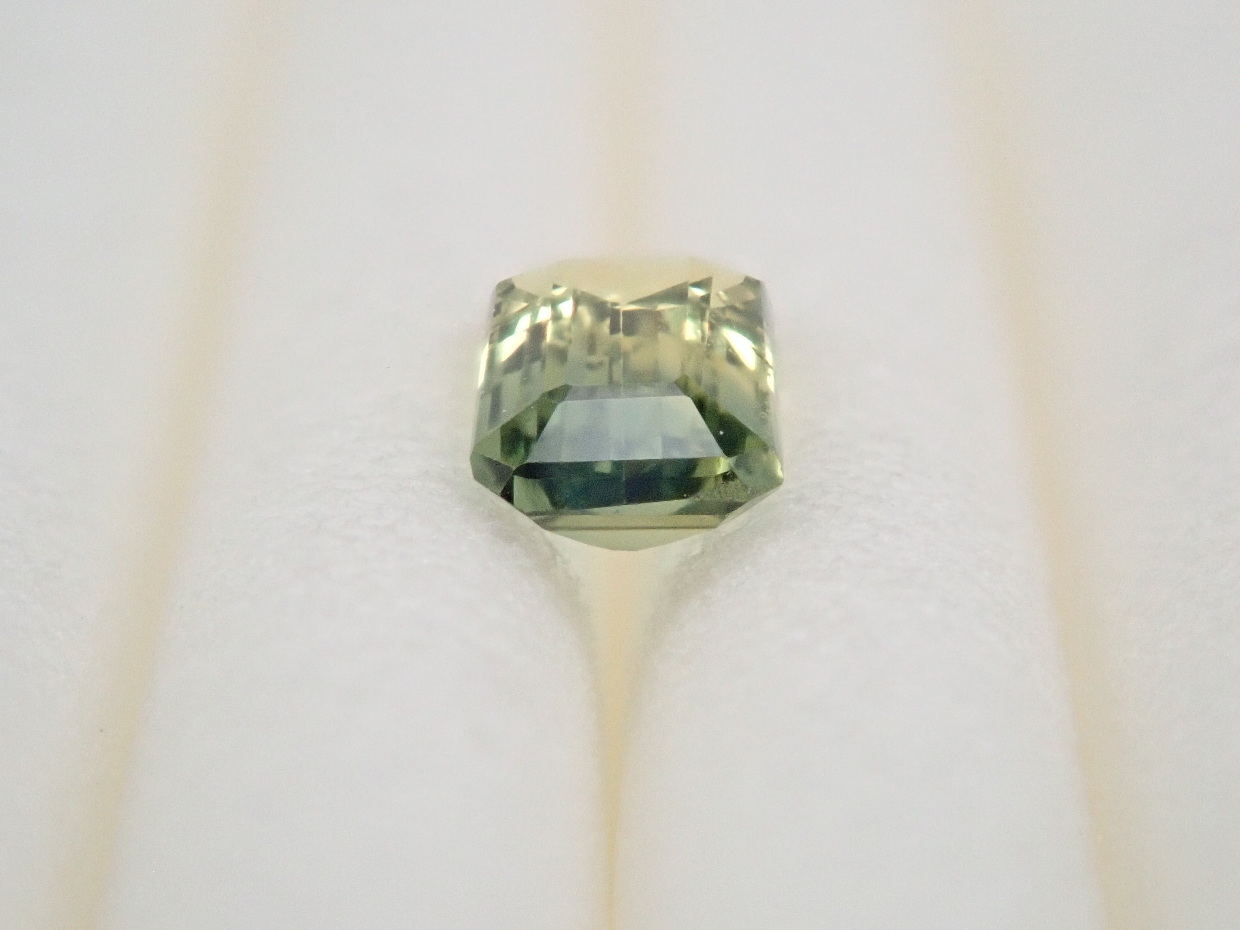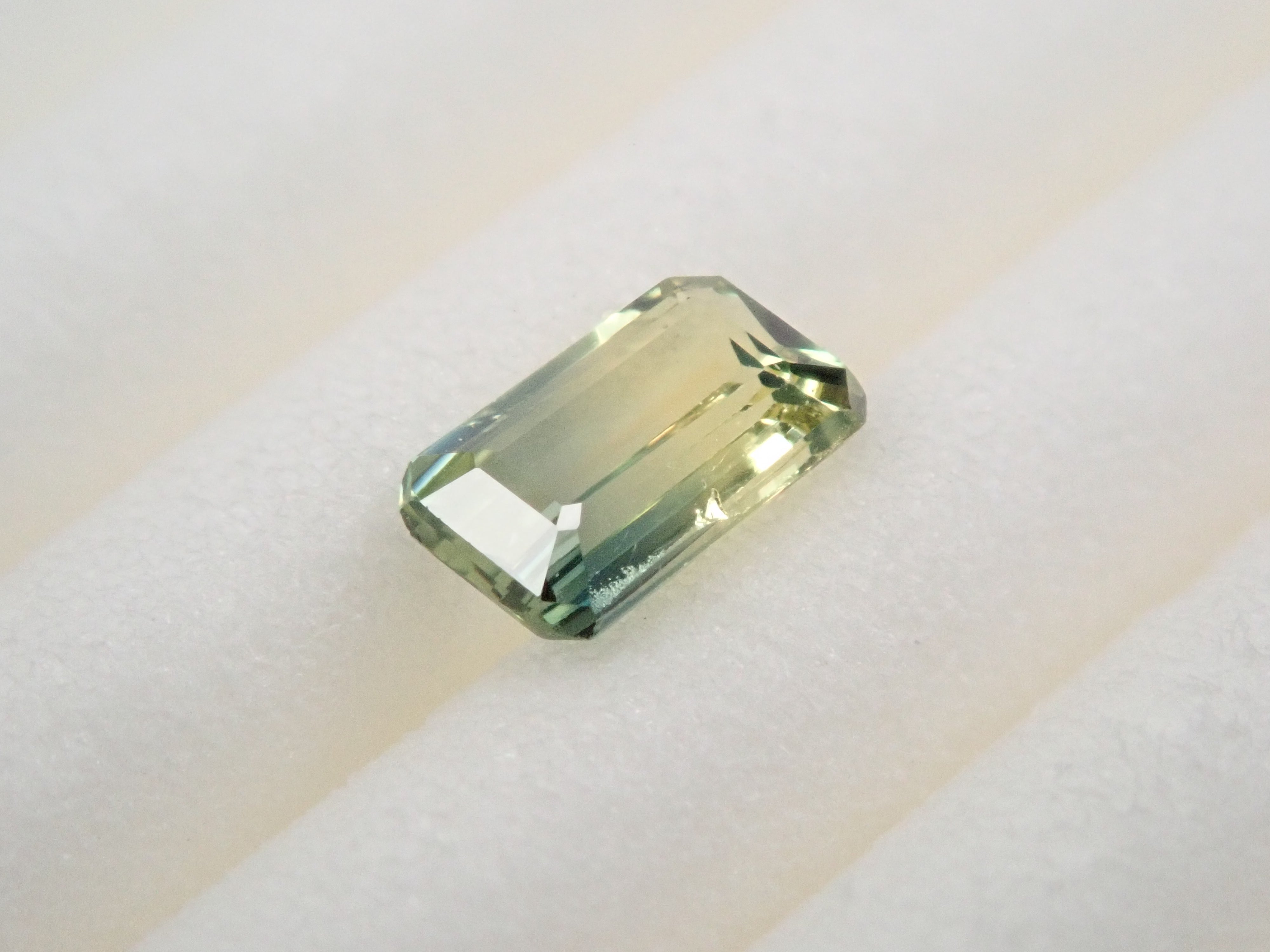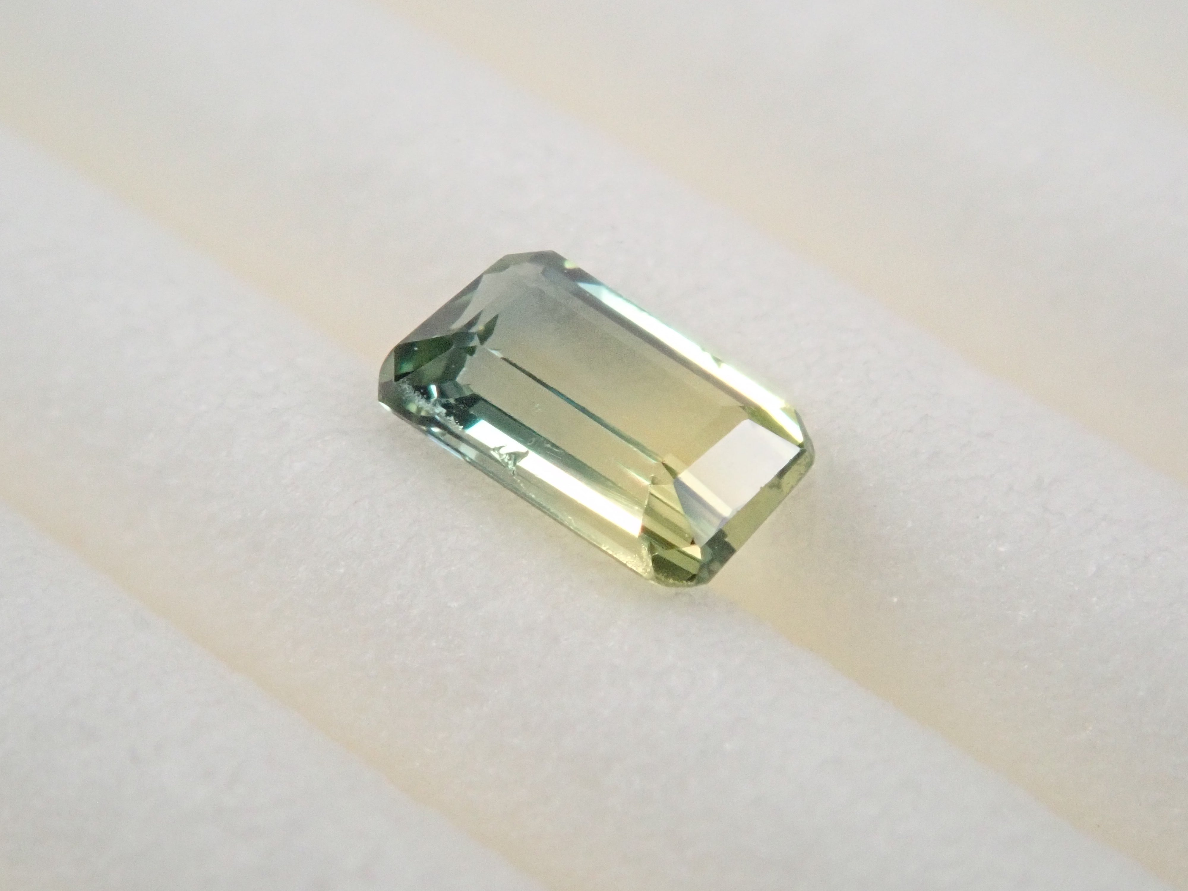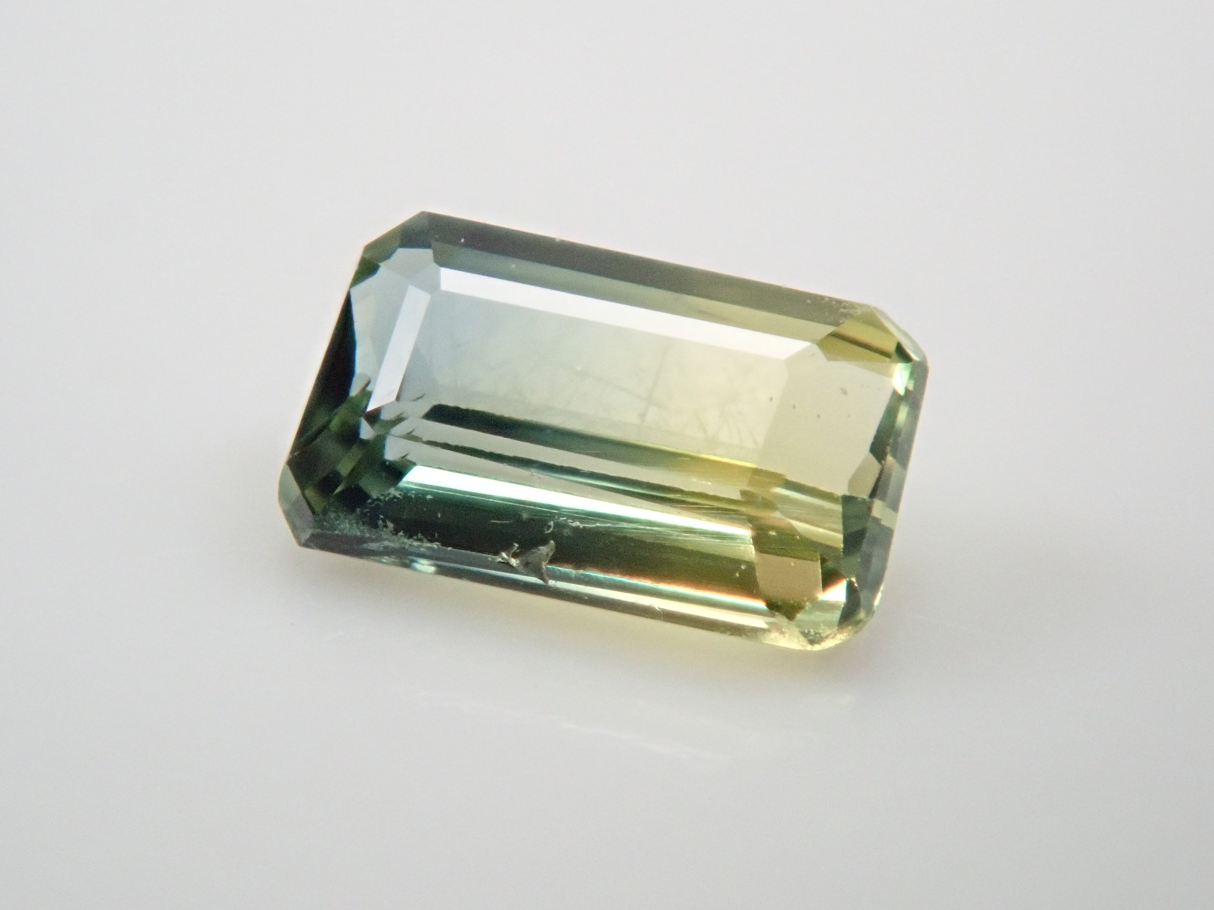 這顆雙色藍寶石可讓您同時欣賞黃色和綠色藍寶石。它是一種高度透明的裸石。