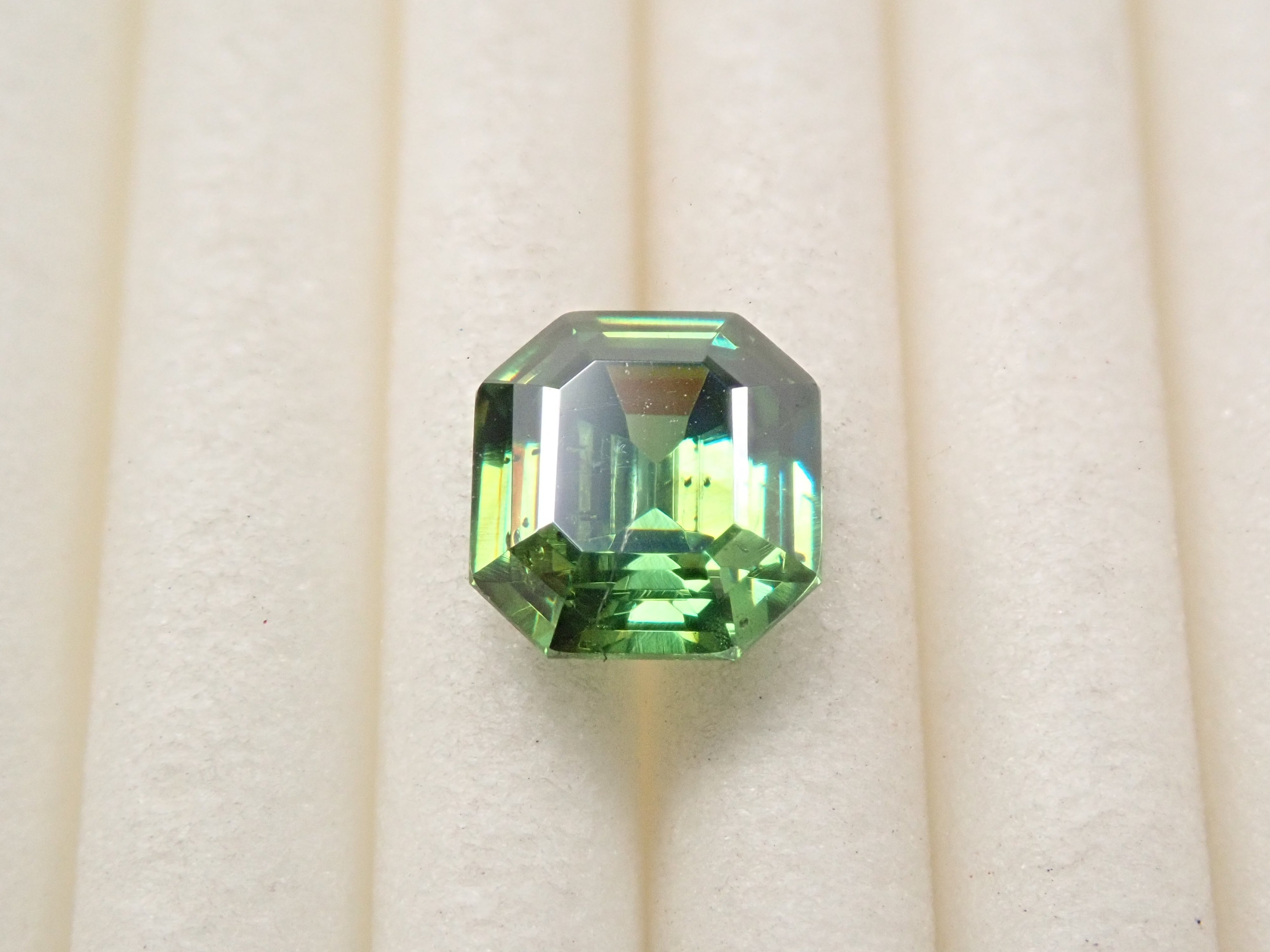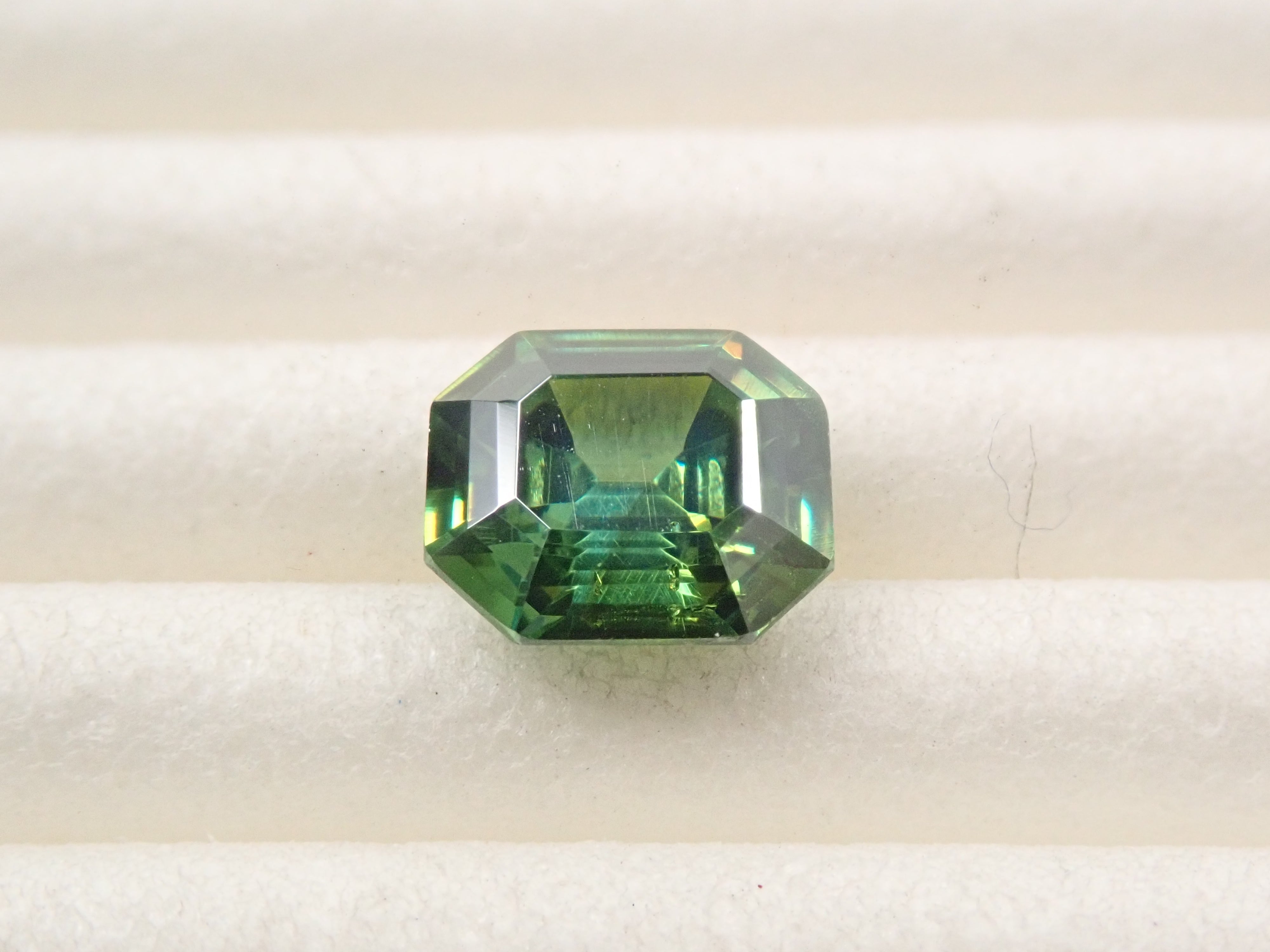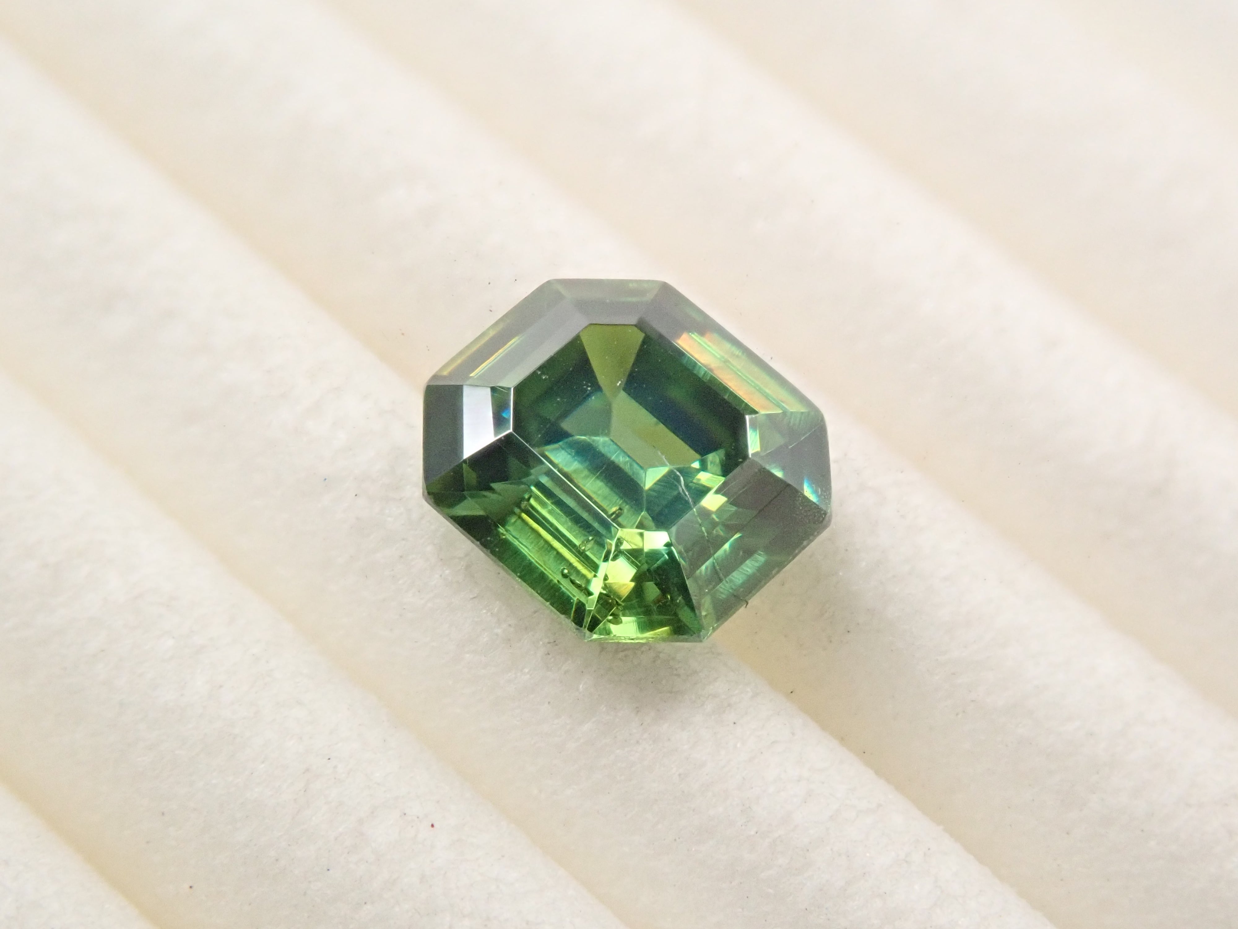 閃鋅礦的色散率幾乎是鑽石的四倍,並能展現出絢麗的火彩。據說,它是稀有寶石之一,流通量很小,在市場上並不常見。其底色為黃色、橙色、綠色等,火彩則呈現多種顏色,例如黃色、棕色、橙色、紅色和綠色。這顆產自保加利亞的優質祖母綠切割閃鋅礦,透明度高,色澤深邃。附有日德寶石學院的真品證書。