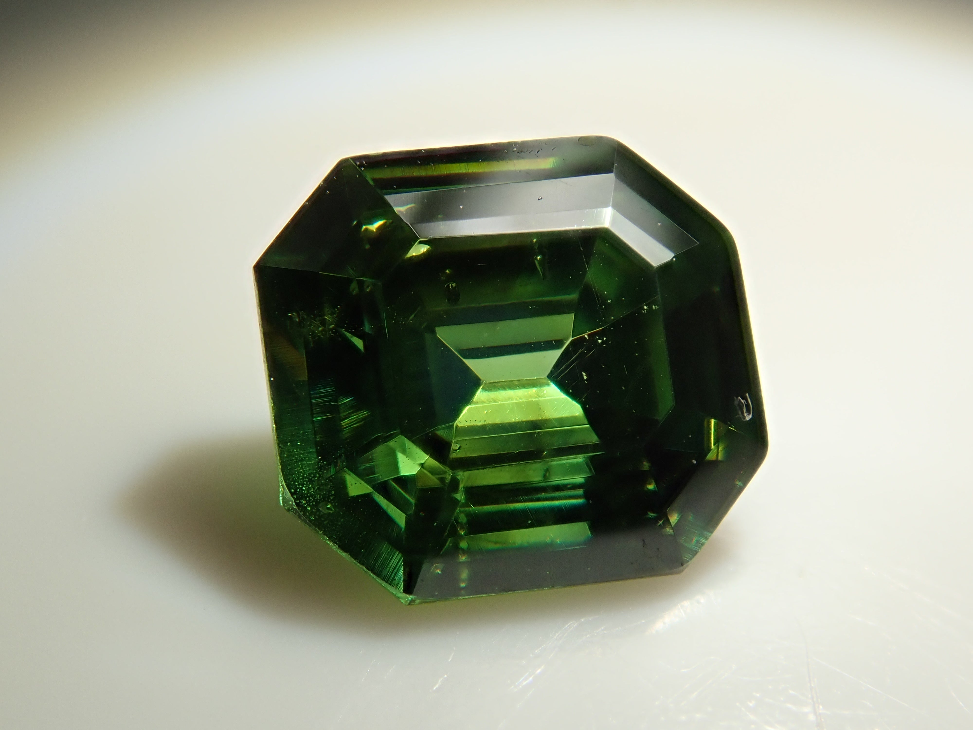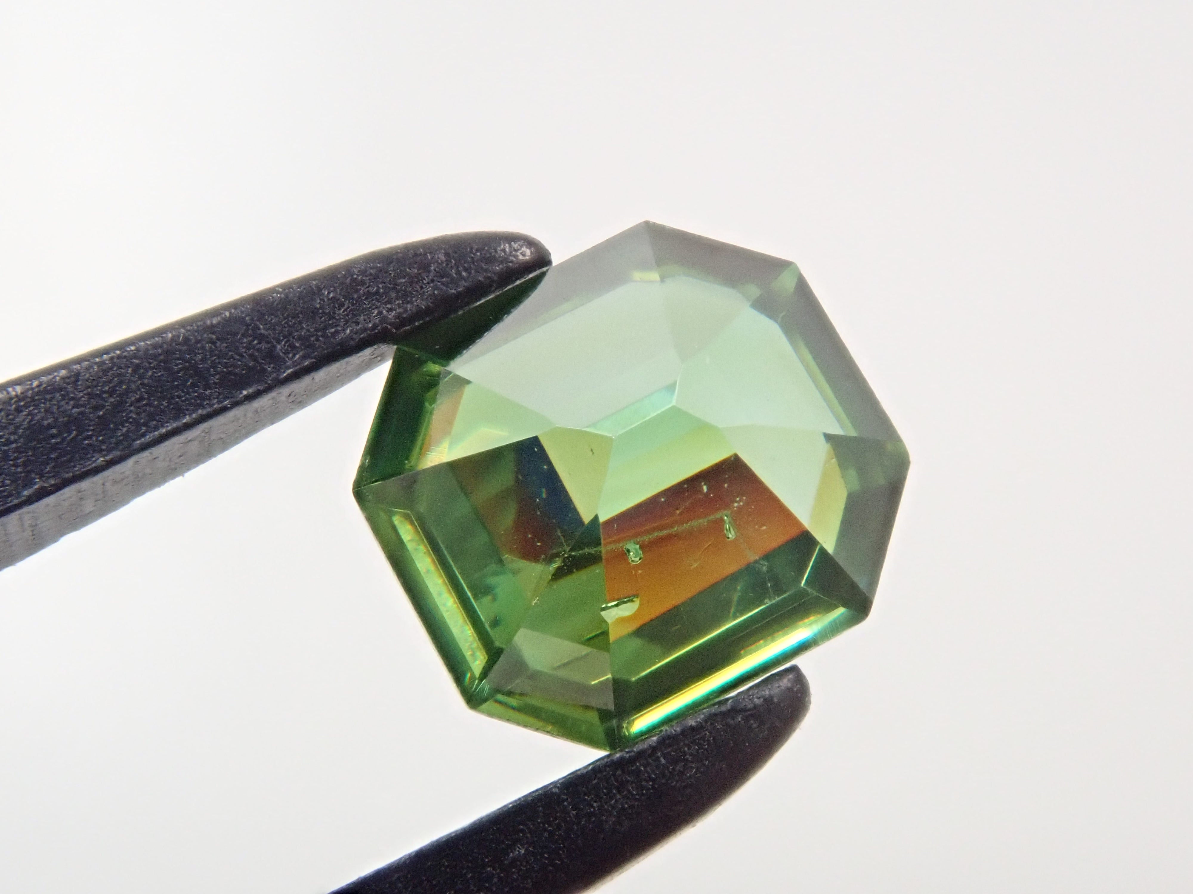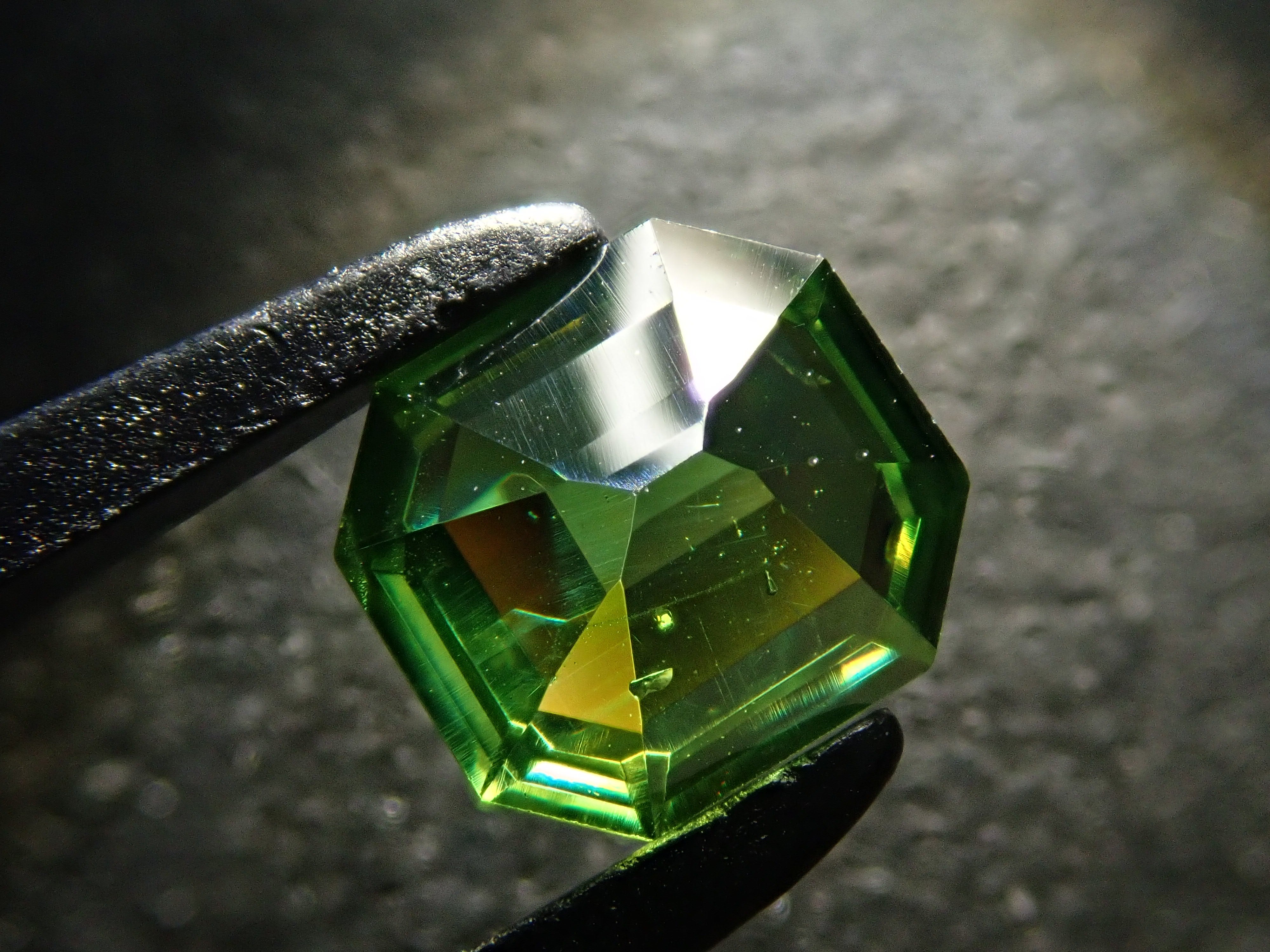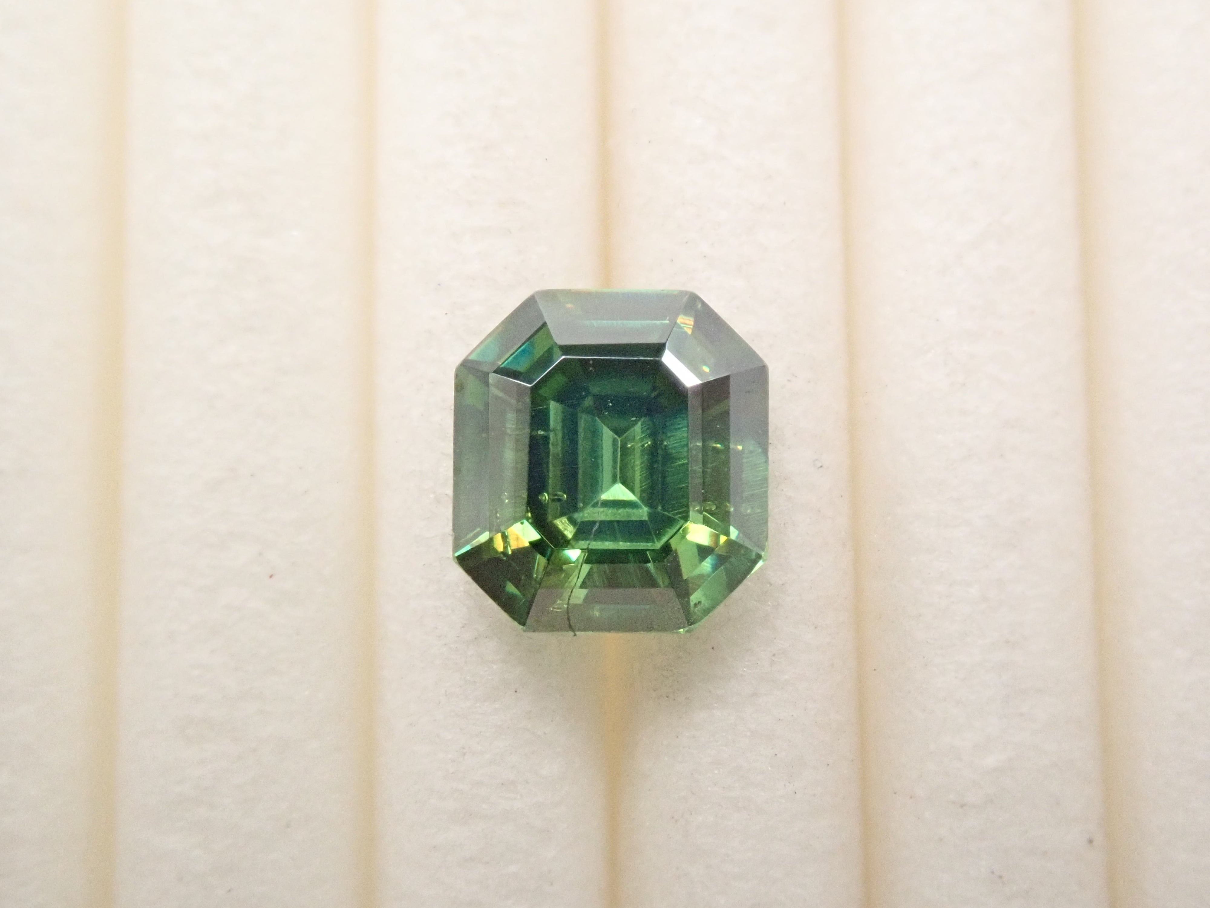 閃鋅礦的色散率幾乎是鑽石的四倍,並能展現出絢麗的火彩。據說,它是稀有寶石之一,流通量很小,在市場上並不常見。其底色為黃色、橙色、綠色等,火彩則呈現多種顏色,例如黃色、棕色、橙色、紅色和綠色。這顆產自保加利亞的優質祖母綠切割閃鋅礦,透明度高,色澤深邃。附有日德寶石學院的真品證書。