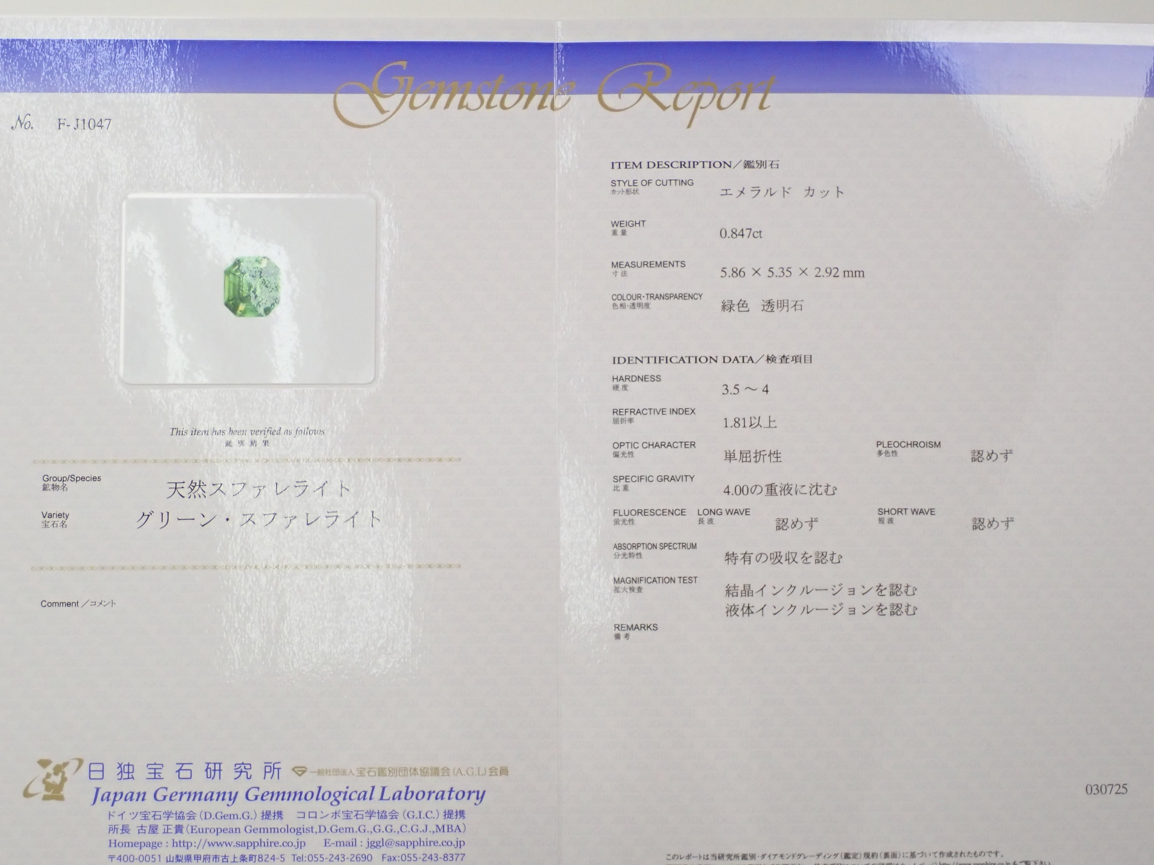 日經新聞:保加利亞綠色閃鋅礦 0.847 克拉散石