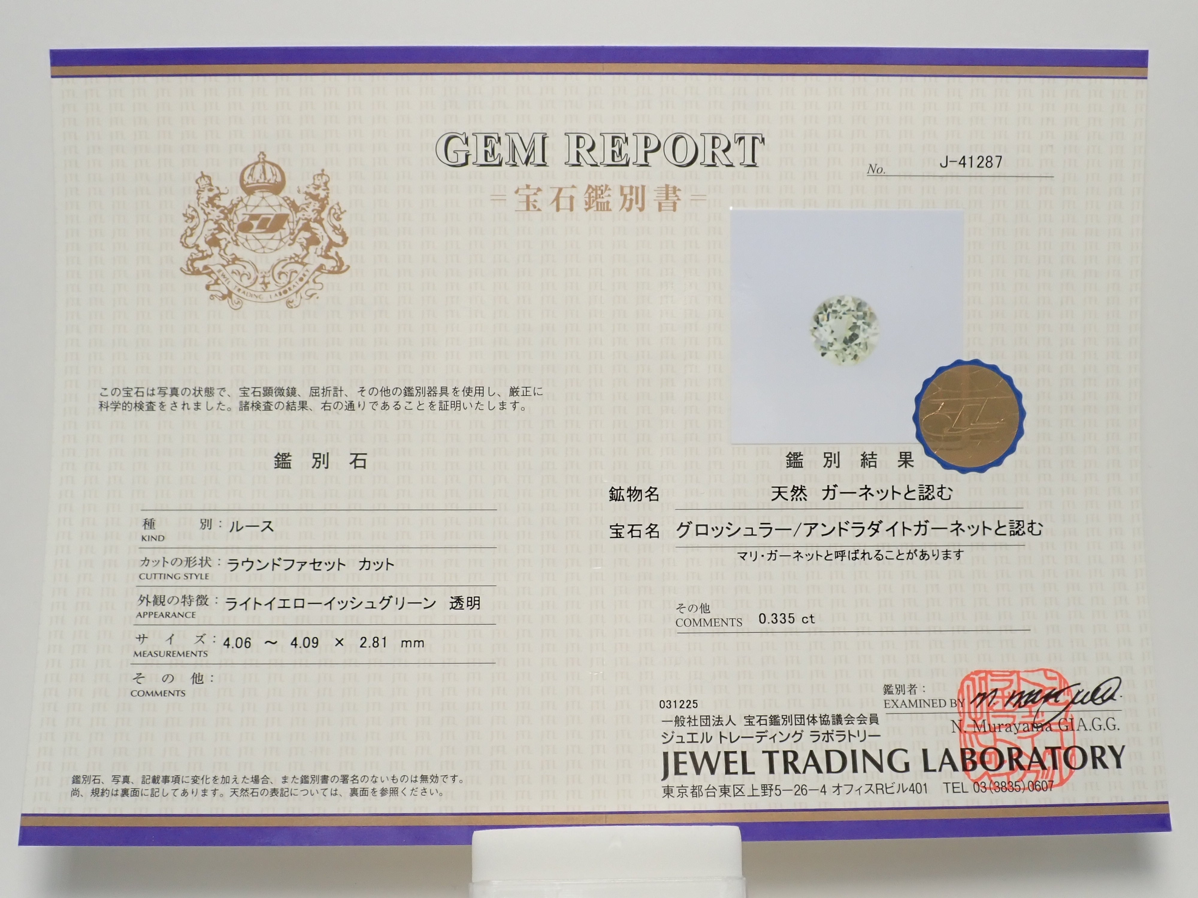 馬利石榴石(鈣鋁榴石/鈣鐵榴石)4.0毫米/0.355克拉散石,附真品證書