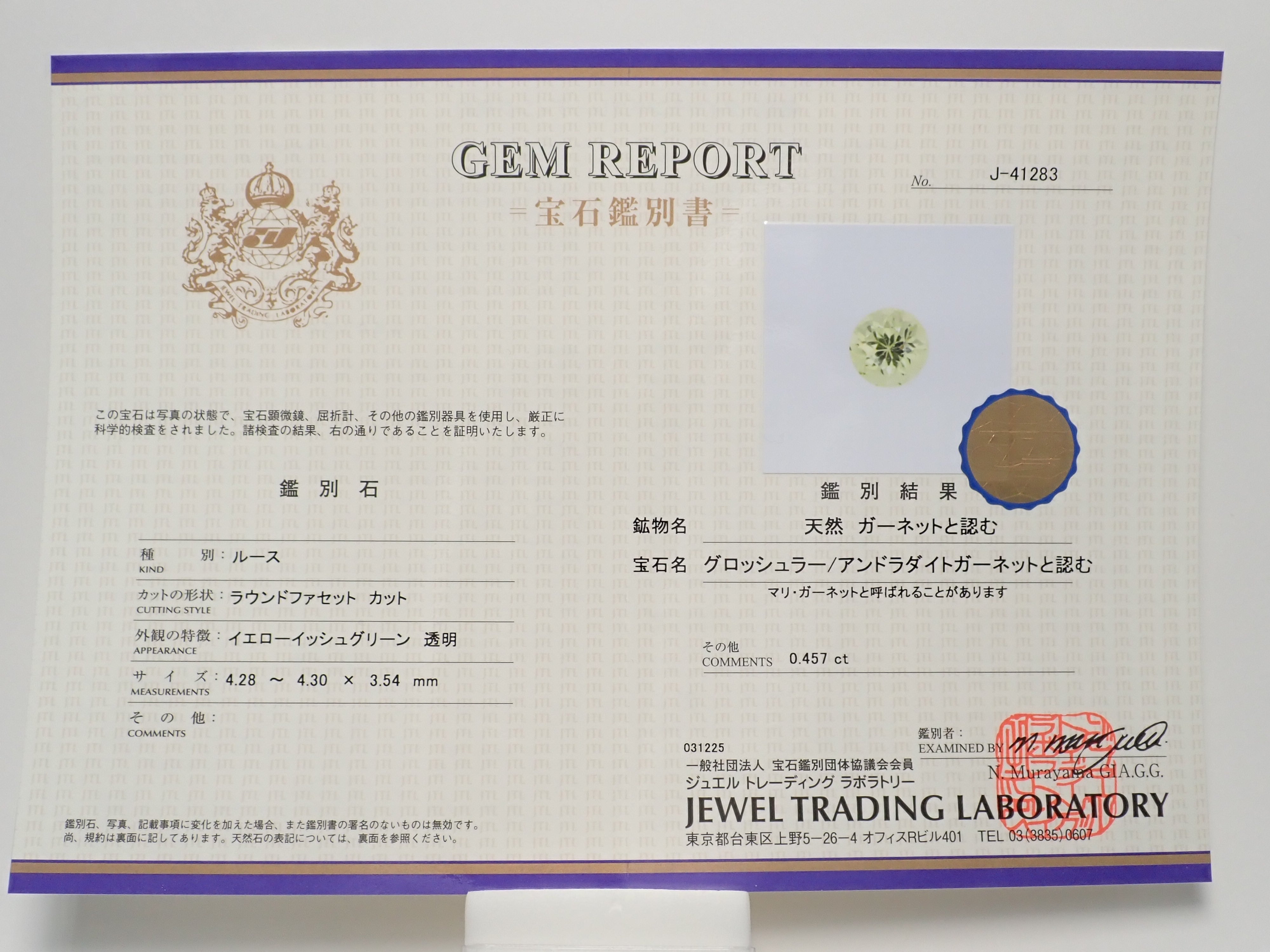 馬裡石榴石(鈣鋁榴石/鈣鐵榴石)4.2毫米/0.457克拉散石,附真品證書