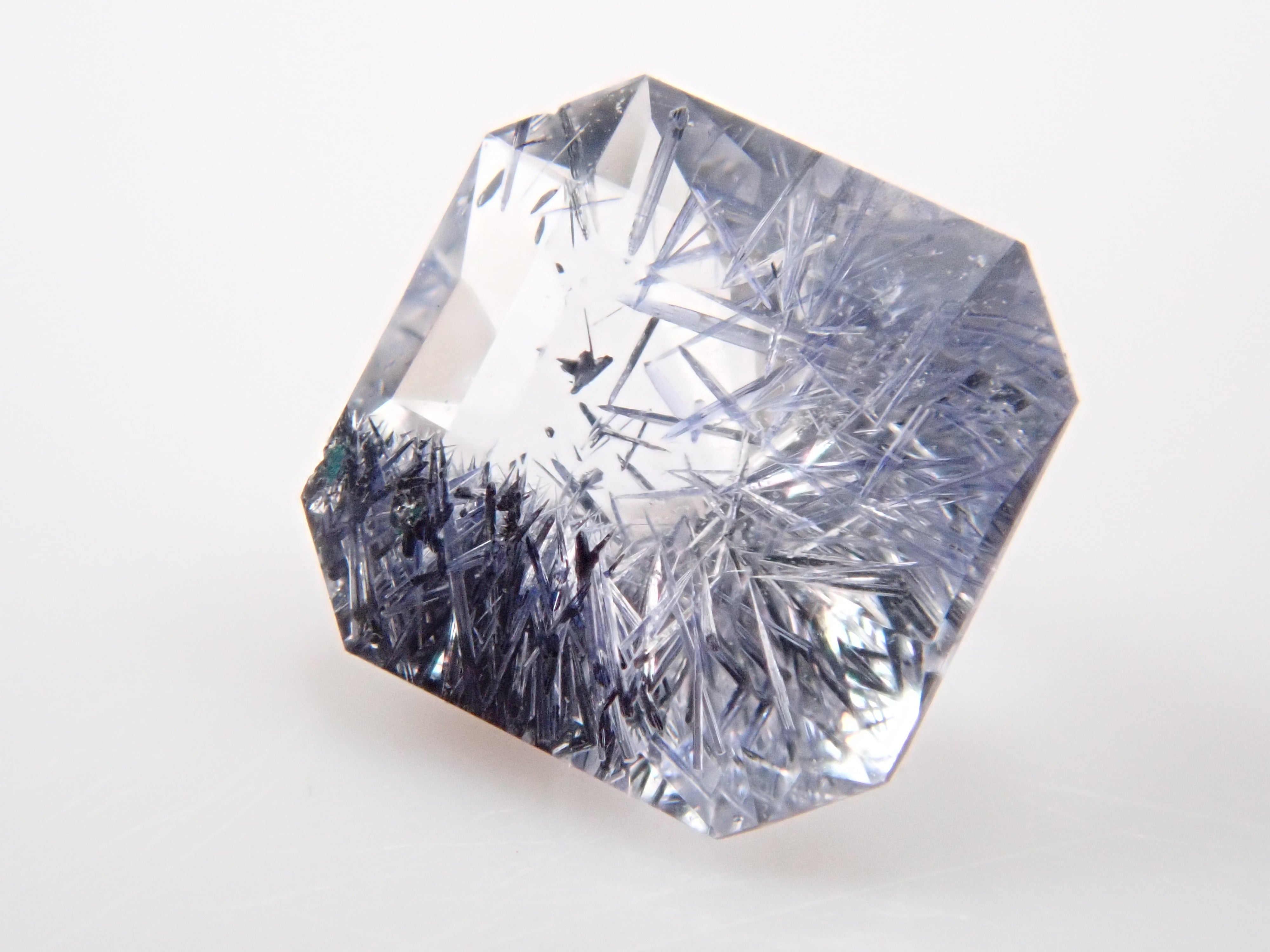 石英,日文稱為“suisho”,是日本常見的寶石,但它也是一種色澤深邃的寶石,種類繁多,包括紫水晶和黃水晶。這款藍線石是石英中的藍線石,擁有美麗的藍色內含物。其他寶石中沒有一種擁有相同的紋路,因此它成為收藏家們的心頭好。