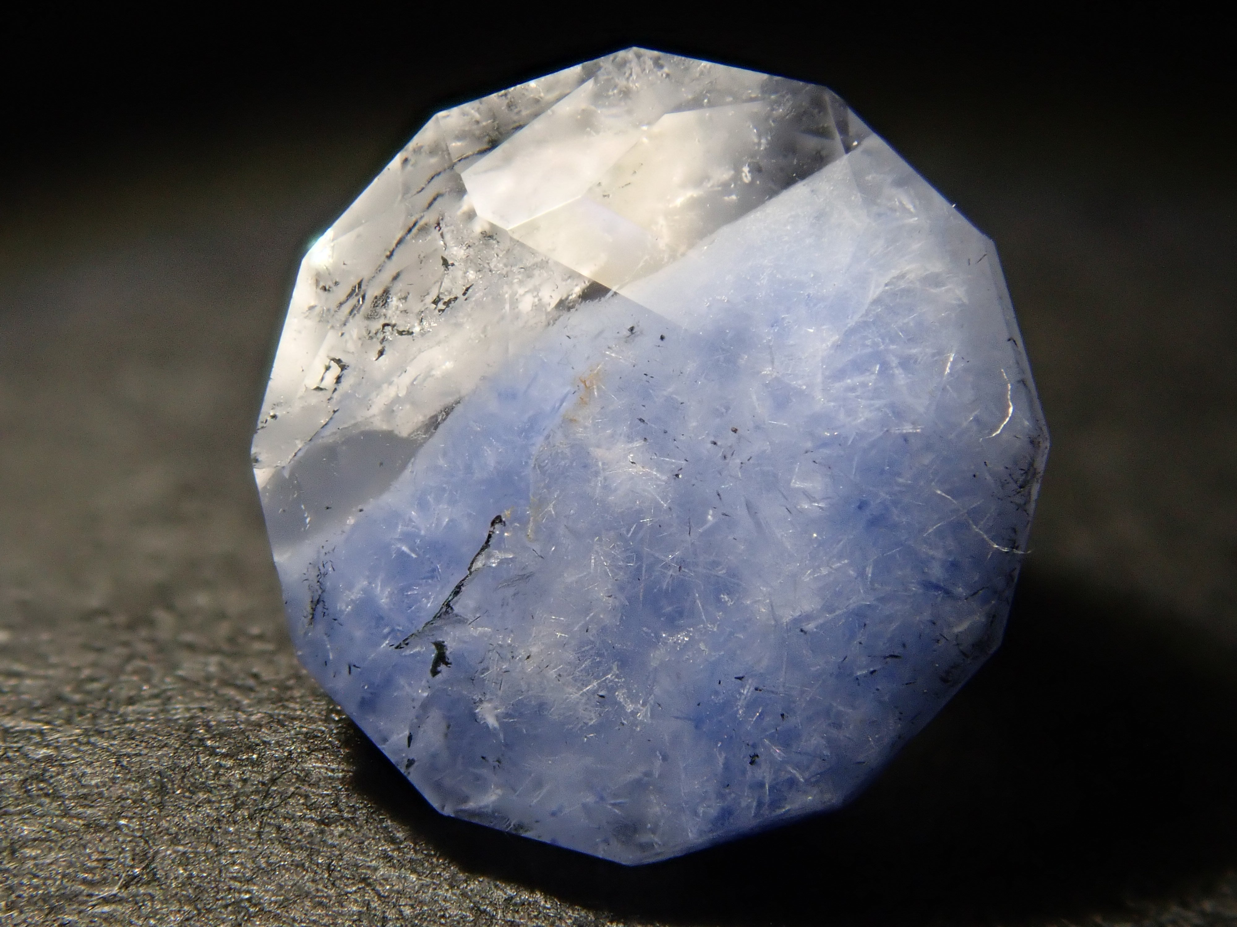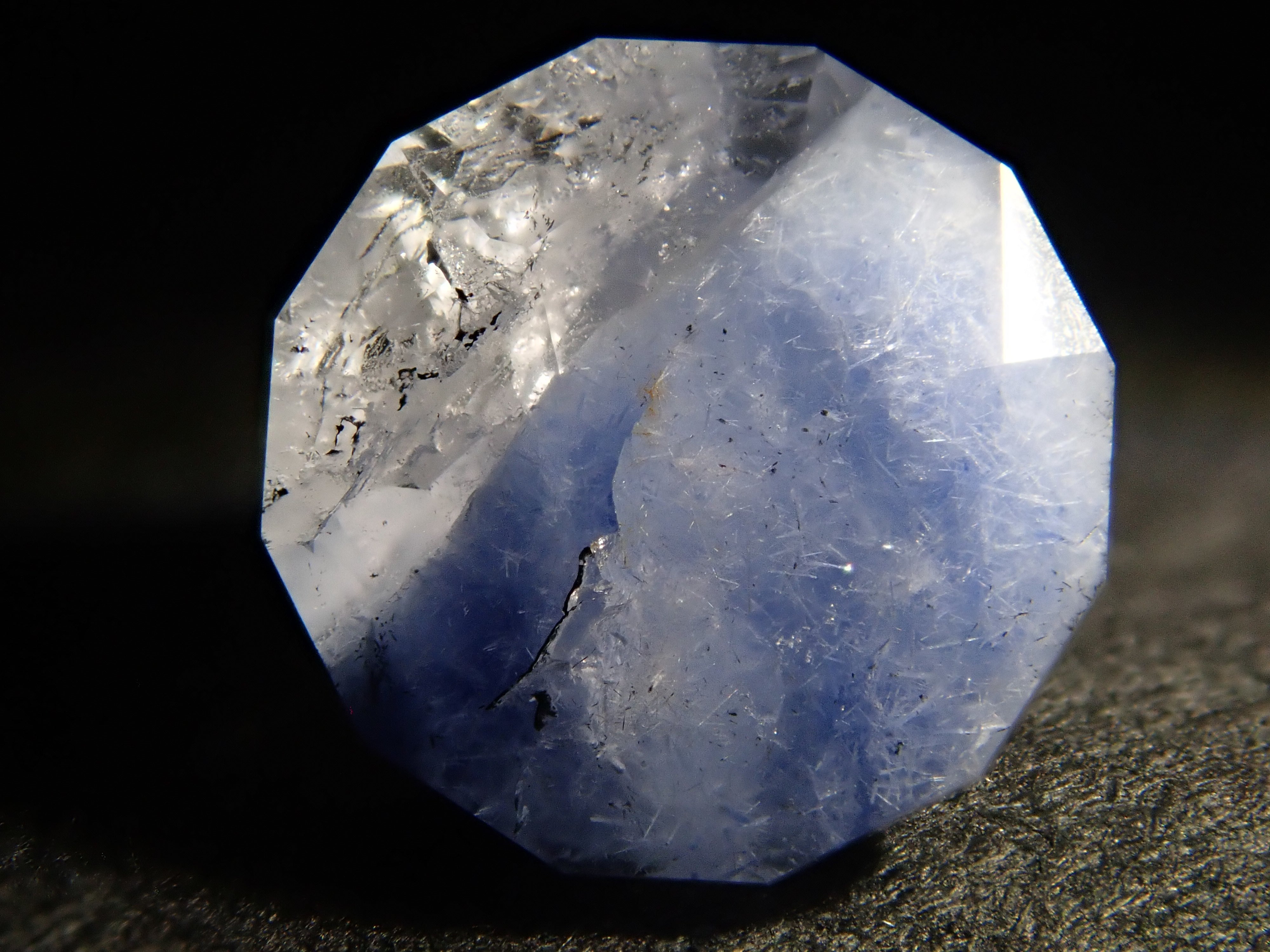 石英,日文稱為“suisho”,是日本常見的寶石,但它也是一種色澤深邃的寶石,種類繁多,包括紫水晶和黃水晶。這款藍線石是石英中的藍線石,擁有美麗的藍色內含物。其他寶石中沒有一種擁有相同的紋路,因此它成為收藏家們的心頭好。