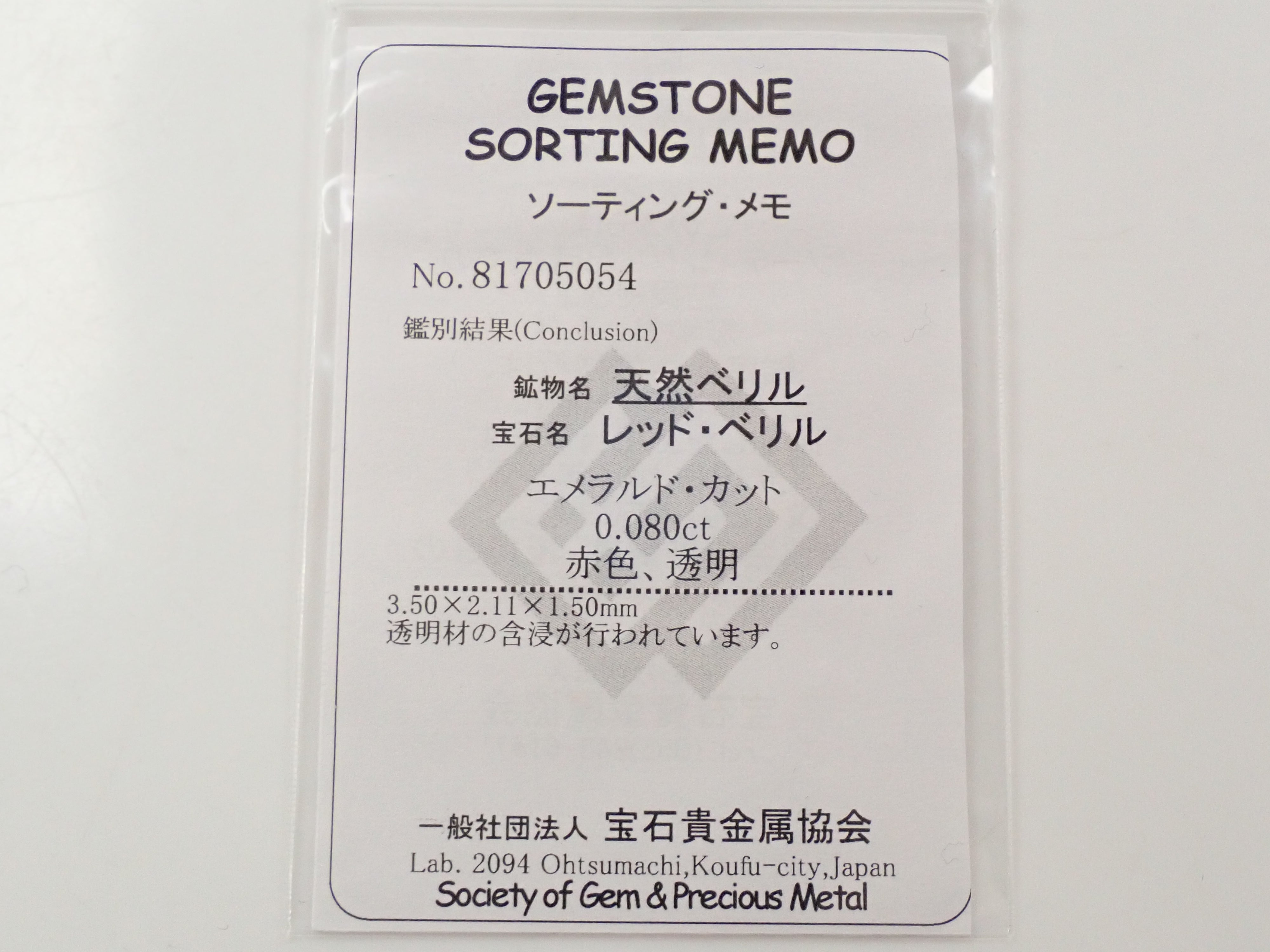 ・形狀:祖母綠切割 ・刮痕/缺口:S