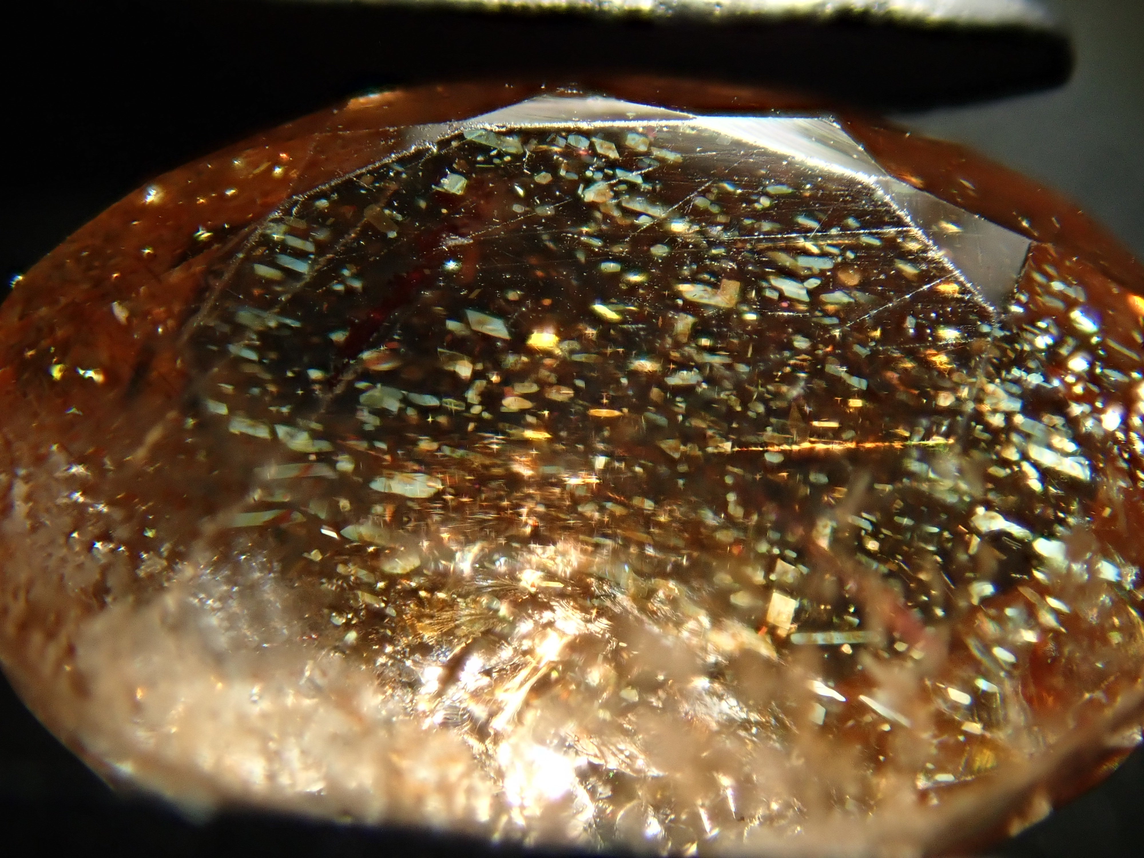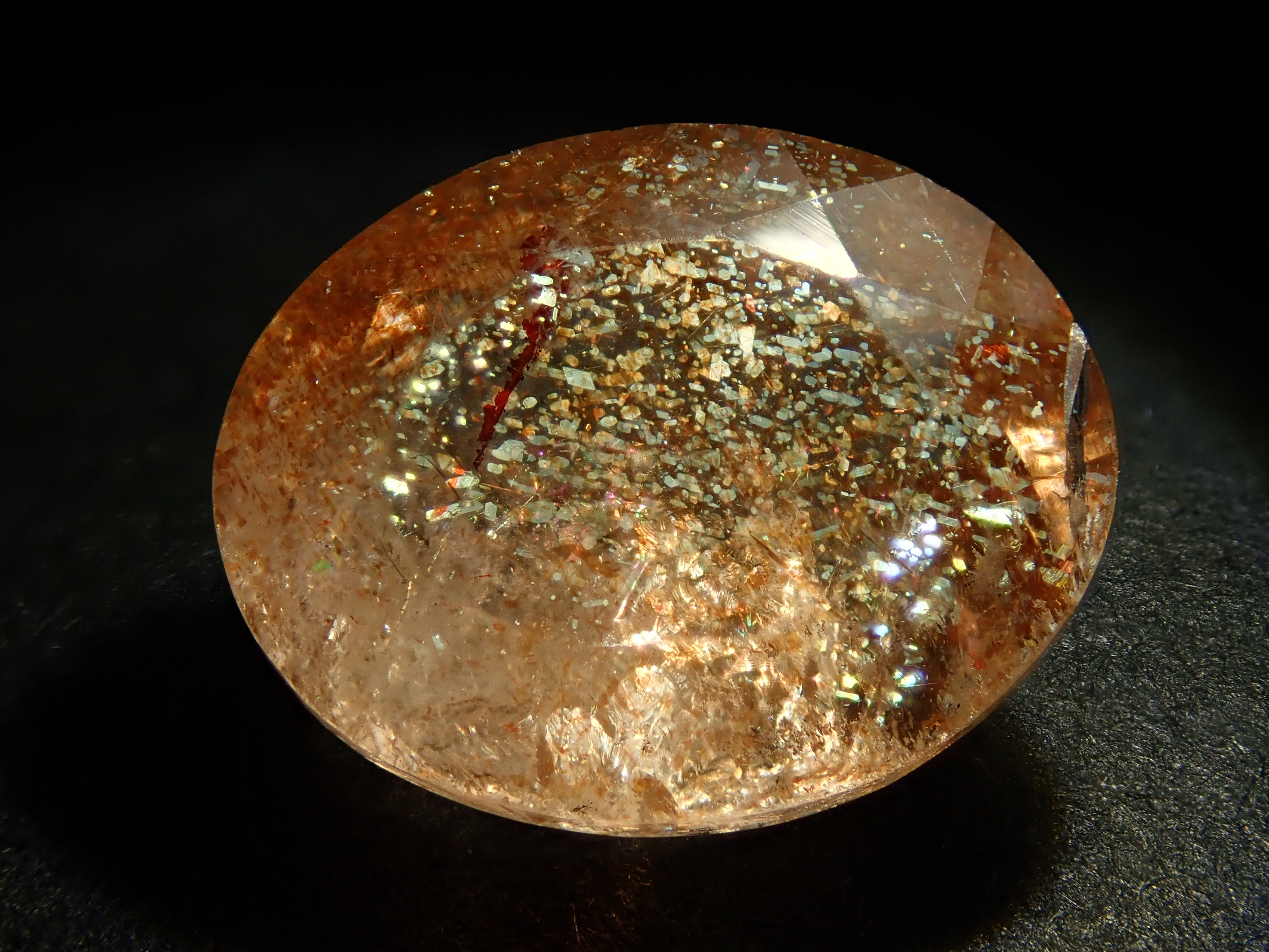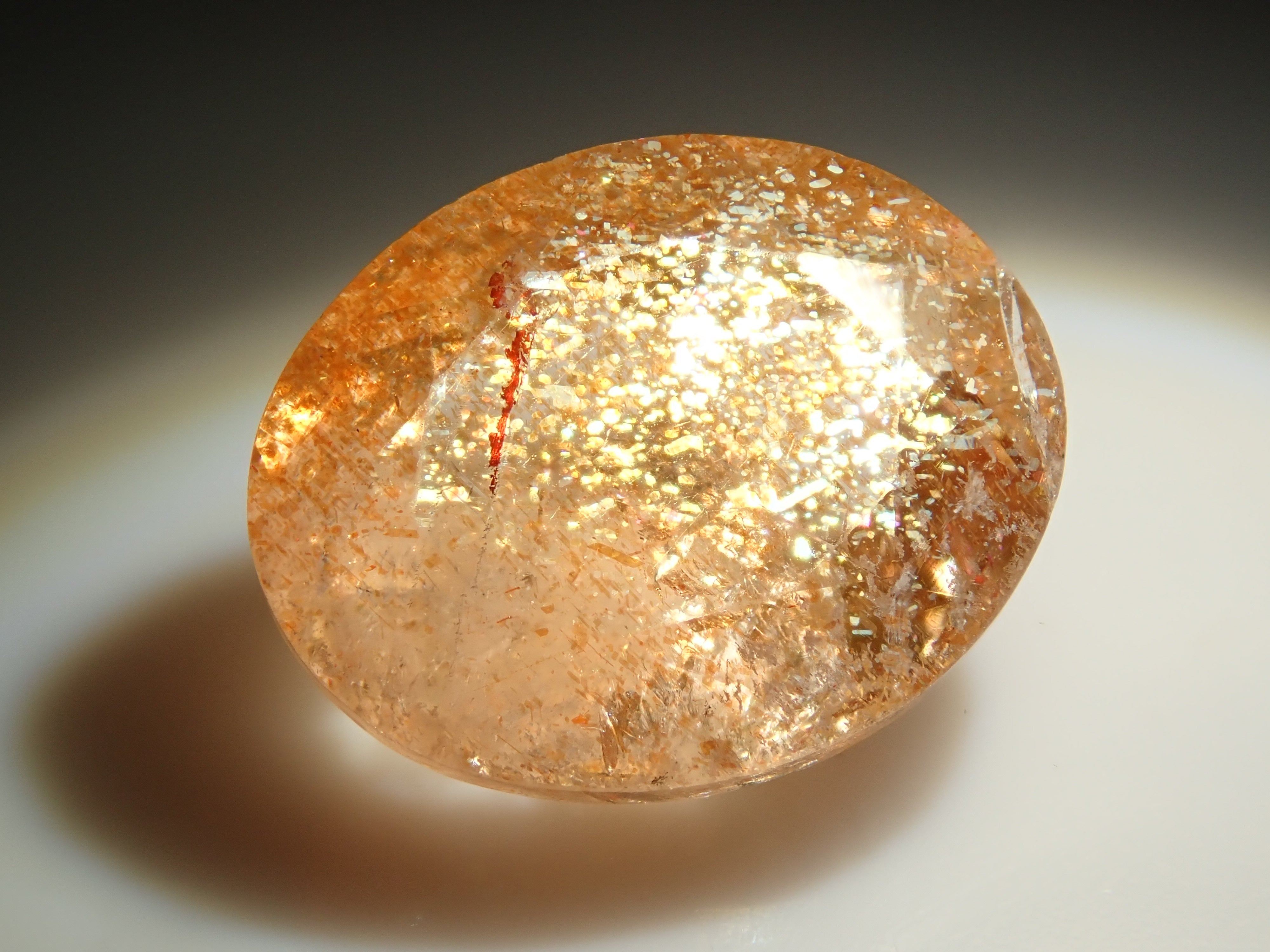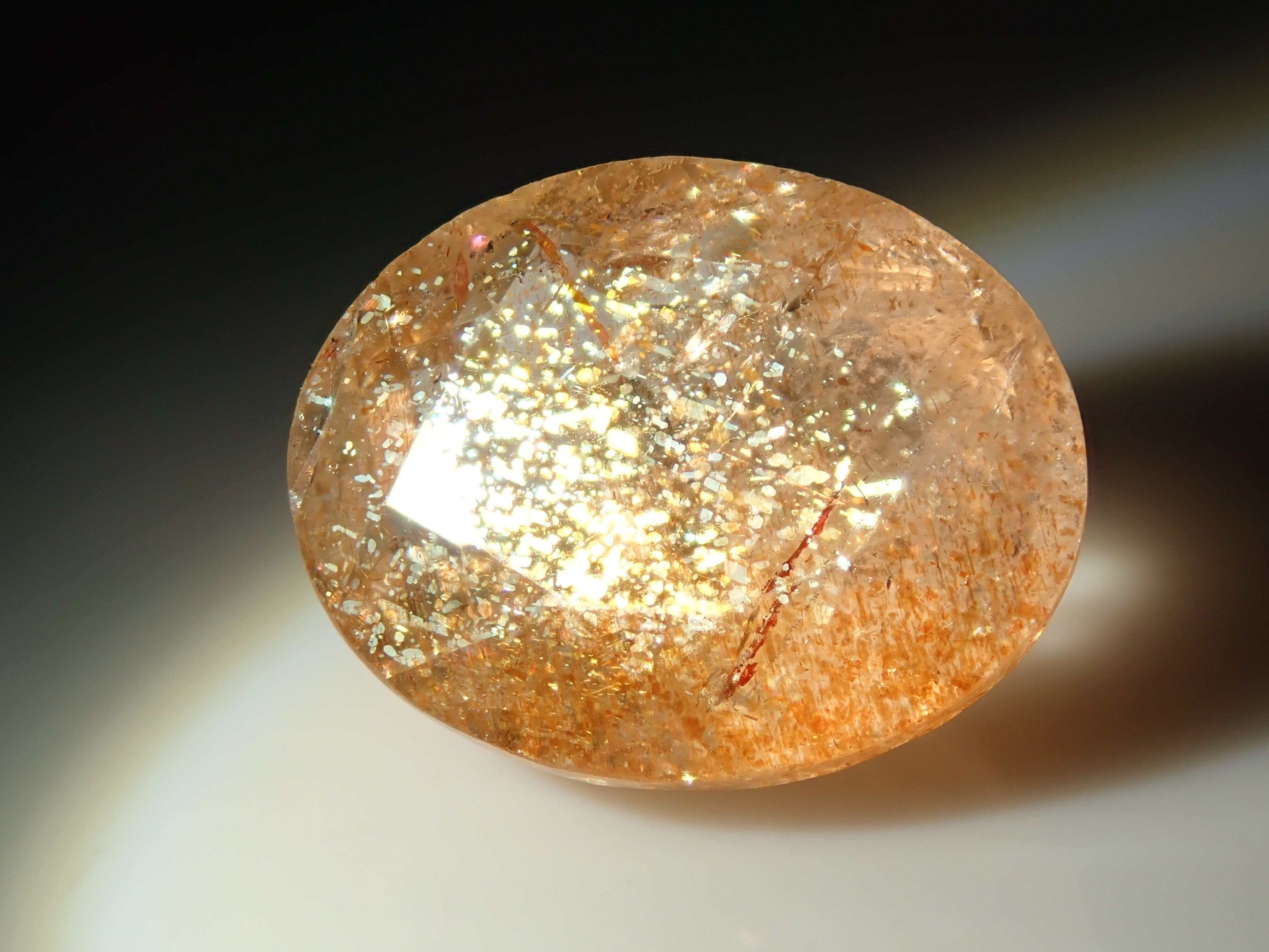 日光石散發著耀眼的光芒,美不勝收。它的光芒宛如盛夏的陽光。我想分享一下給這塊石頭取名「日光石」的人的感受。它也被稱為幻覺日光石。