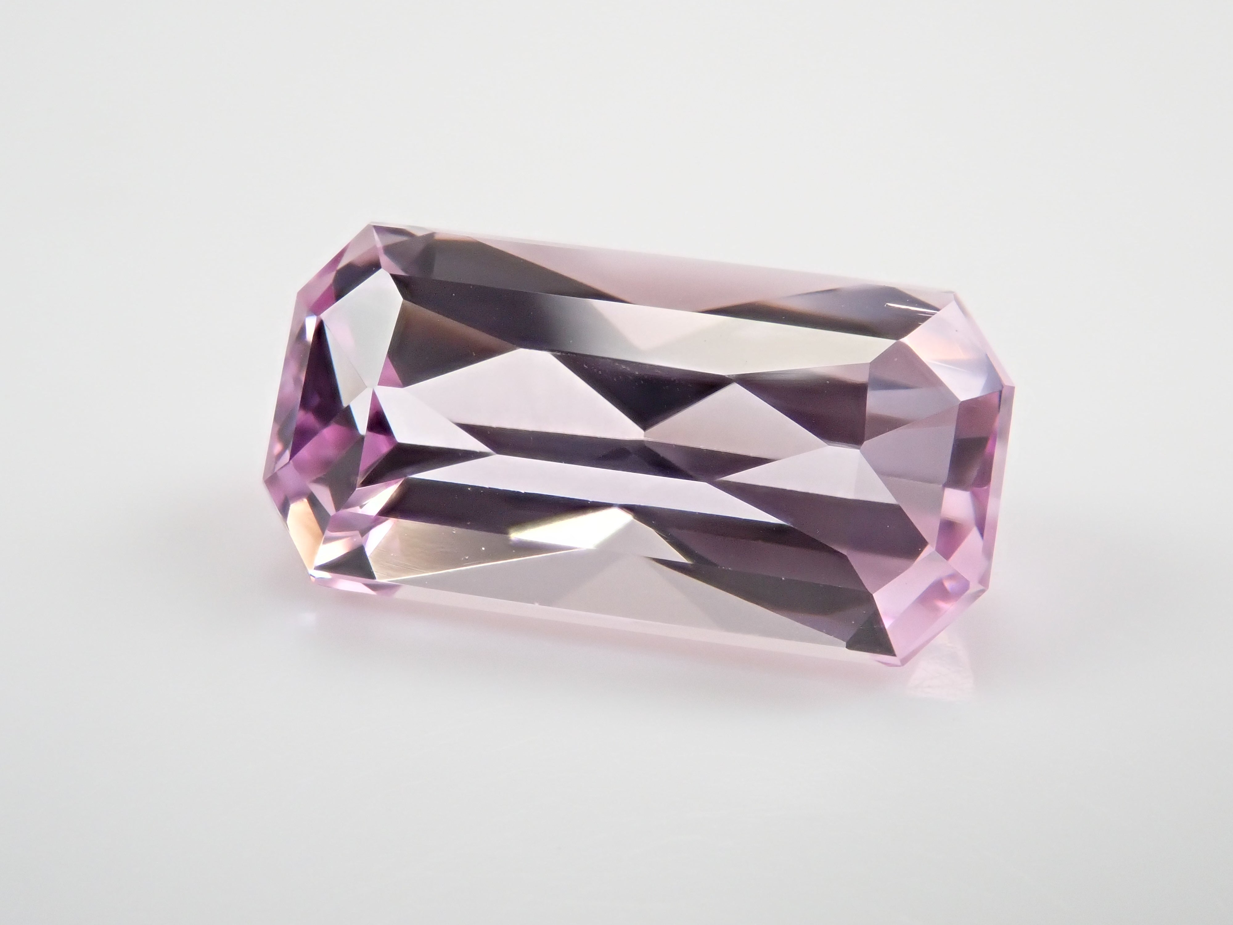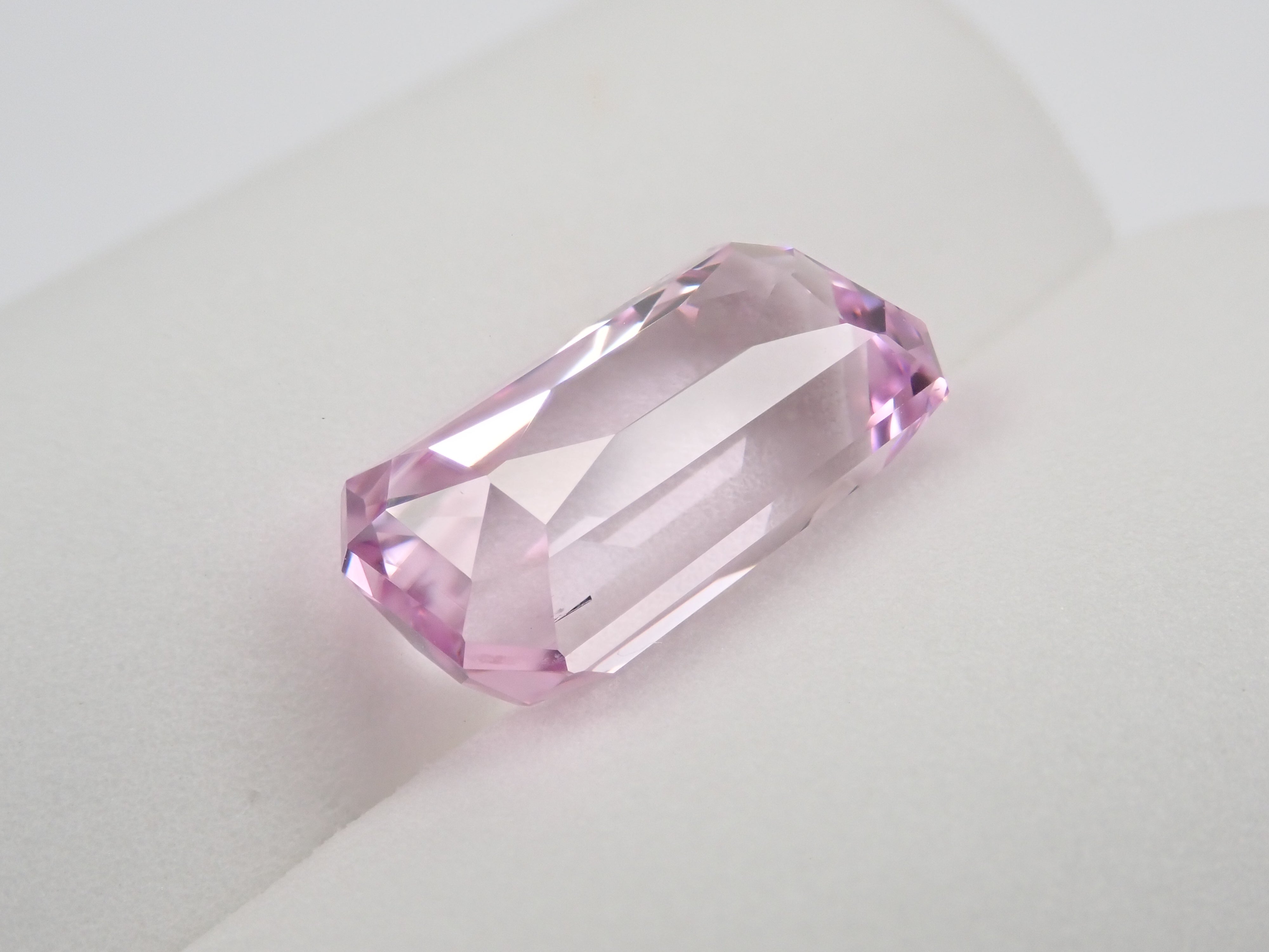 孔賽石呈現美麗的淡紫色,以至於許多人說:「說到粉紅色,就會想到孔賽石。」孔賽石也是一種多向色性寶石,因此隨著角度的變化,您可以欣賞到不同的色調。它具有“磷光”特性,即使在黑暗的房間裡也能閃耀光芒,也被稱為“夜晚的寶石”,因為它與晚會和晚禮服相得益彰。這顆孔賽石是由斯里蘭卡拋光師桑傑拋光的。