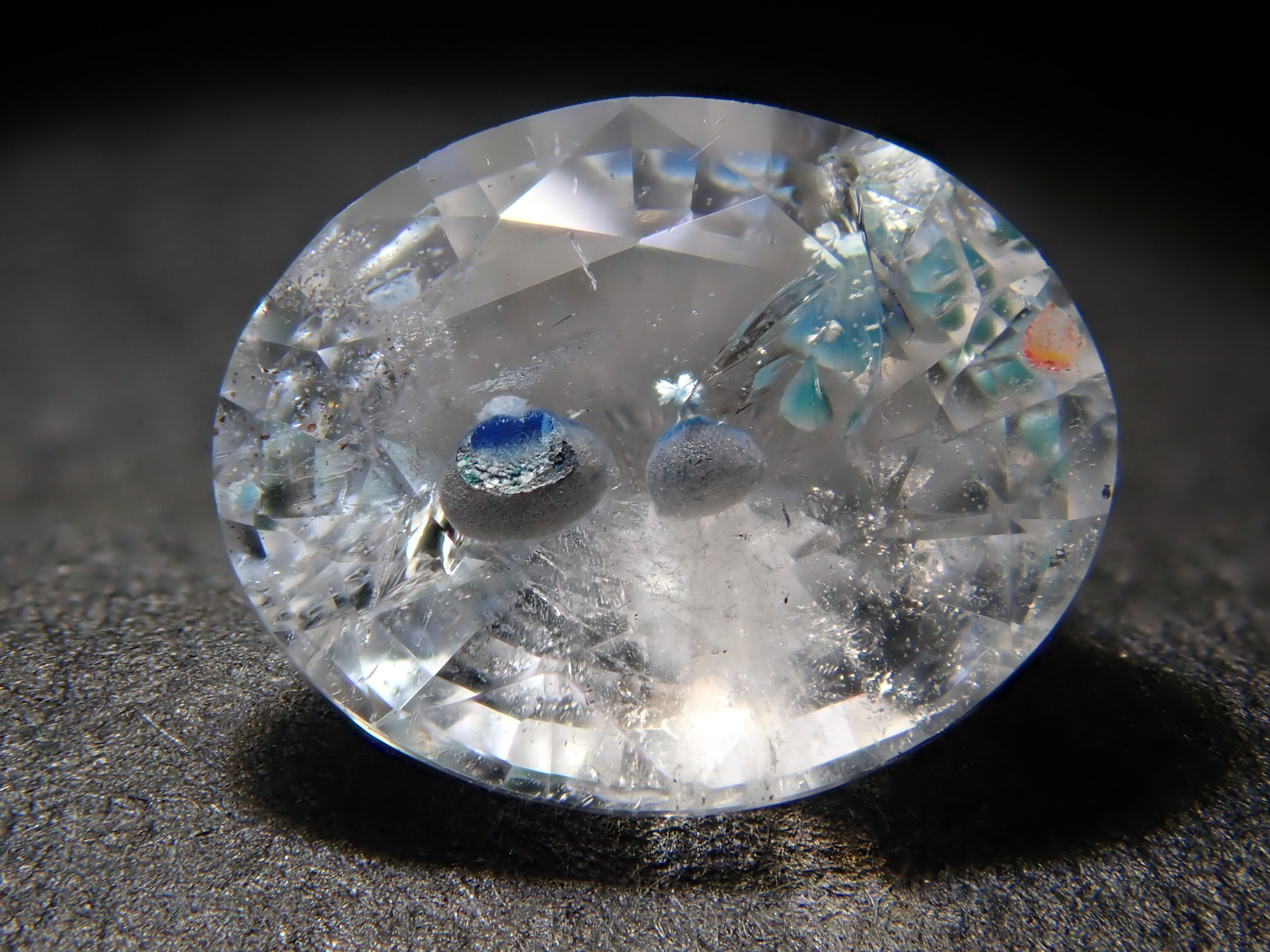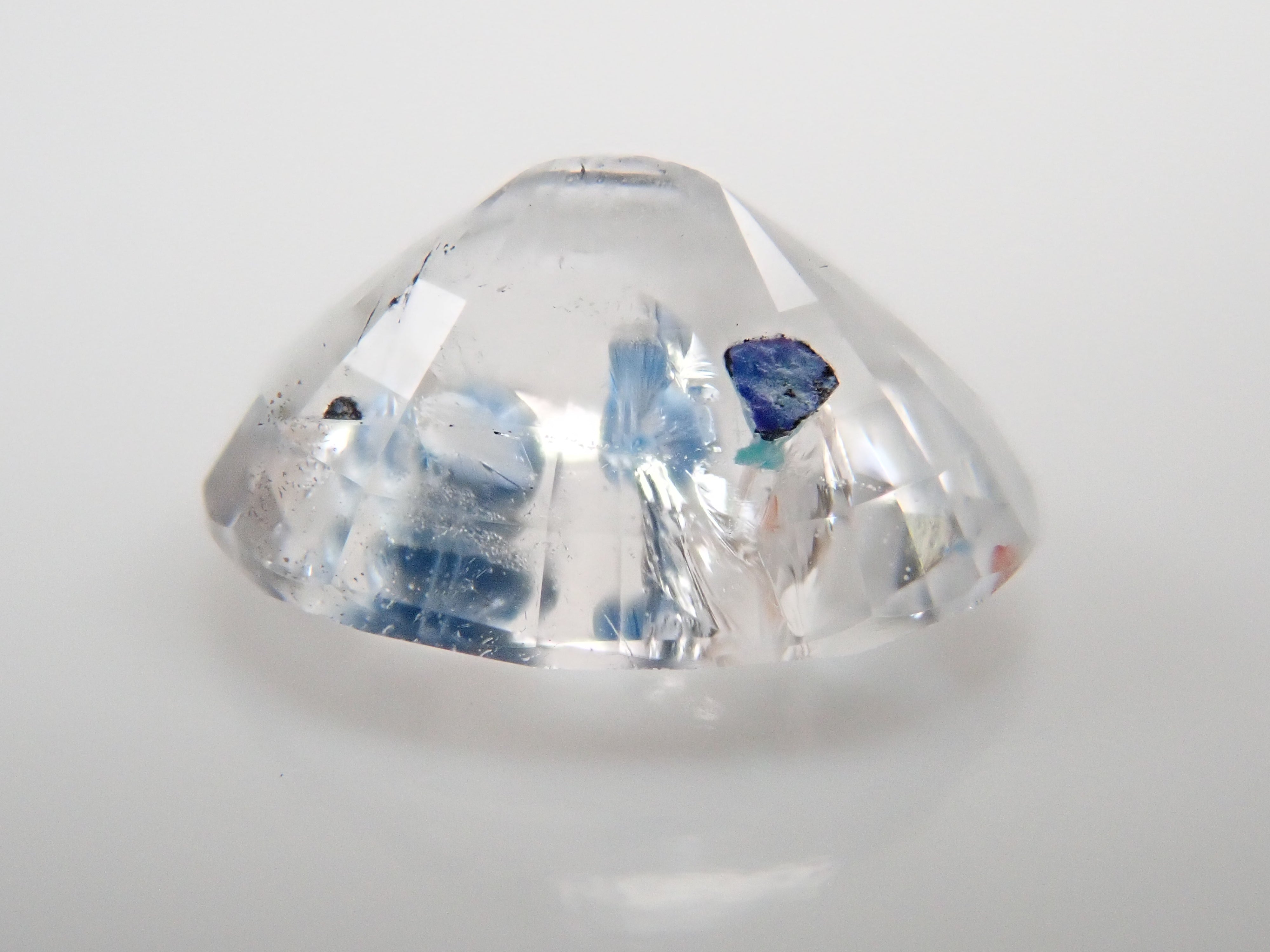 美杜莎石英的晶體內部含有礦物「giralite」(一種水母)的包裹體。它有時被稱為“giralite-in-quartz”(石英內含giralite),但GIA將其命名為“美杜莎石英”,因為其包裹體形似一種名為“美杜莎水母”的水母。它還有幾個暱稱,例如“帕拉伊巴石英”,因為它美麗的藍色讓人聯想到帕拉伊巴碧璽,也因為它產自巴西帕拉伊巴碧璽的產地。盡情欣賞這顆寶石內部展現的神秘而美麗的世界吧。