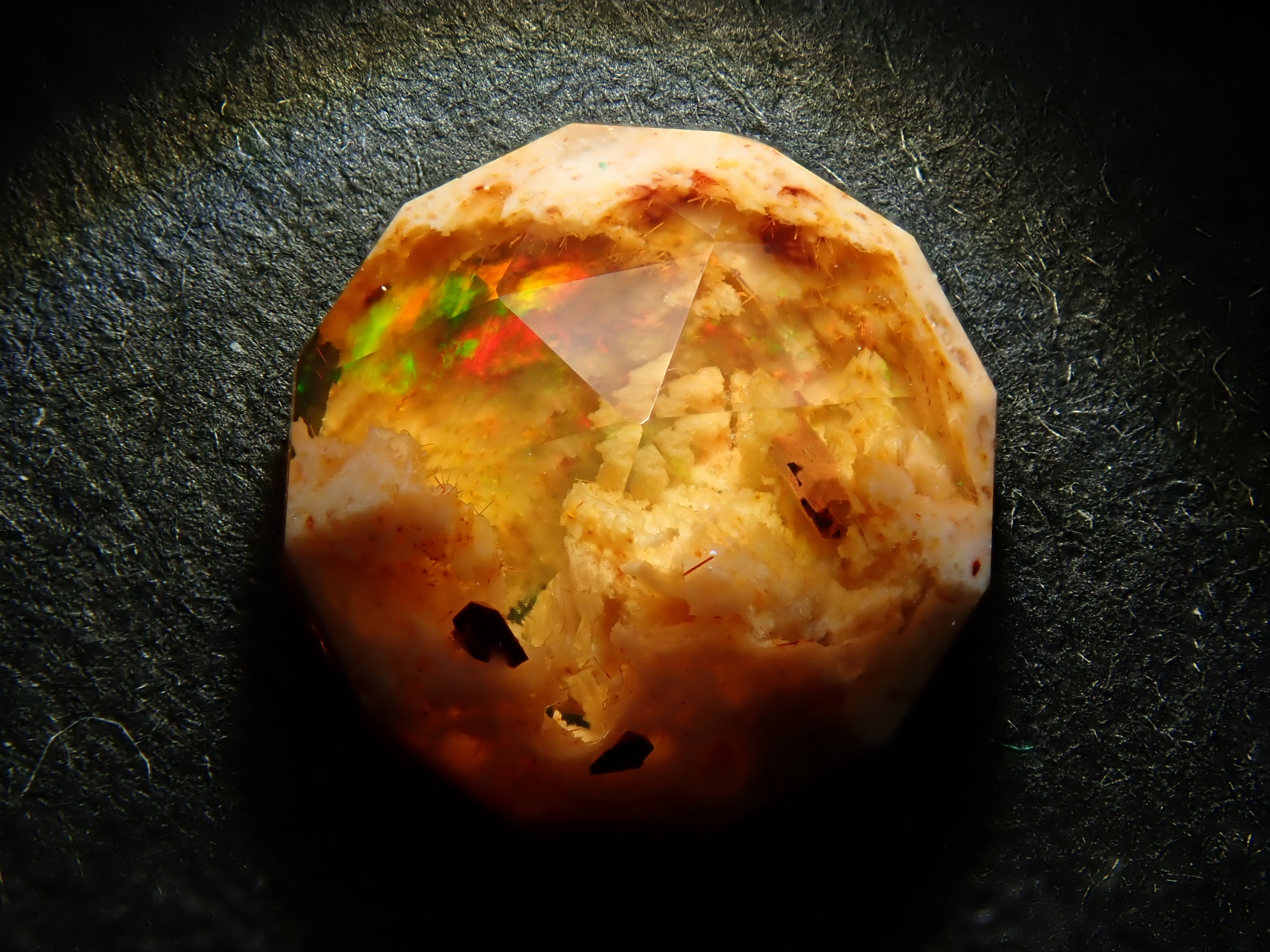 這是一顆多面散石,對於坎德拉蛋白石來說非常罕見。
