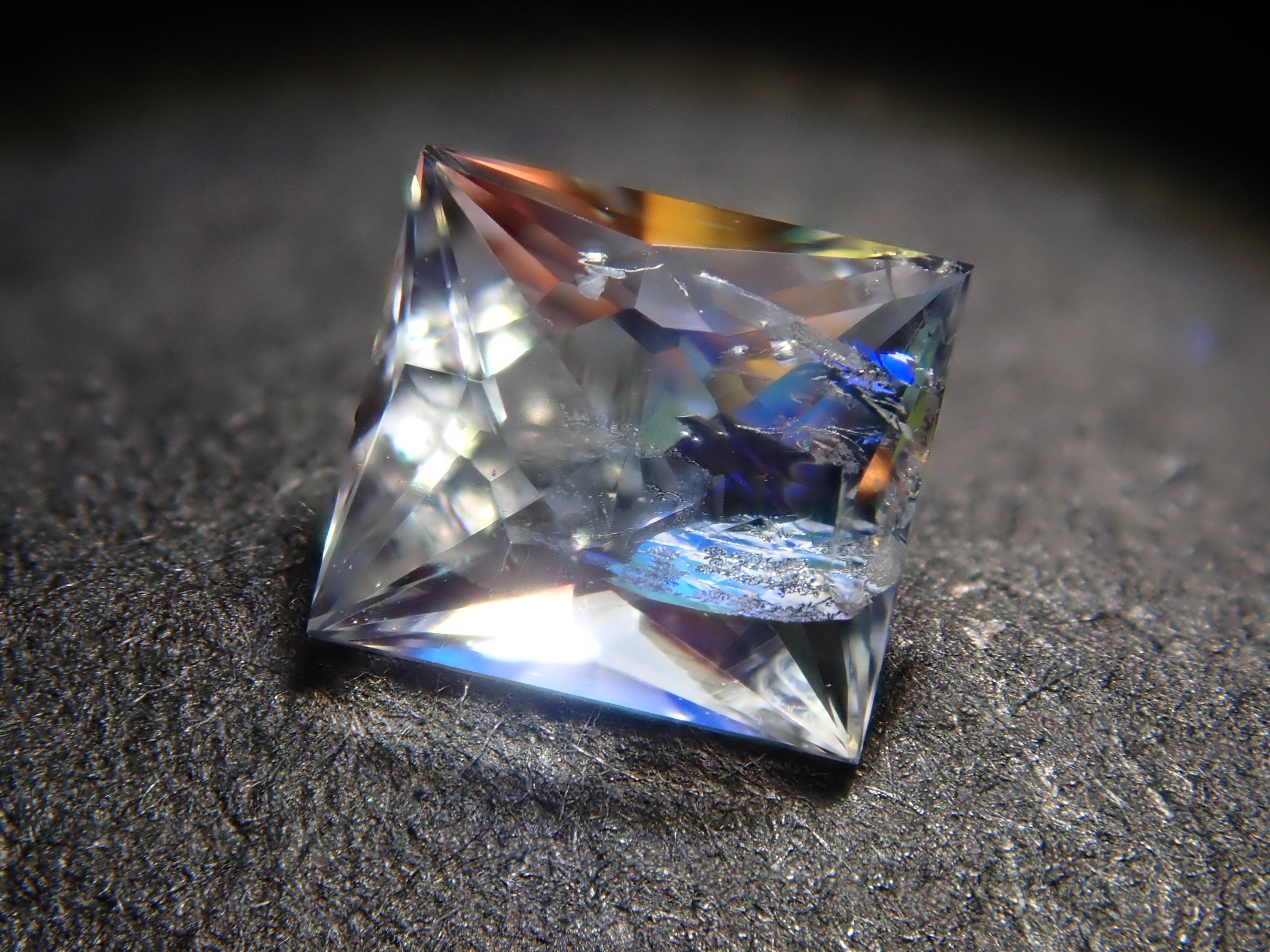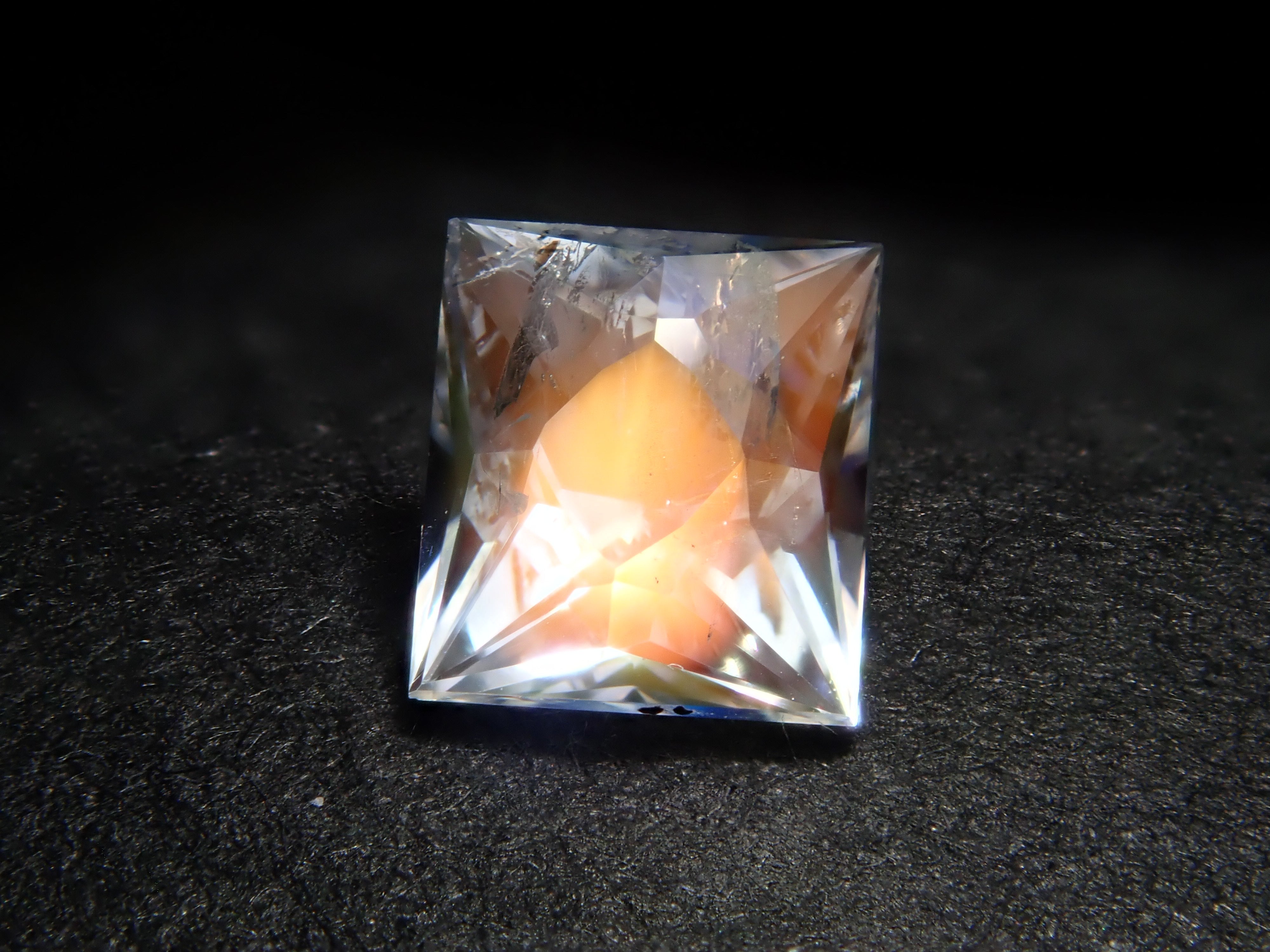 這顆寶石位於中長石和拉長石之間,它們同屬斜長石組。彩虹般的光學效果散發著神秘的光芒,讓人忍不住想永遠凝視它。這是一顆產自馬達加斯加的中長石,由斯里蘭卡切割大師桑傑切割而成。