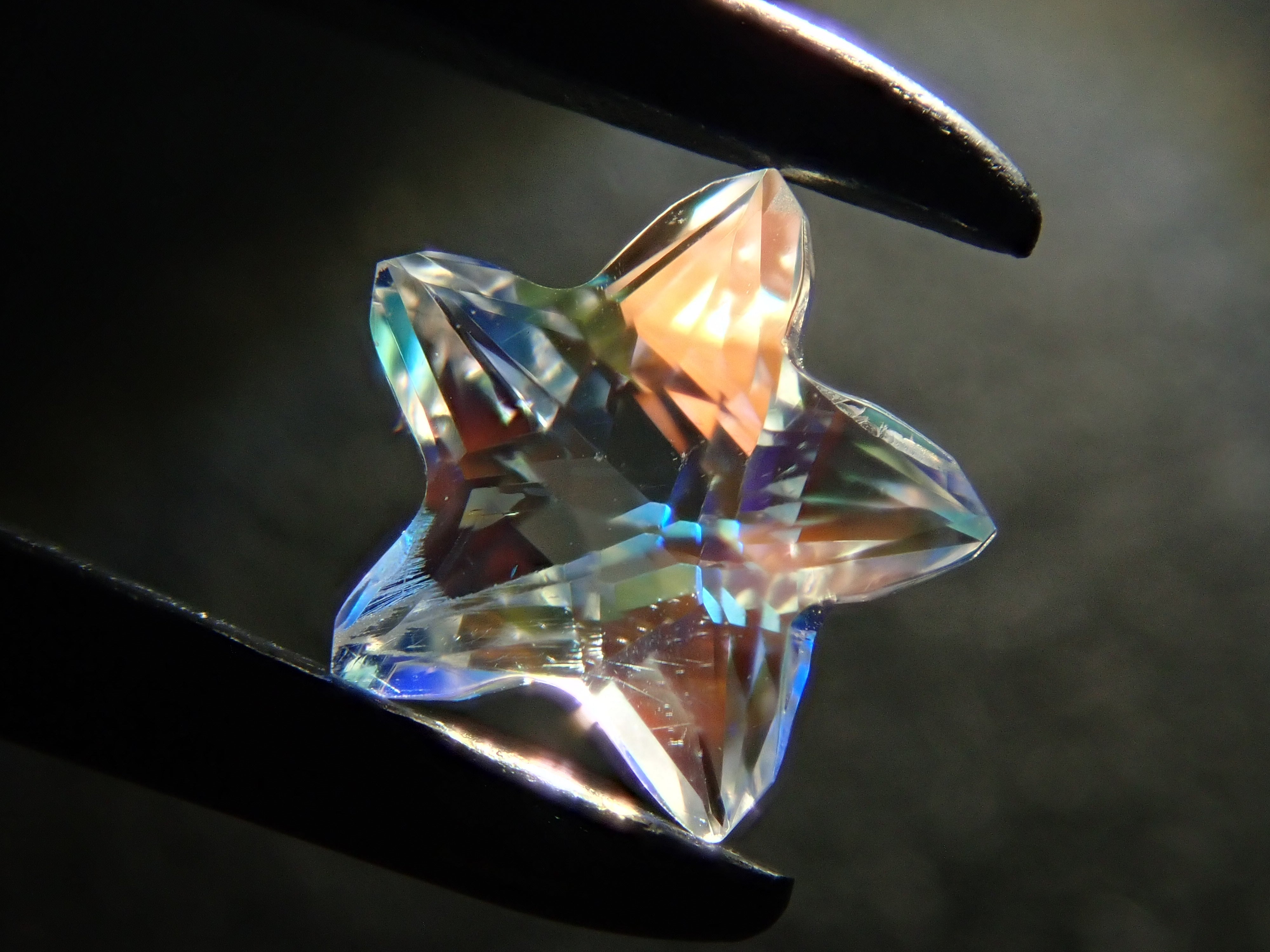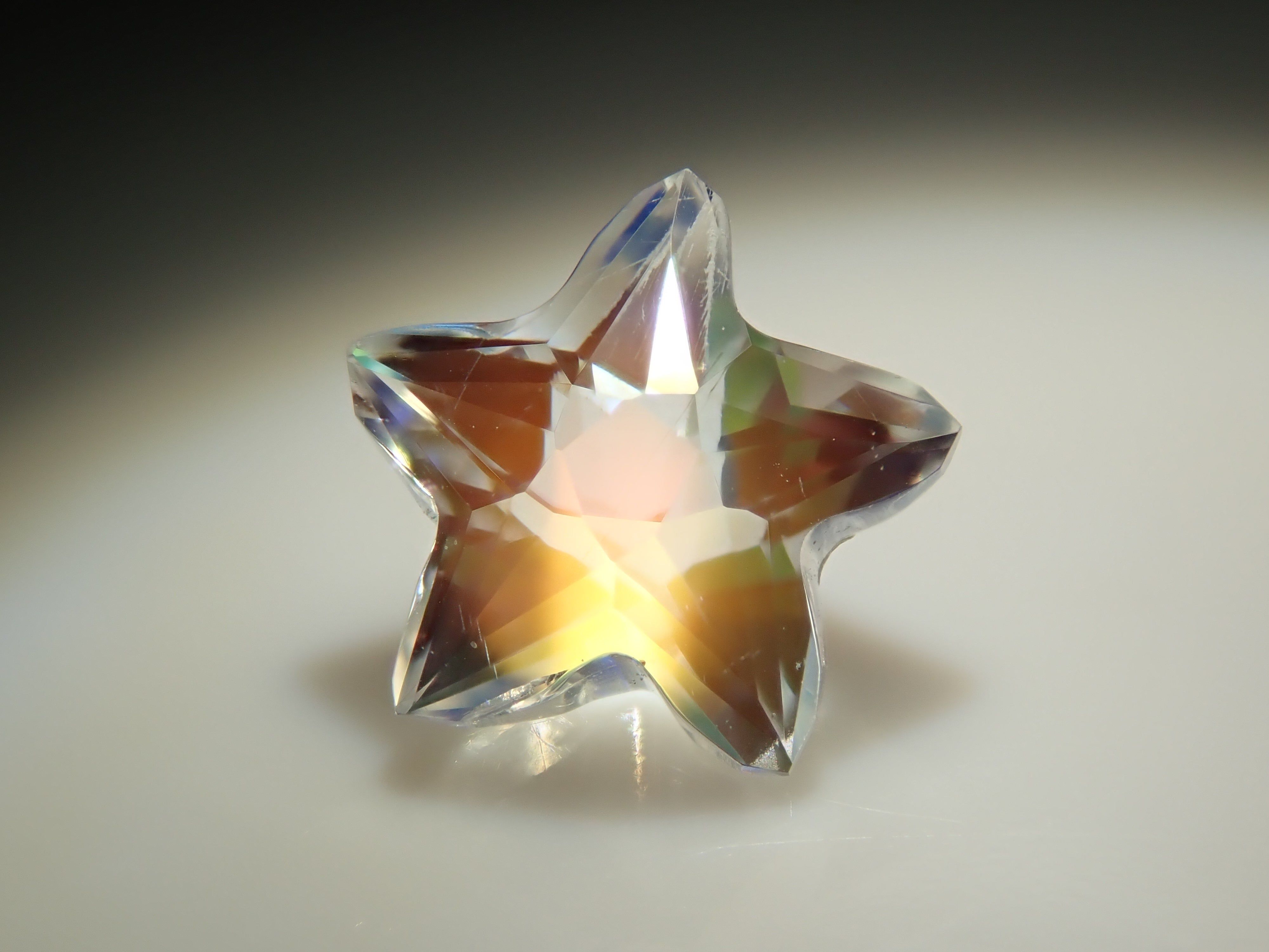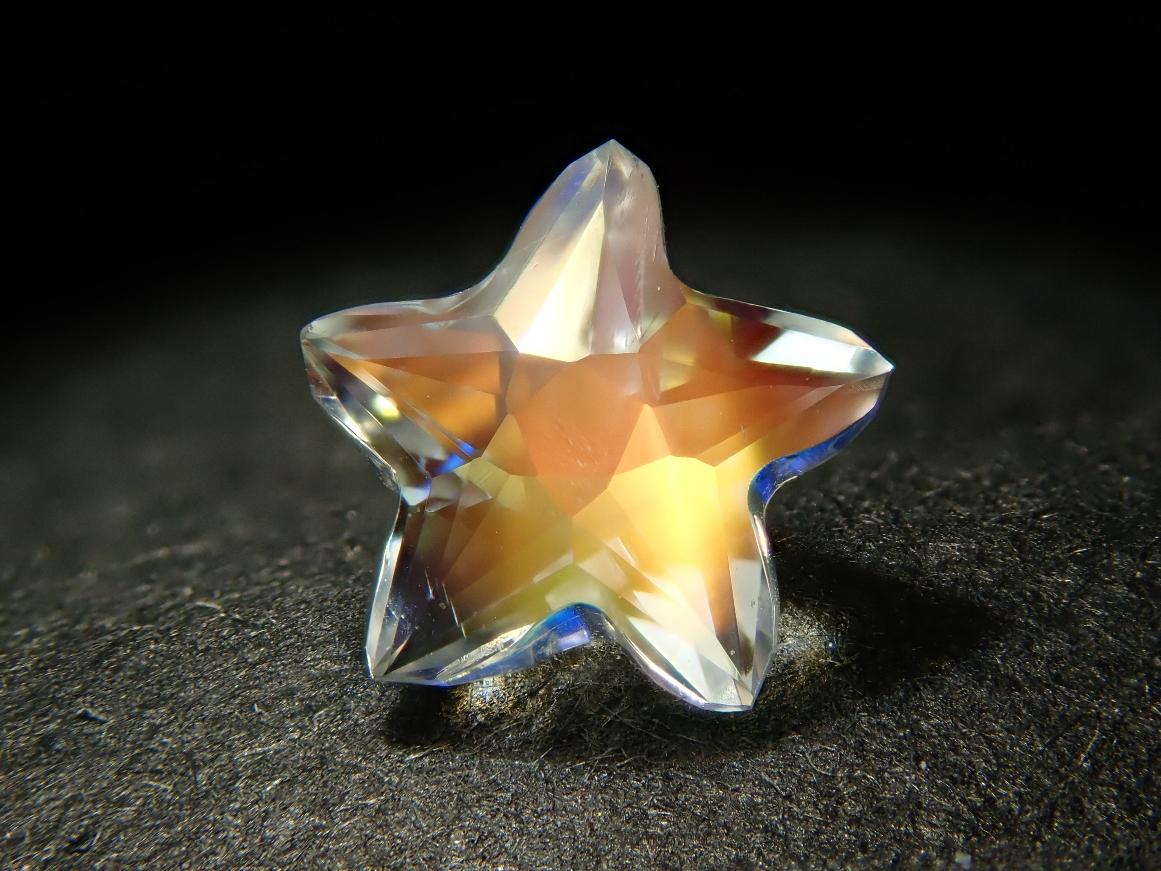 這顆寶石位於中長石和拉長石之間,它們同屬斜長石組。彩虹般的光學效果散發著神秘的光芒,讓人忍不住想永遠凝視它。這是一顆產自馬達加斯加的星形切割中長石拉長石,由一位斯里蘭卡切割師打磨而成。