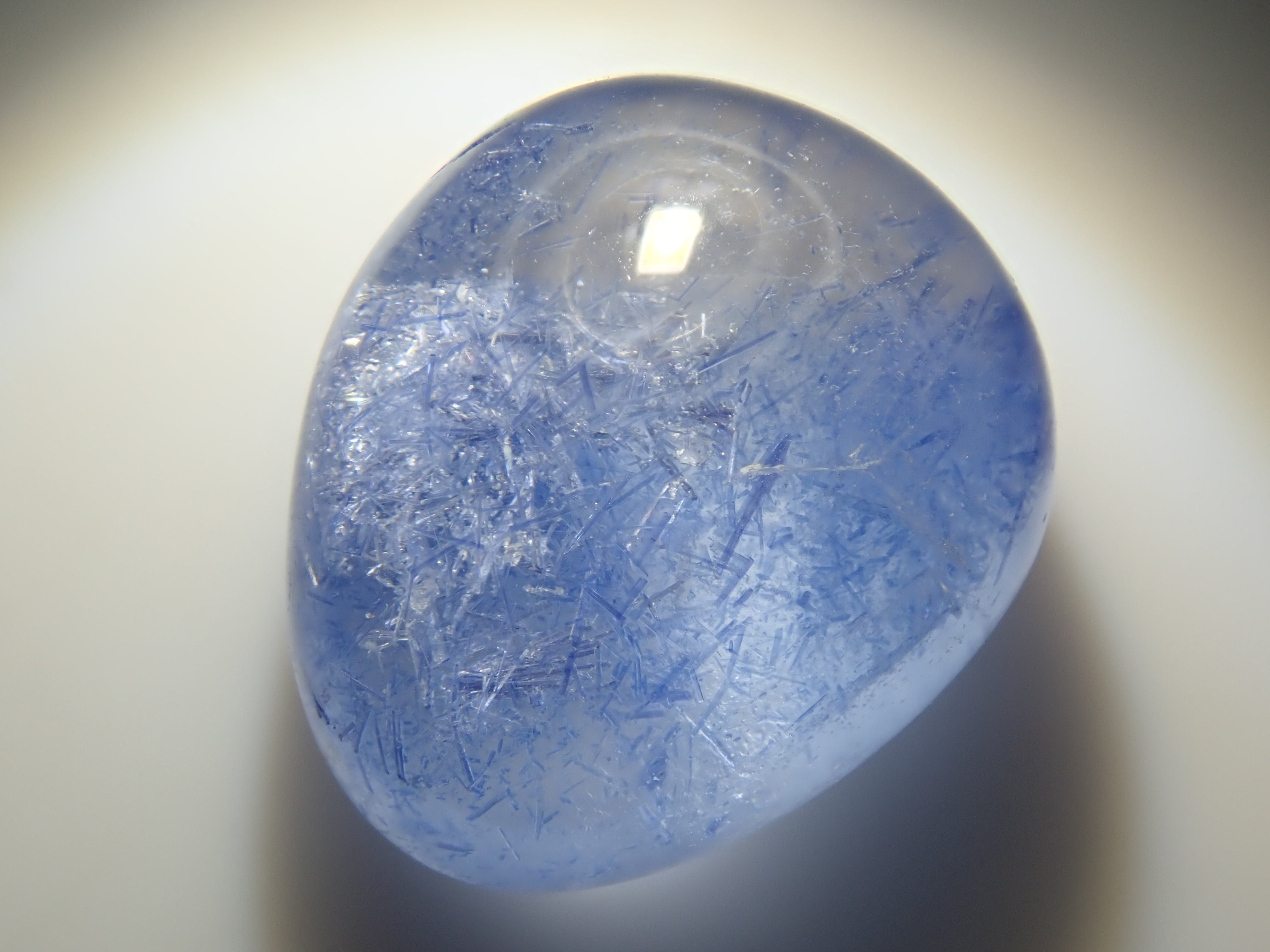 石英,日文稱為“suisho”,是日本常見的寶石,但它也是一種色澤深邃的寶石,種類繁多,包括紫水晶和黃水晶。這款藍線石是石英中的藍線石,擁有美麗的藍色內含物。其他寶石中沒有一種擁有相同的紋路,因此它成為收藏家們的心頭好。