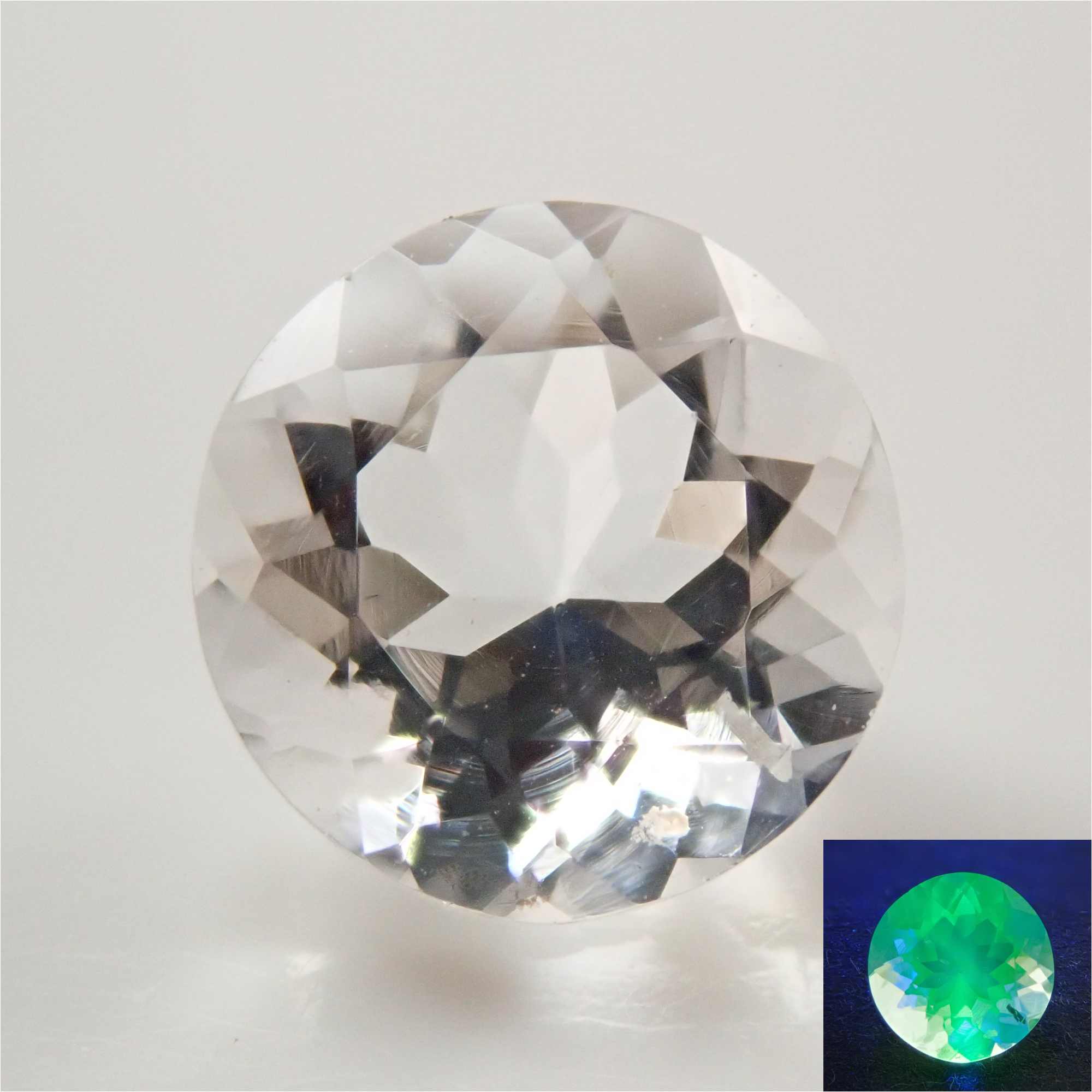 透明蛋白石在黑光下會發出薄荷綠的螢光。它是一種稀有寶石。顧名思義,它在礦物學上屬於蛋白石家族,但沒有變色現象。請使用黑光燈欣賞螢光。