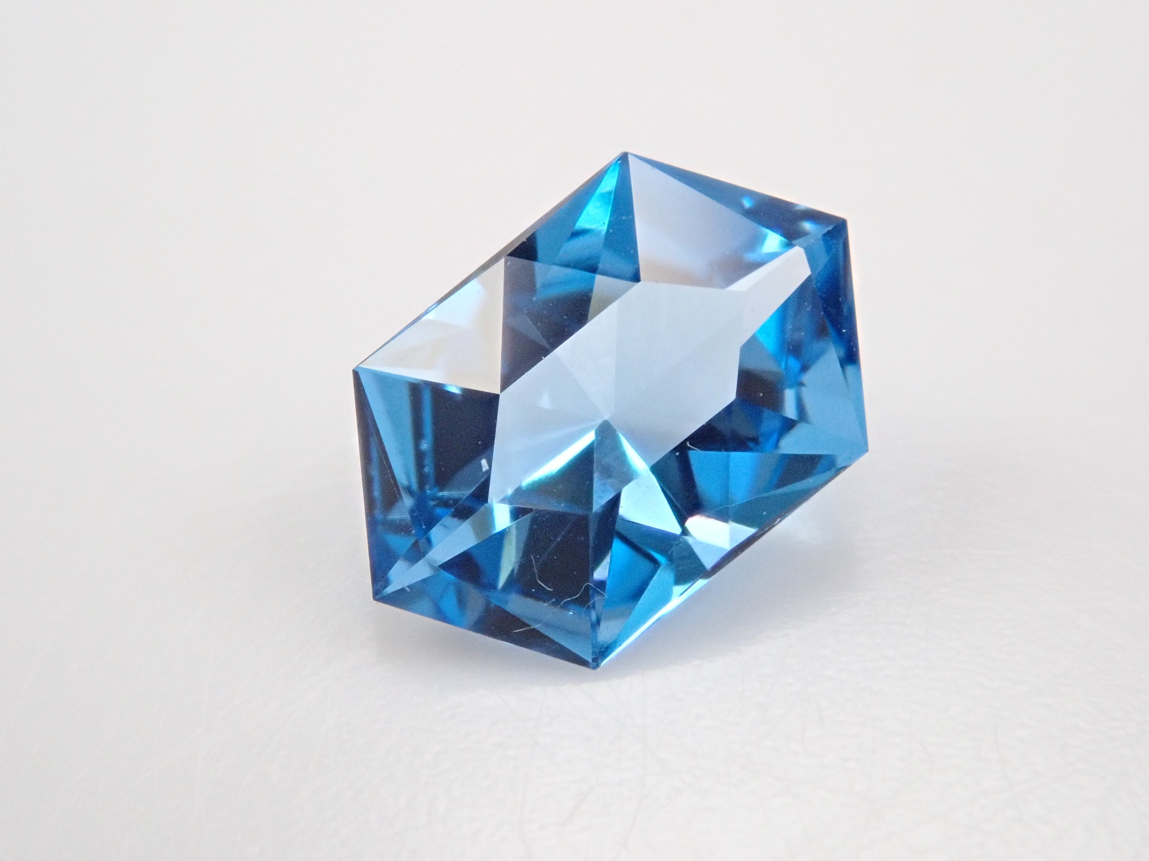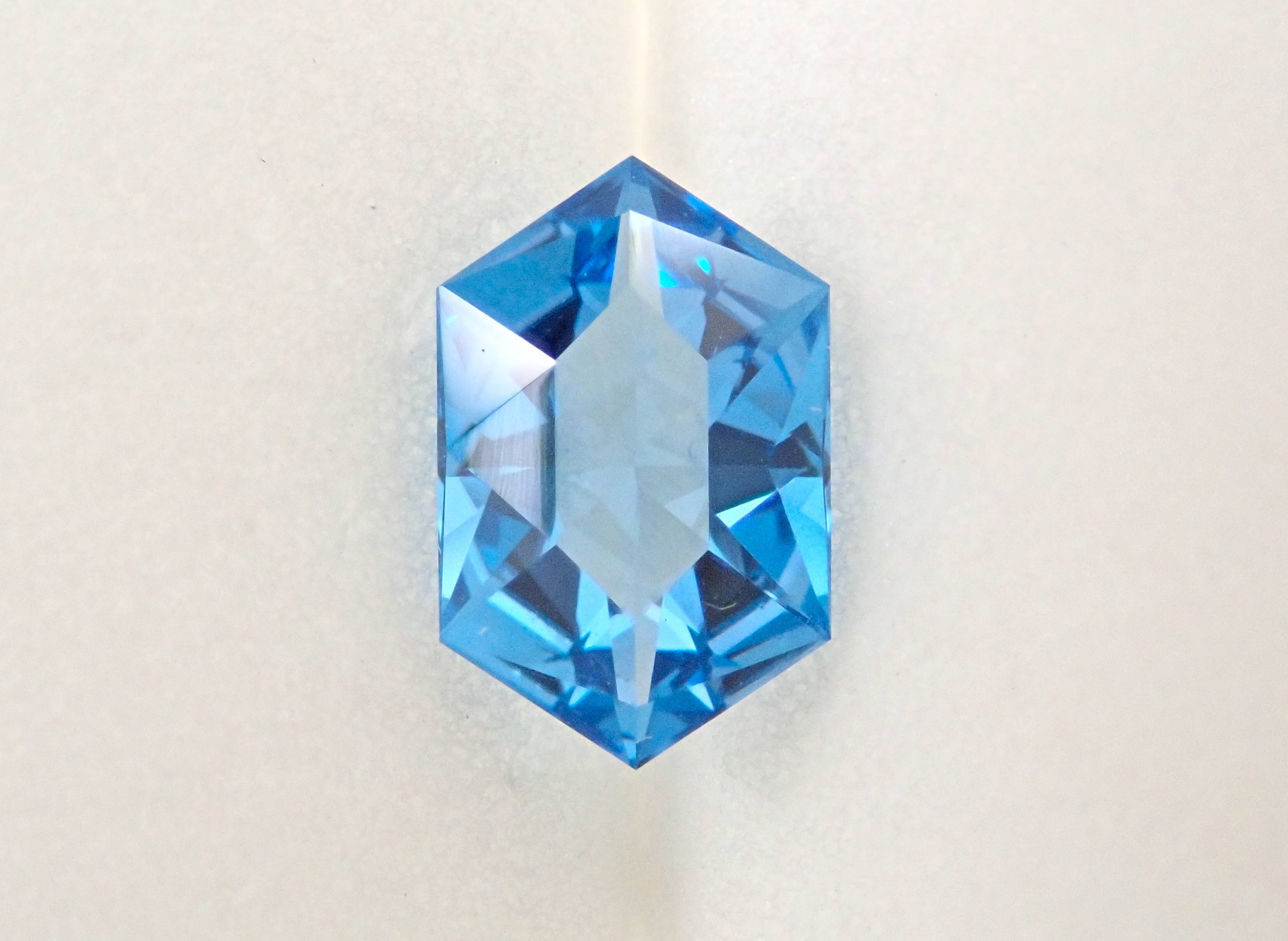 藍色托帕石以其迷人的藍色,在眾多托帕石顏色變體中,是最受歡迎的顏色之一。其中,「瑞士藍托帕石」就是一種像這顆散石一樣,擁有深邃而鮮豔的藍色的寶石。這是一顆巴西瑞士藍色托帕石,由斯里蘭卡拋光師 Sanjay 拋光。