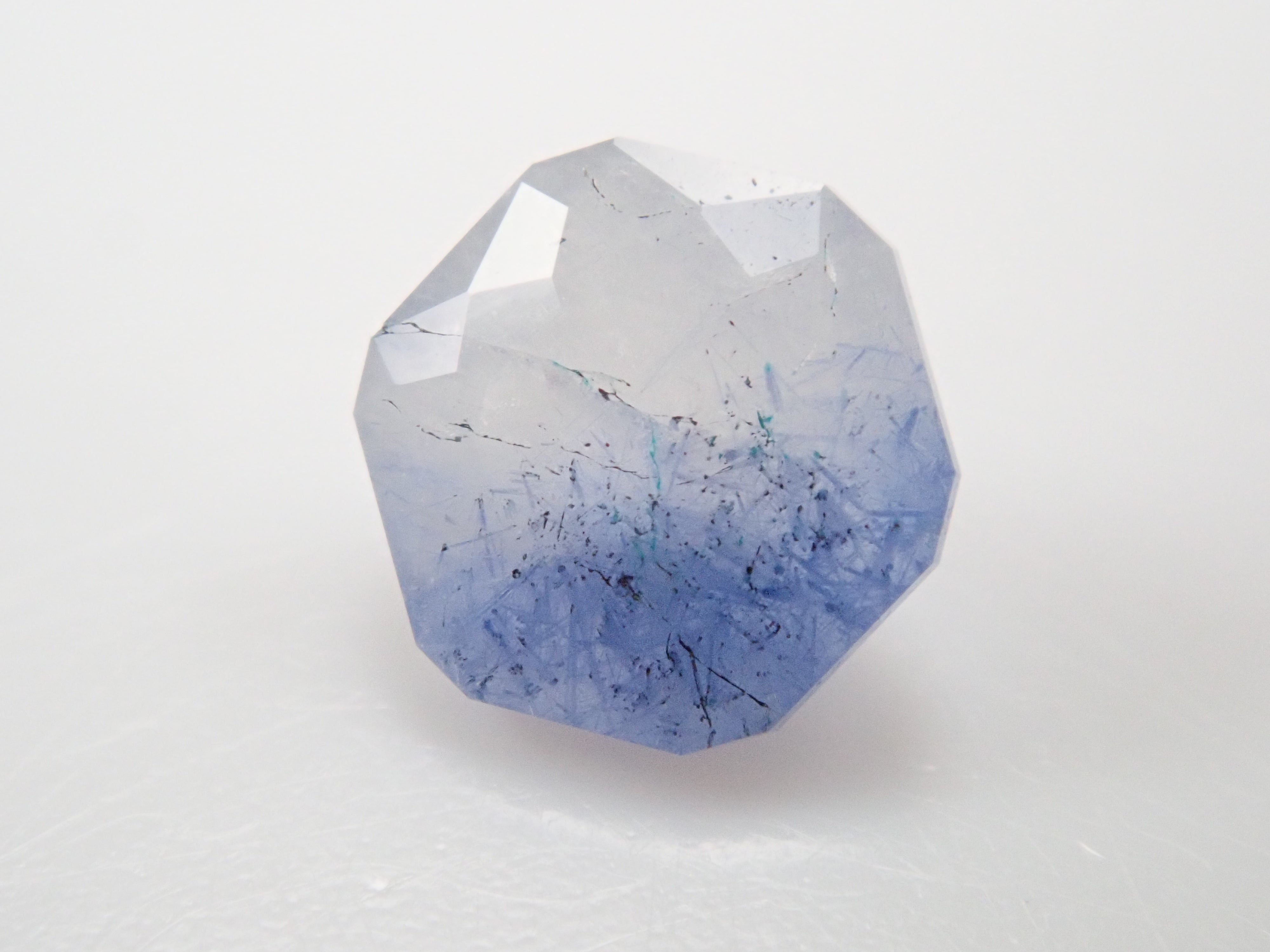 石英,日文稱為“suisho”,是日本常見的寶石,但它也是一種色澤深邃的寶石,種類繁多,包括紫水晶和黃水晶。這款藍線石是石英中的藍線石,擁有美麗的藍色內含物。其他寶石中沒有一種擁有相同的紋路,因此它成為收藏家們的心頭好。這是一顆由斯里蘭卡切割師 Sanjay 切割的刻面石英藍線石。