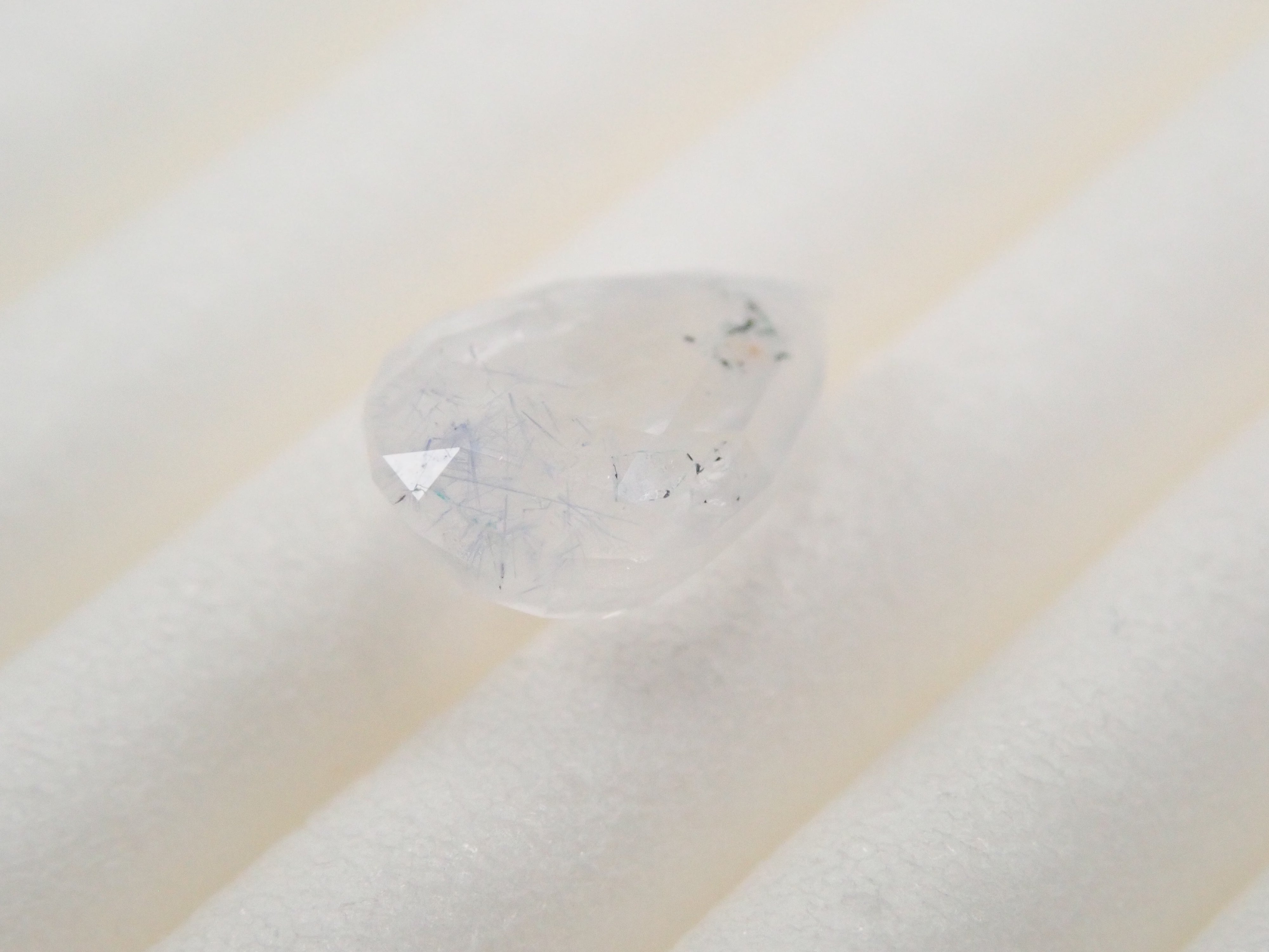 石英,日文稱為“suisho”,是日本常見的寶石,但它也是一種色澤深邃的寶石,種類繁多,包括紫水晶和黃水晶。這款藍線石是石英中的藍線石,擁有美麗的藍色內含物。其他寶石中沒有一種擁有相同的紋路,因此它成為收藏家們的心頭好。