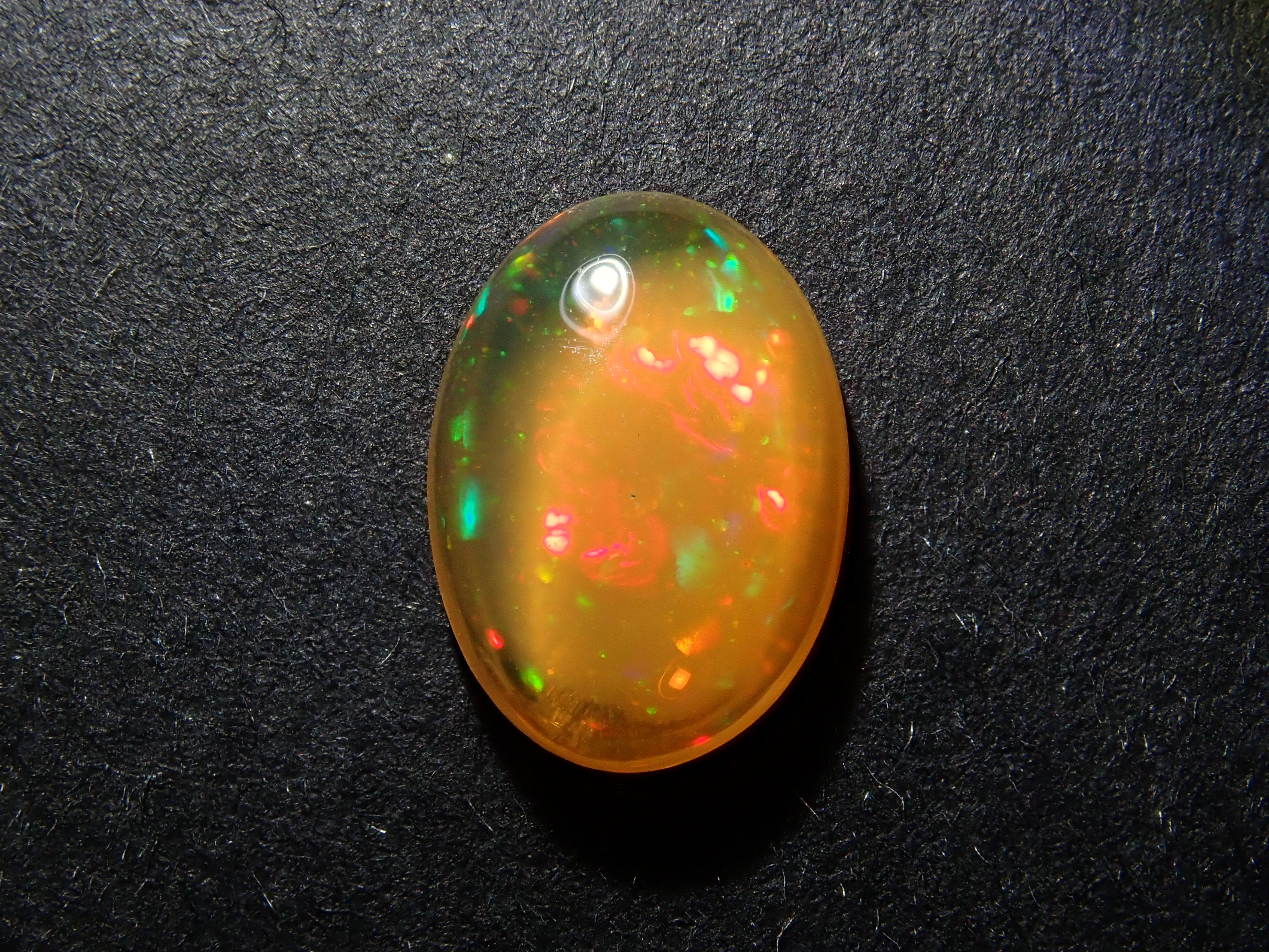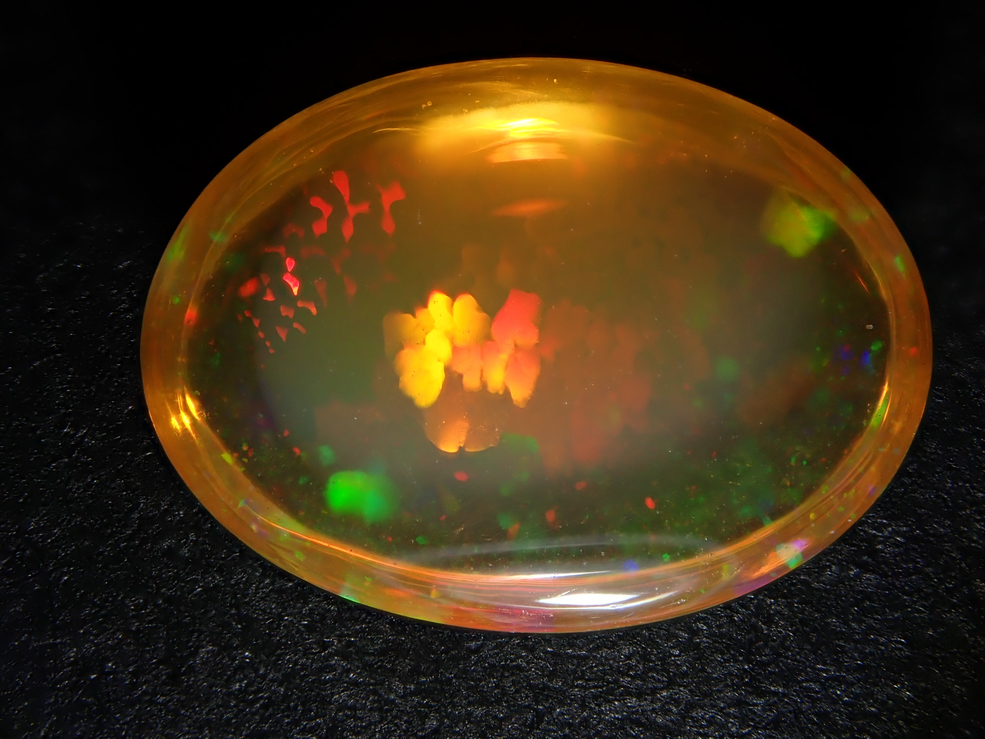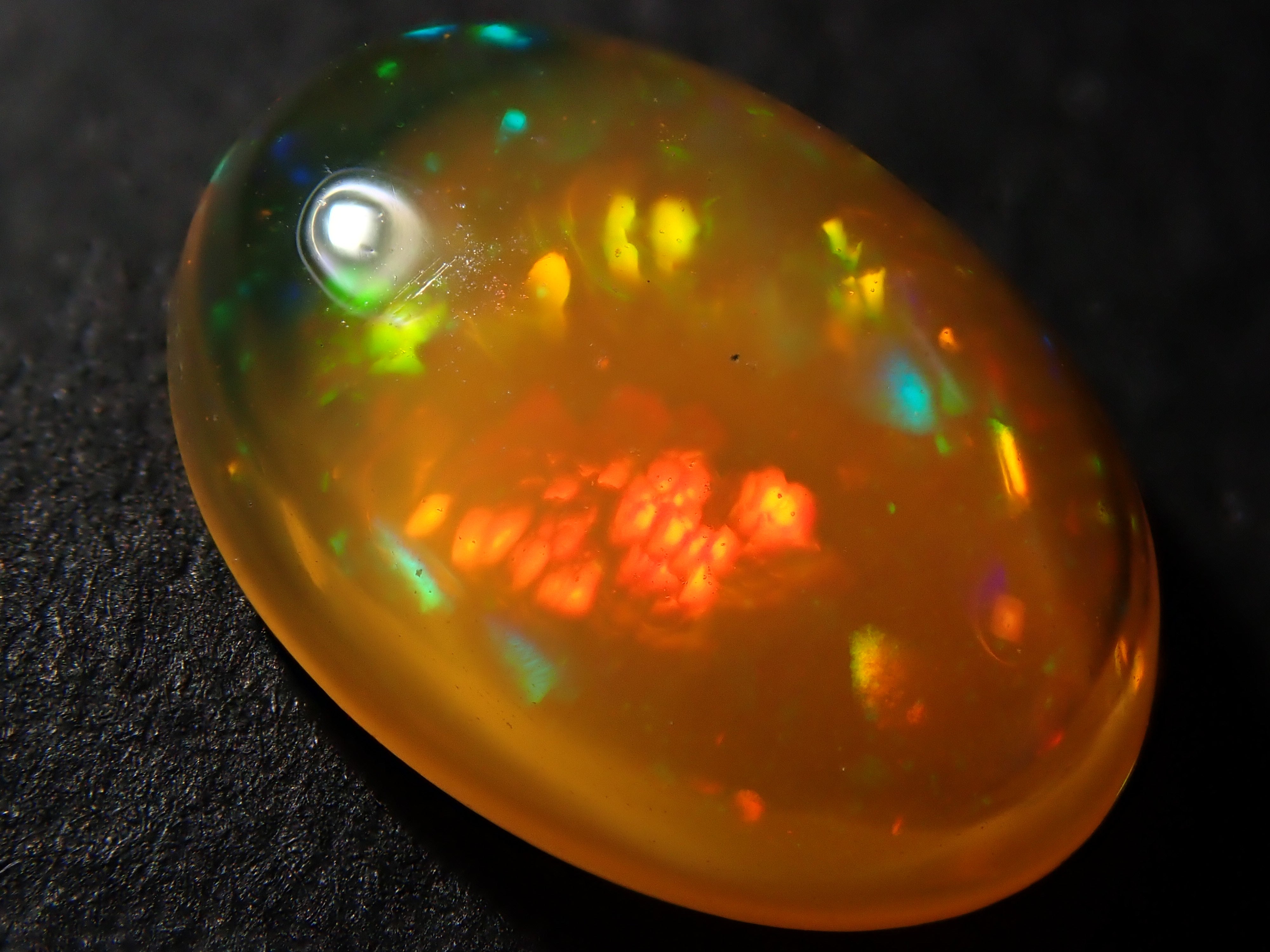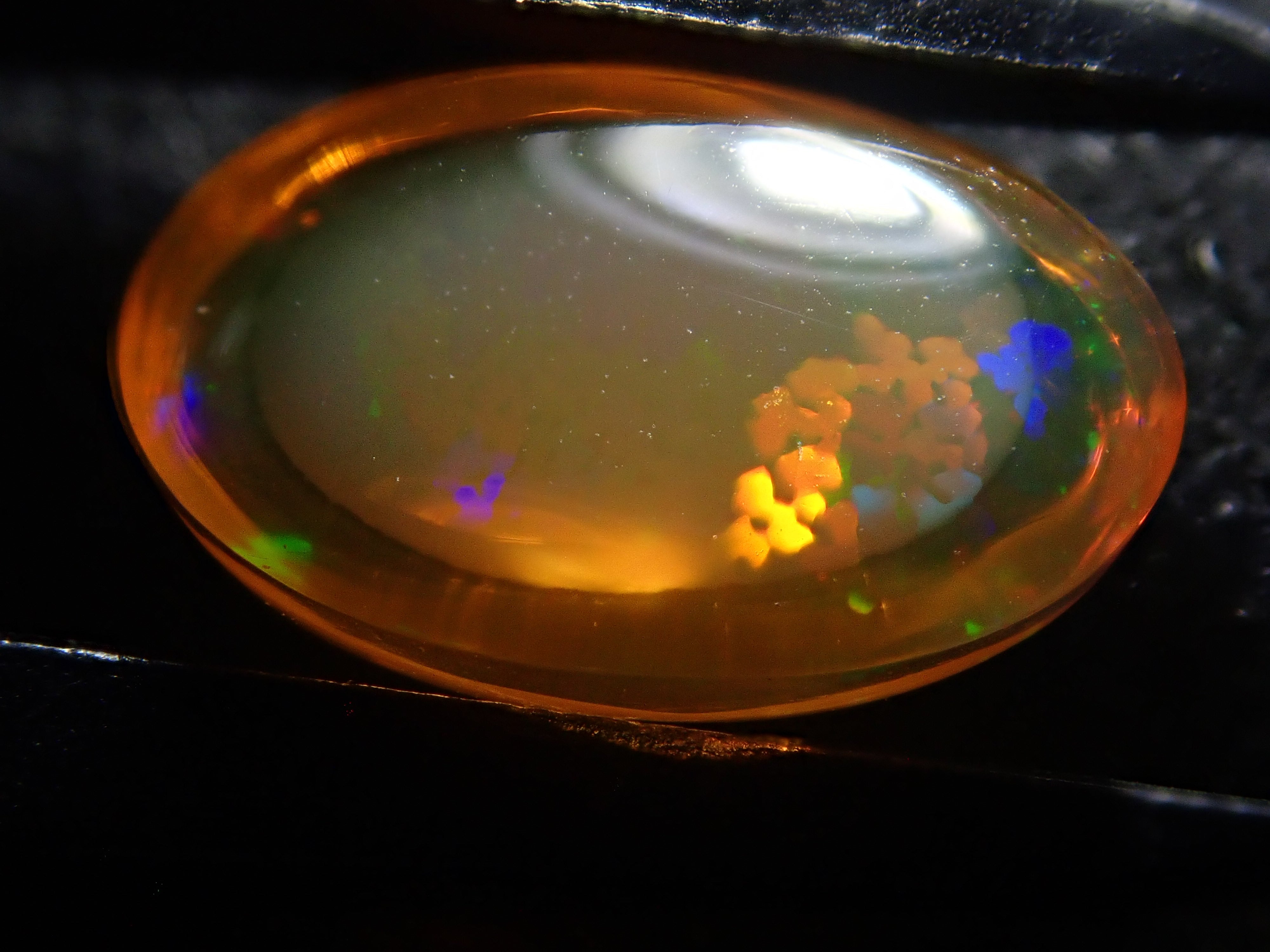 自古羅馬時代以來,蛋白石就廣受歡迎。火蛋白石是一種以紅色至橙色為底色的蛋白石,形狀像「火」。這張照片是用筆型電筒拍攝的。