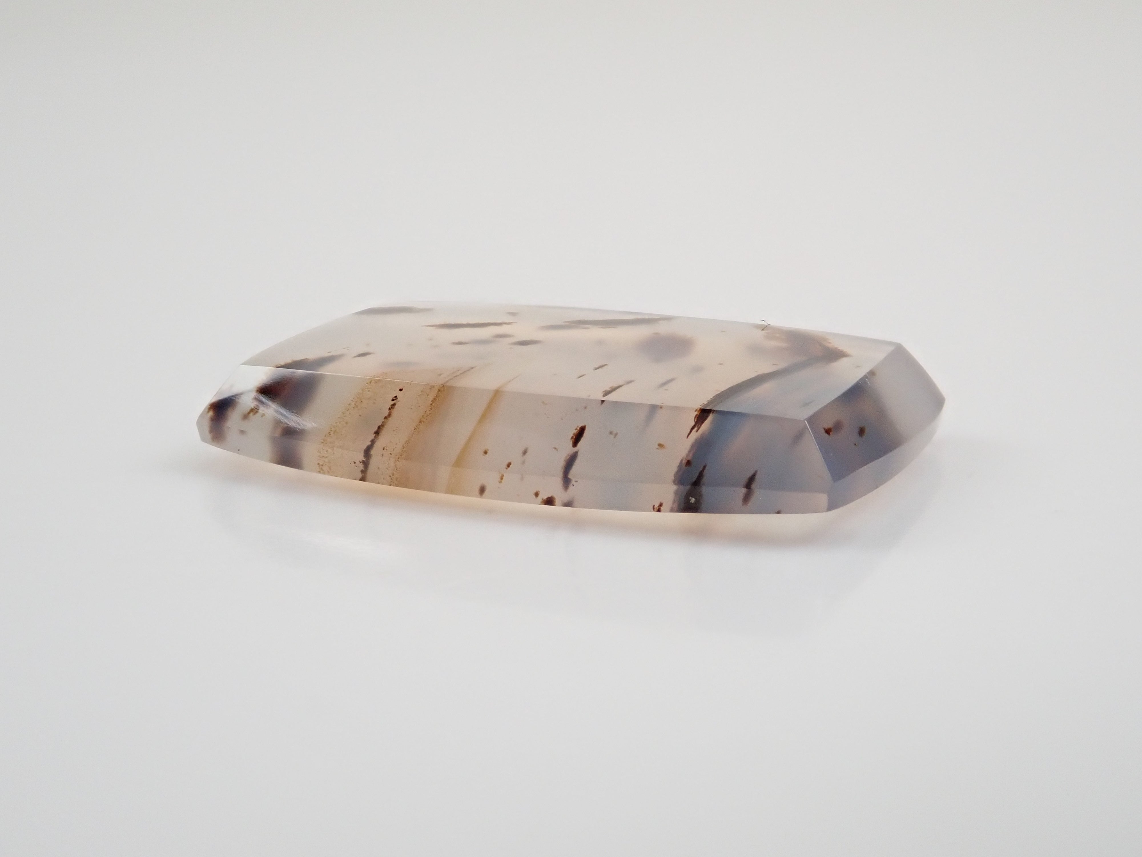 瑪瑙因其藝術般的大理石紋路而引人注目。它的日文名稱是“agate”。從礦物學角度來看,它是一種石英的多晶體,因此屬於水晶家族。瑪瑙是我們日本人熟悉的寶石,並且有在日本開採的記錄。這是蒙大拿瑪瑙,產於美國蒙大拿州。