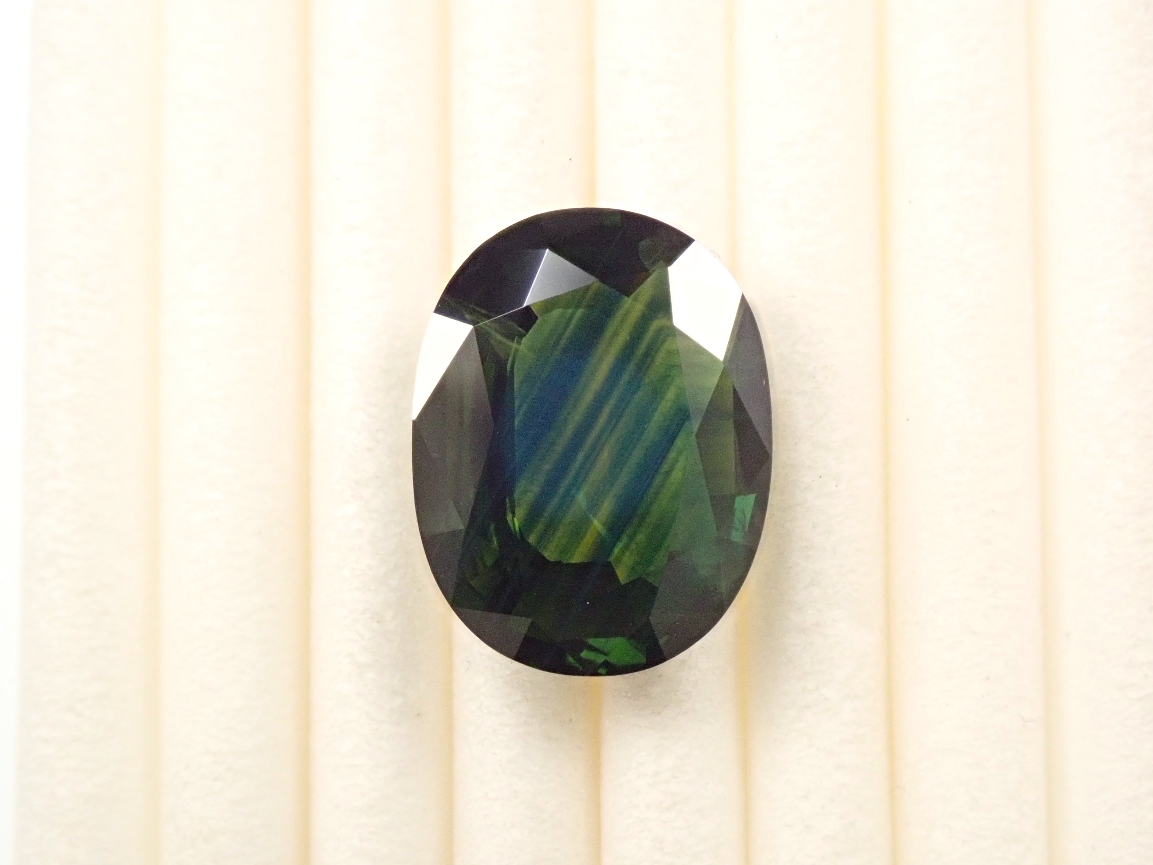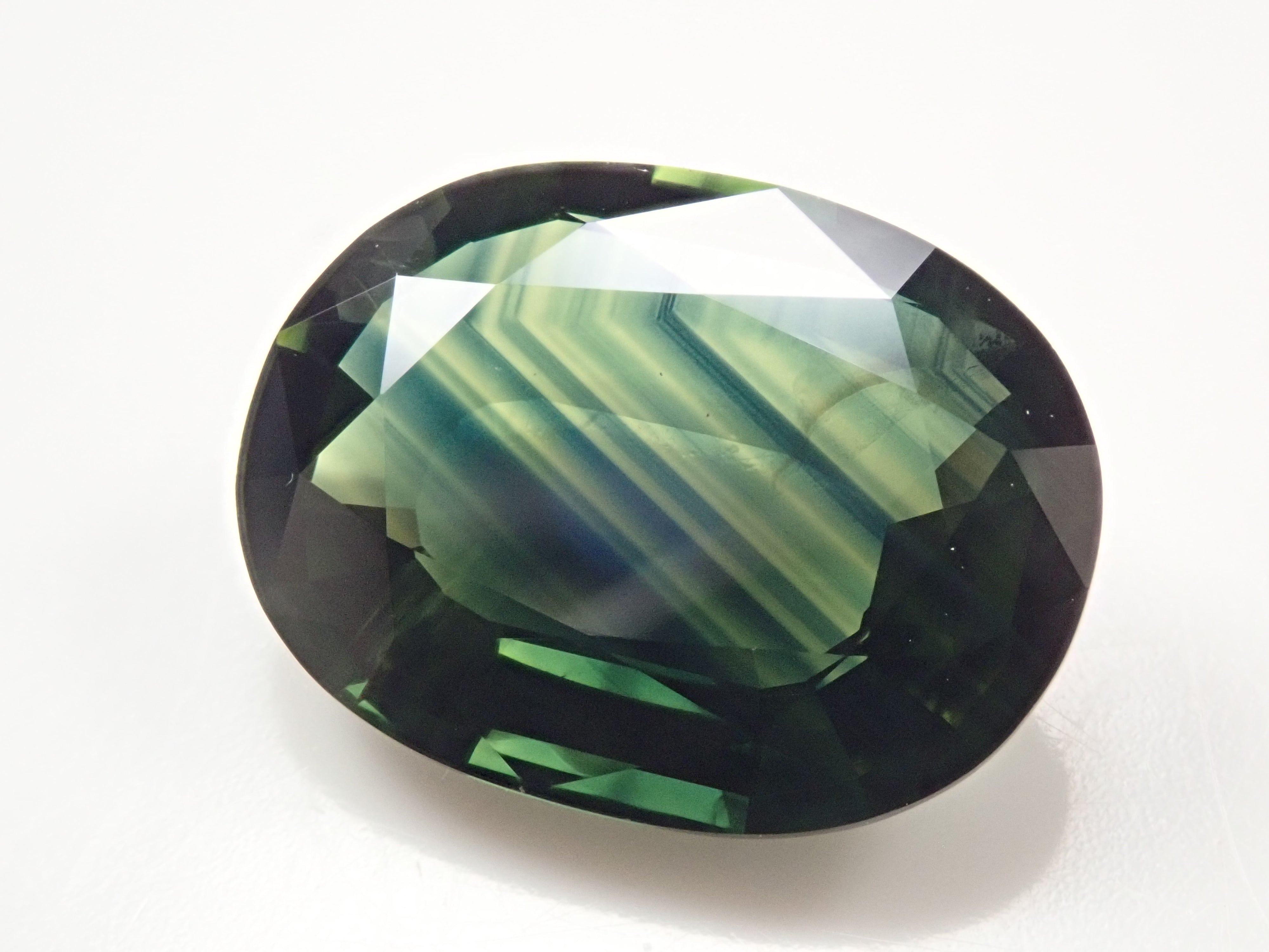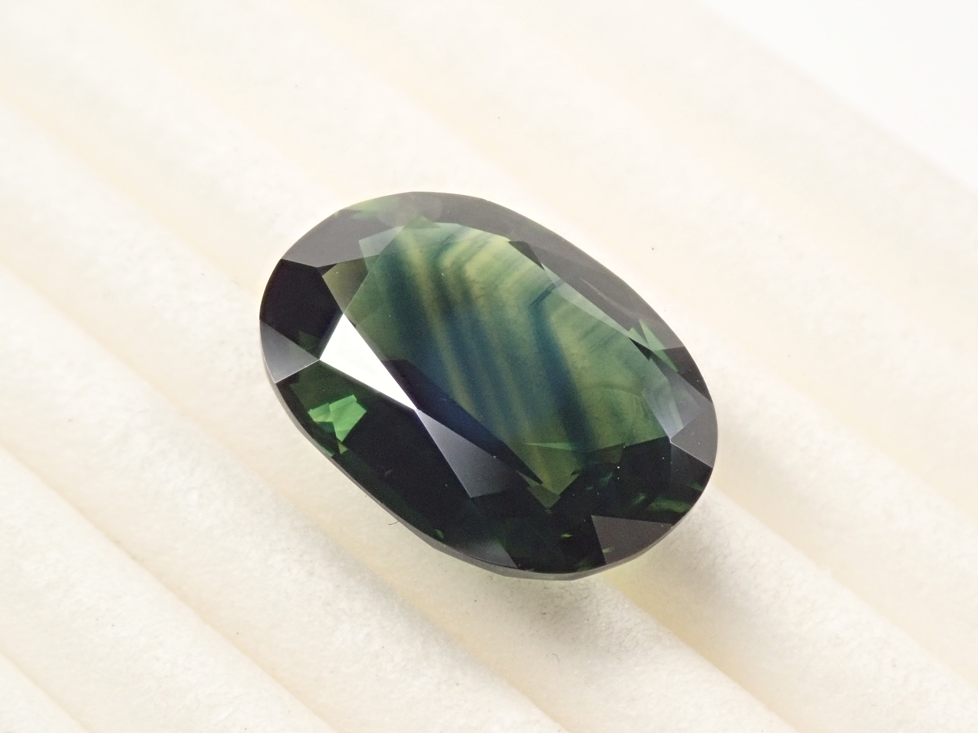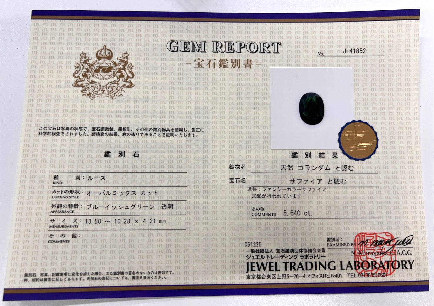 這是一顆5克拉的大顆雙色藍寶石,色帶美麗。它附有JTL證書。