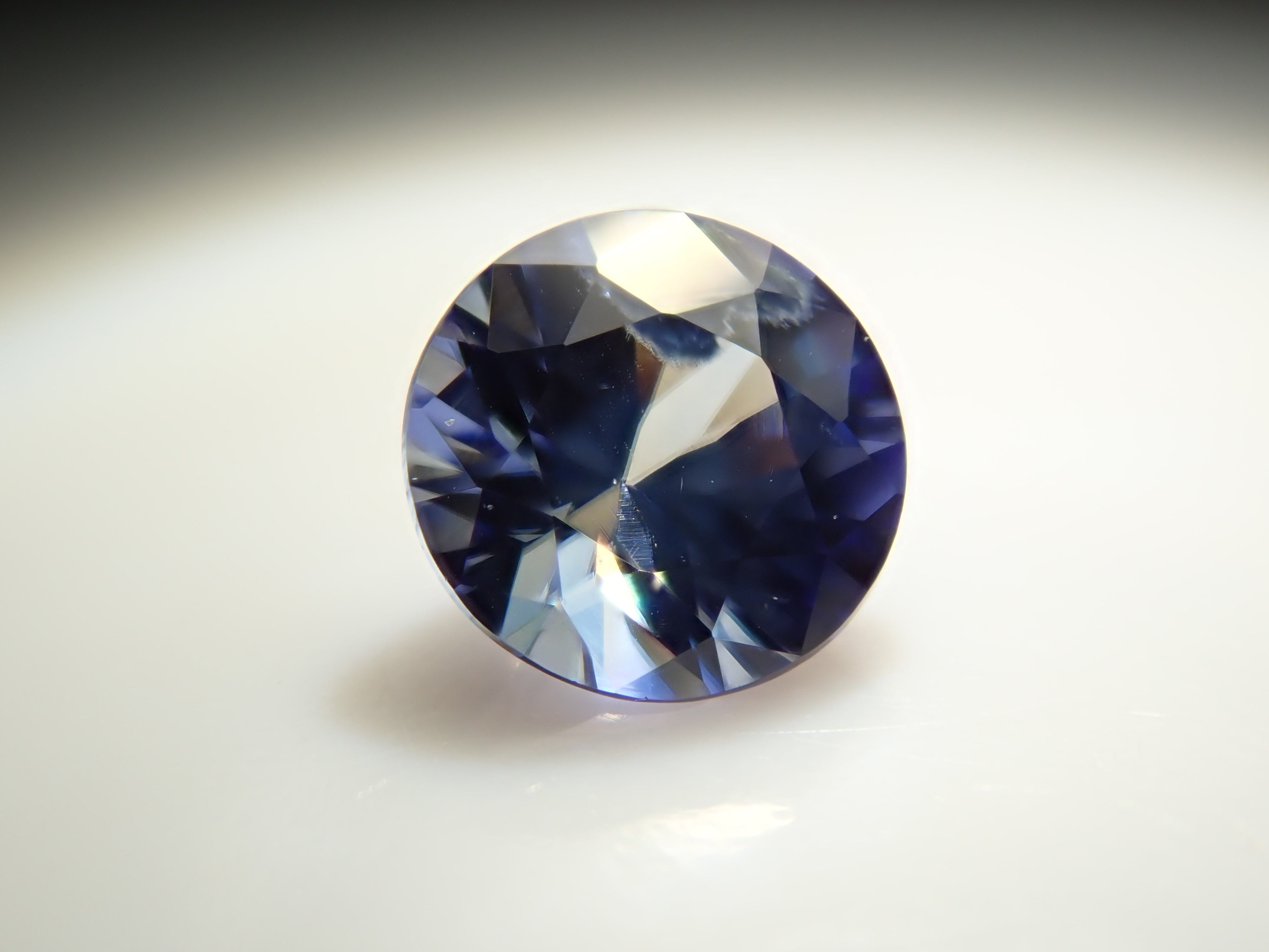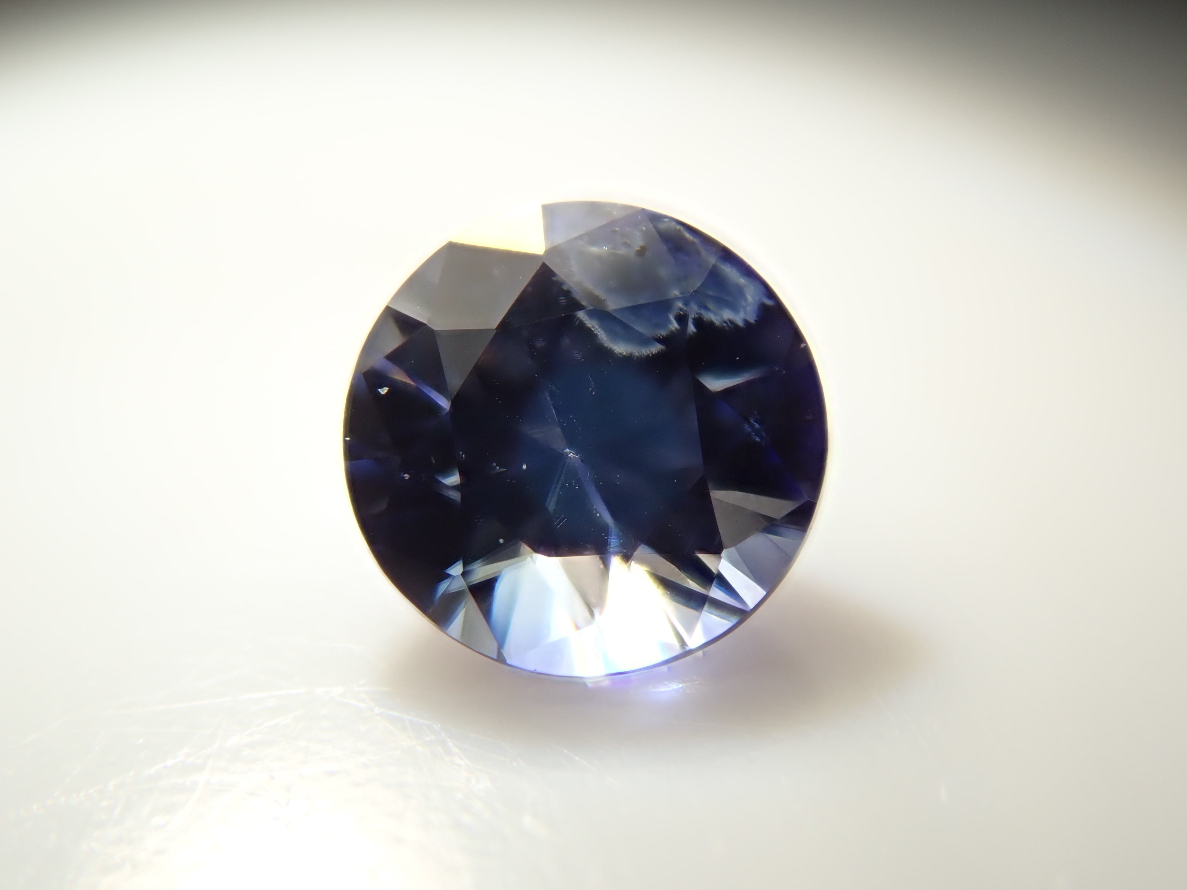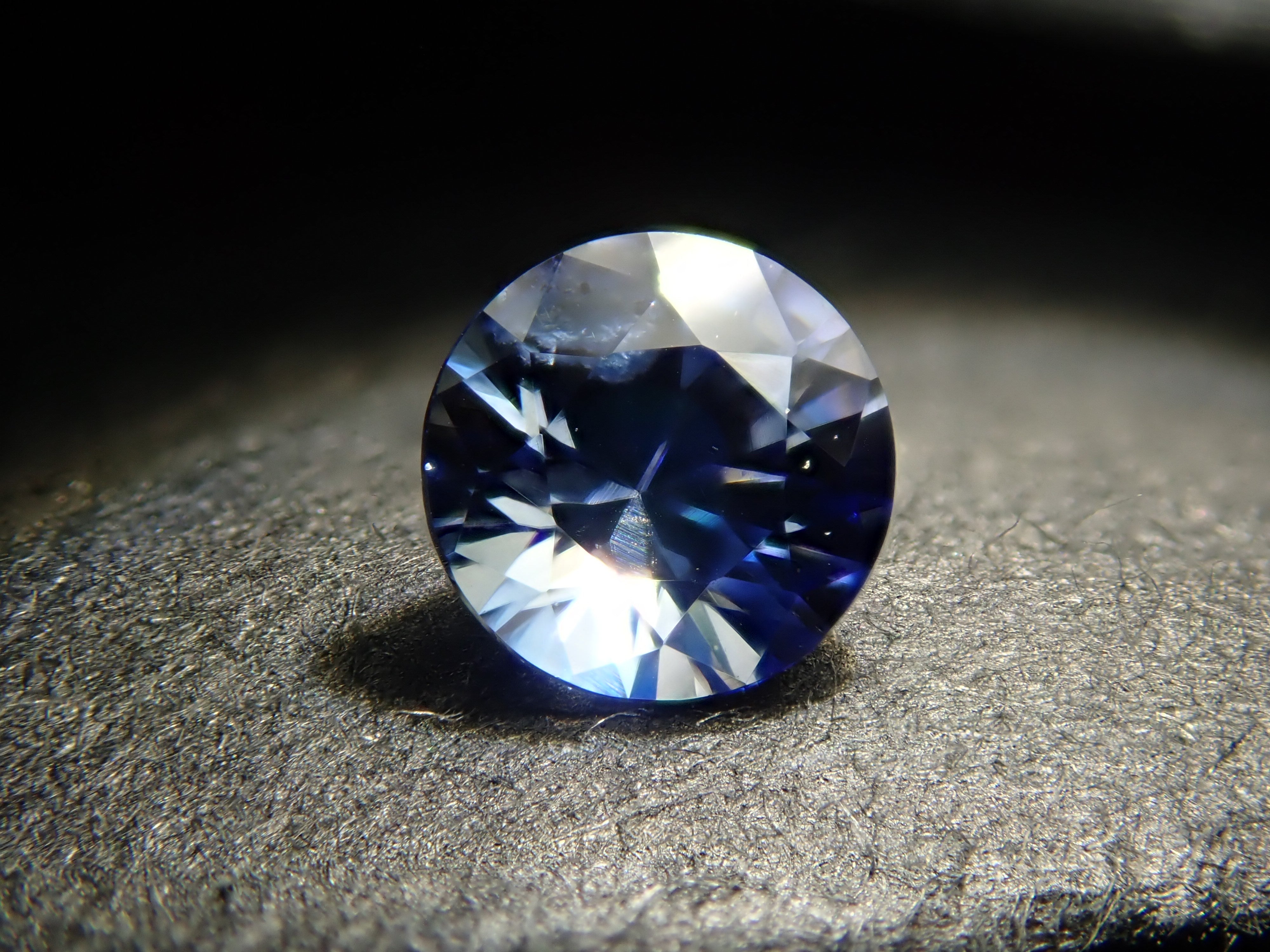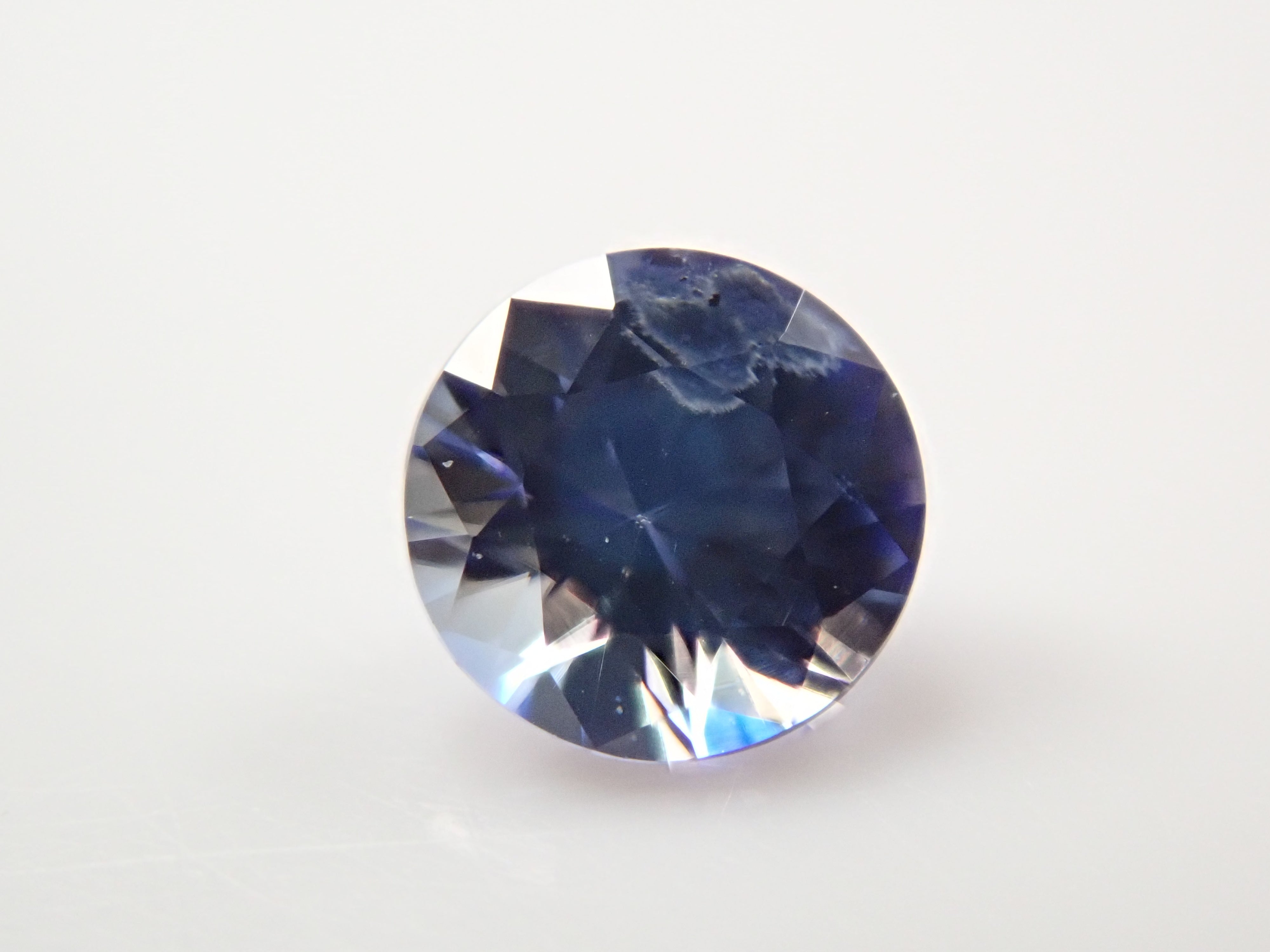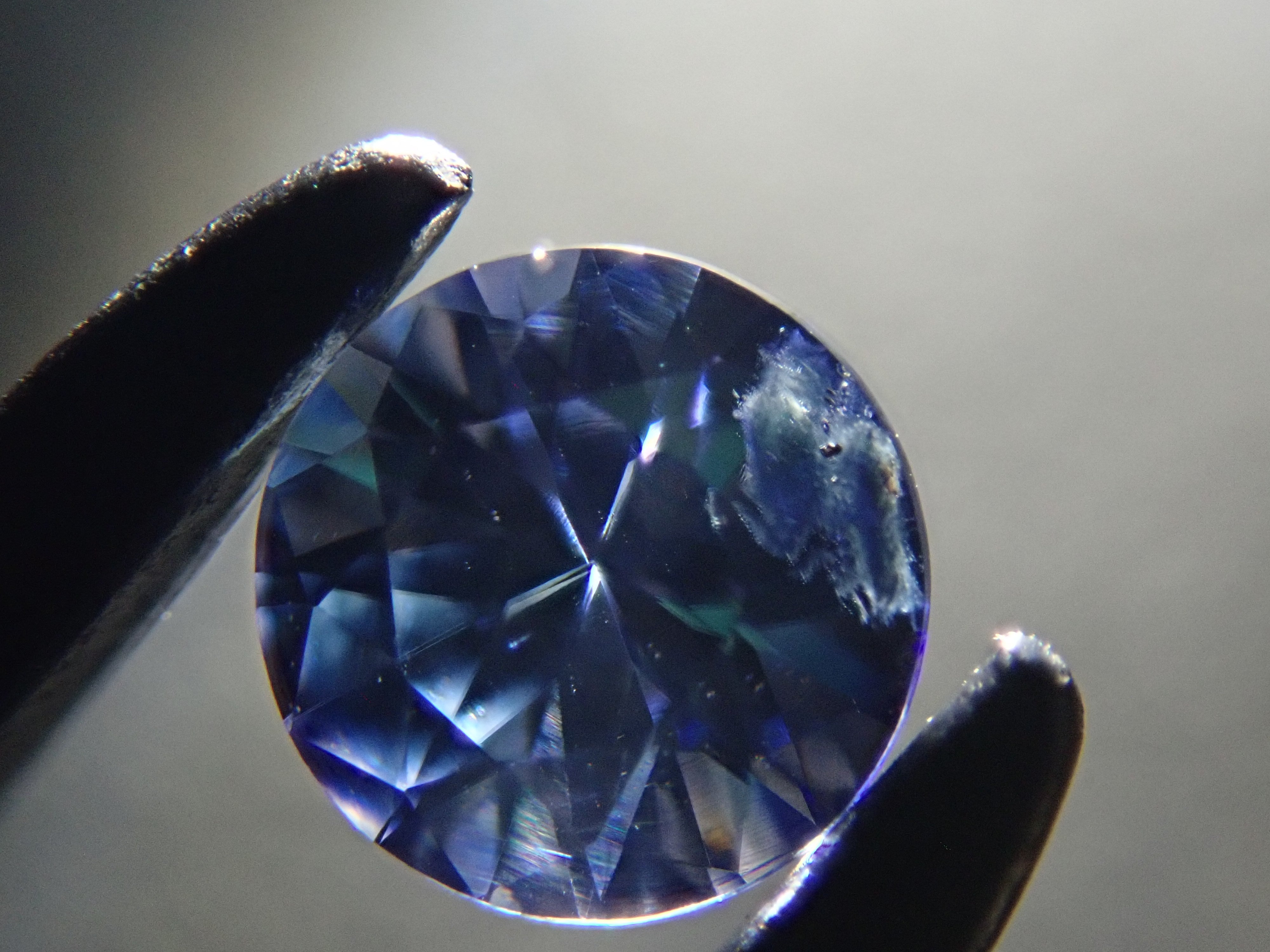 這是一種相對罕見的藍錐礦,其內部含有礦物。圓形切割,直徑3.5毫米。