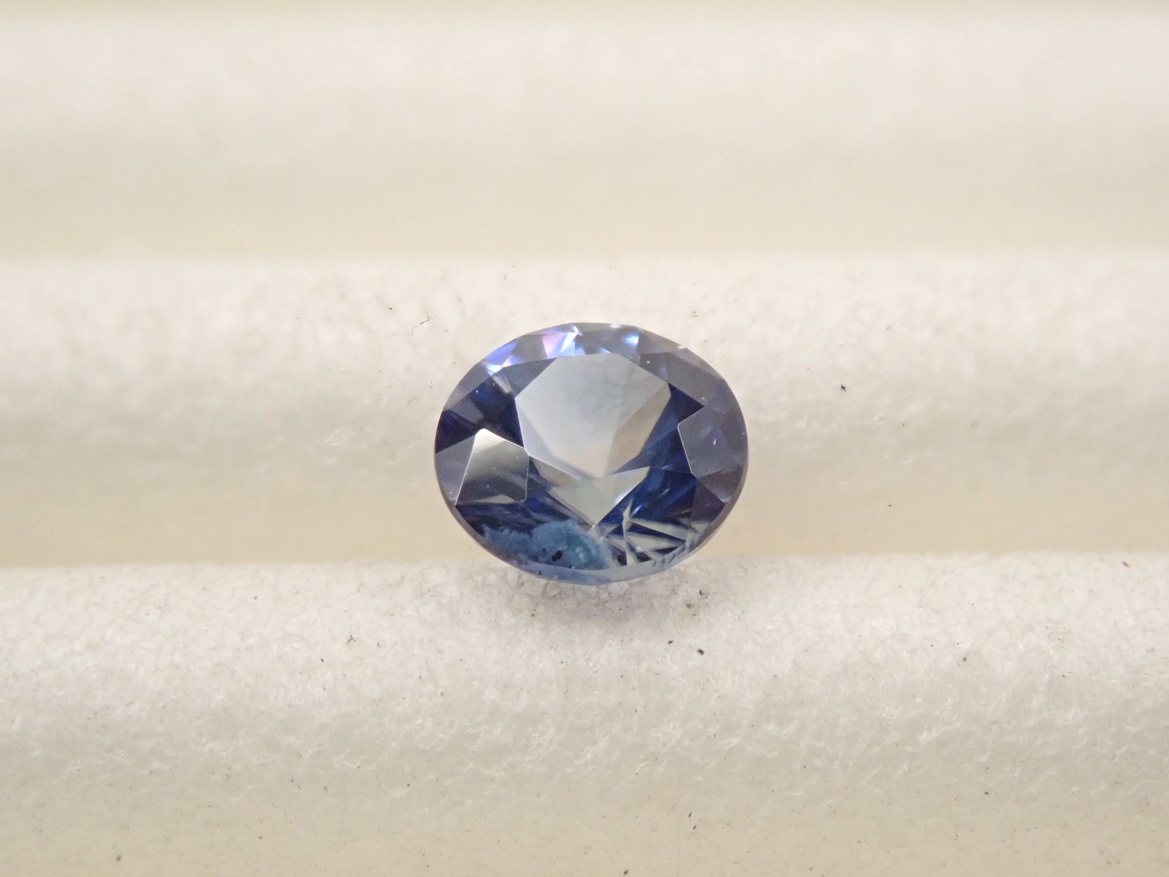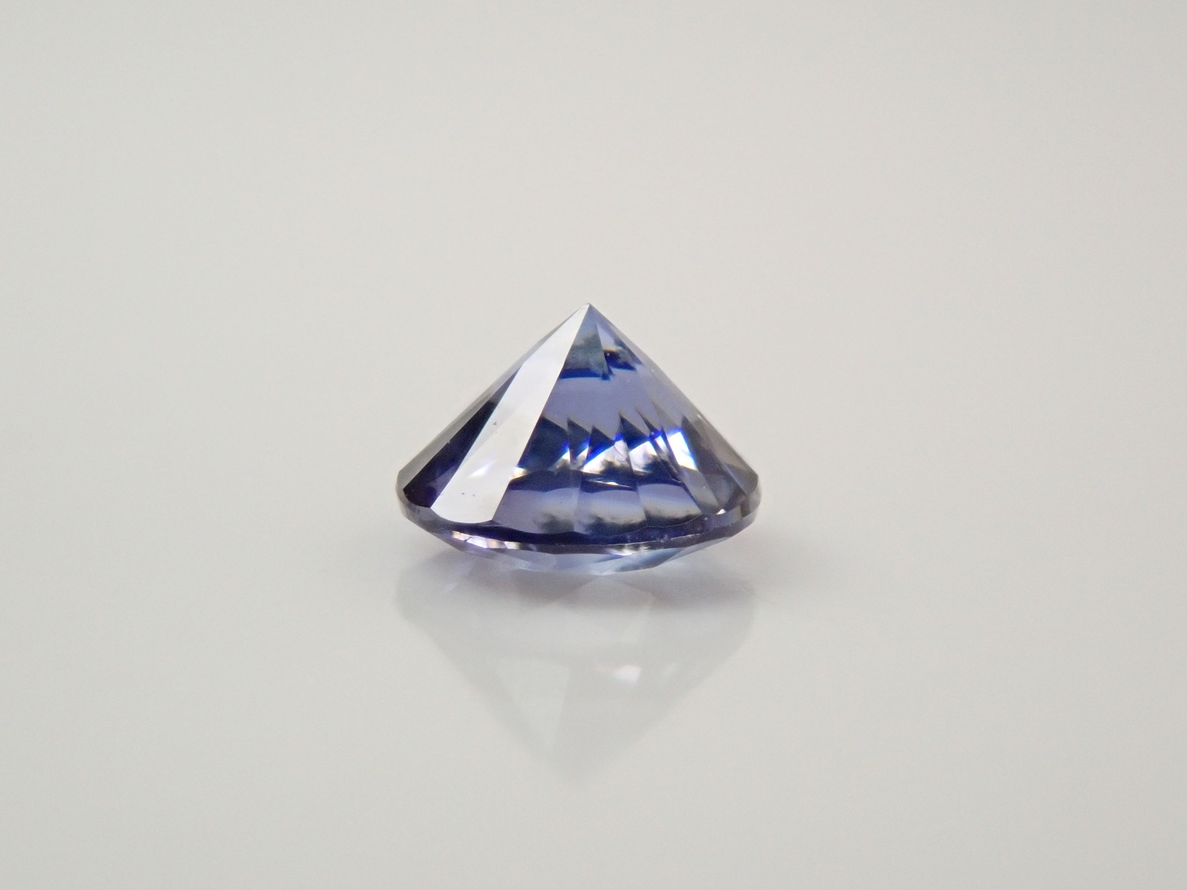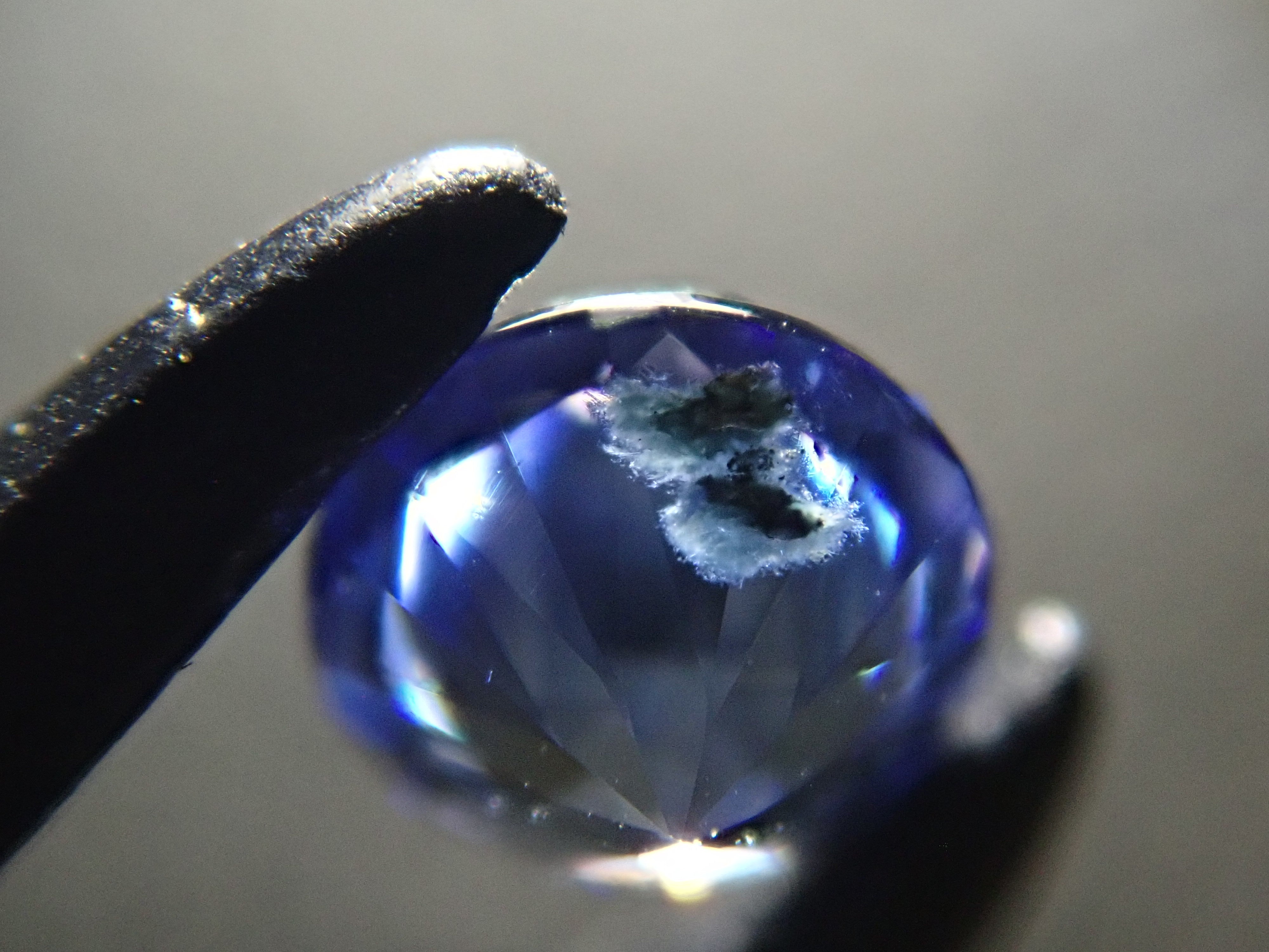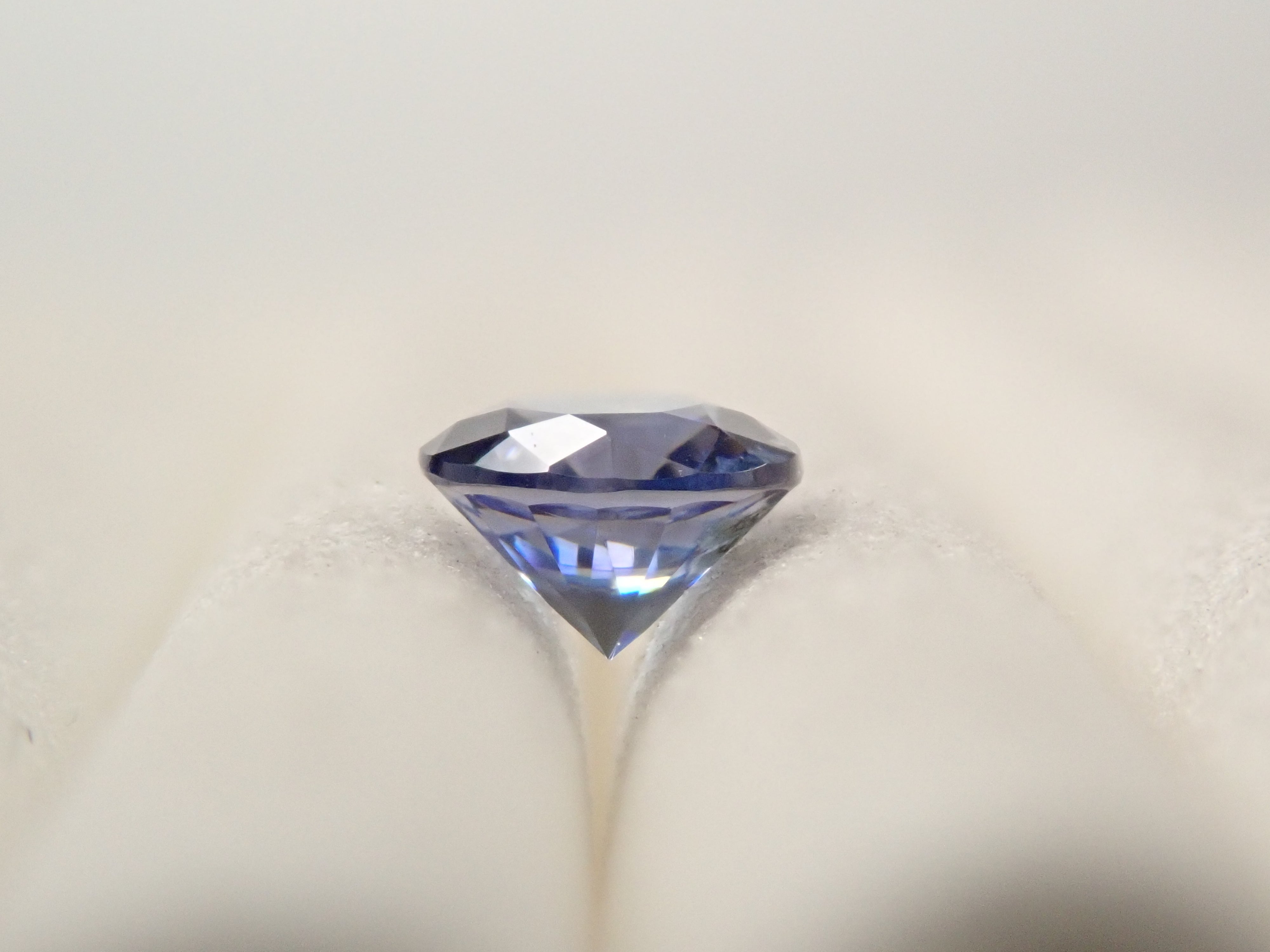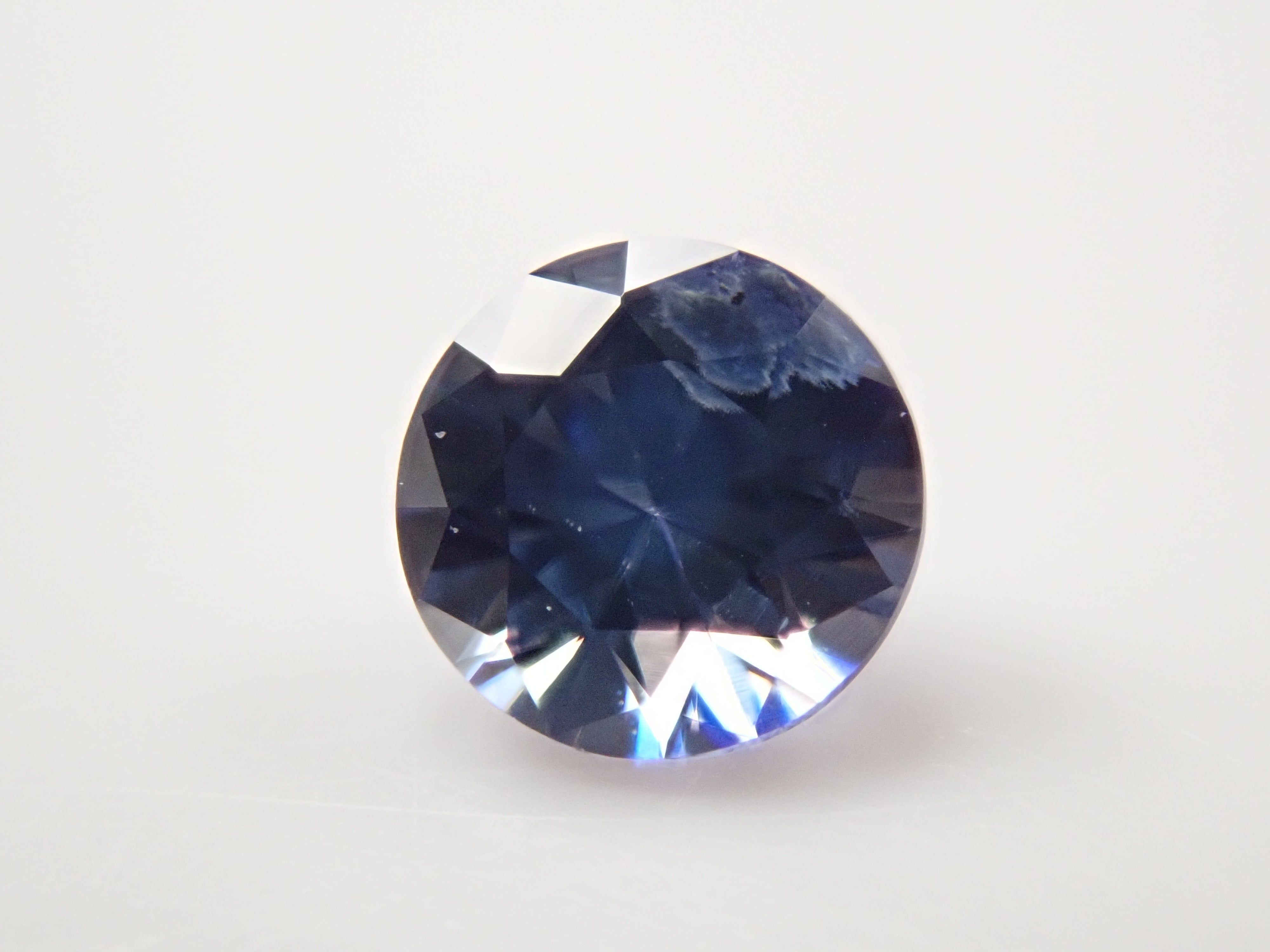 這是一種相對罕見的藍錐礦,其內部含有礦物。圓形切割,直徑3.5毫米。