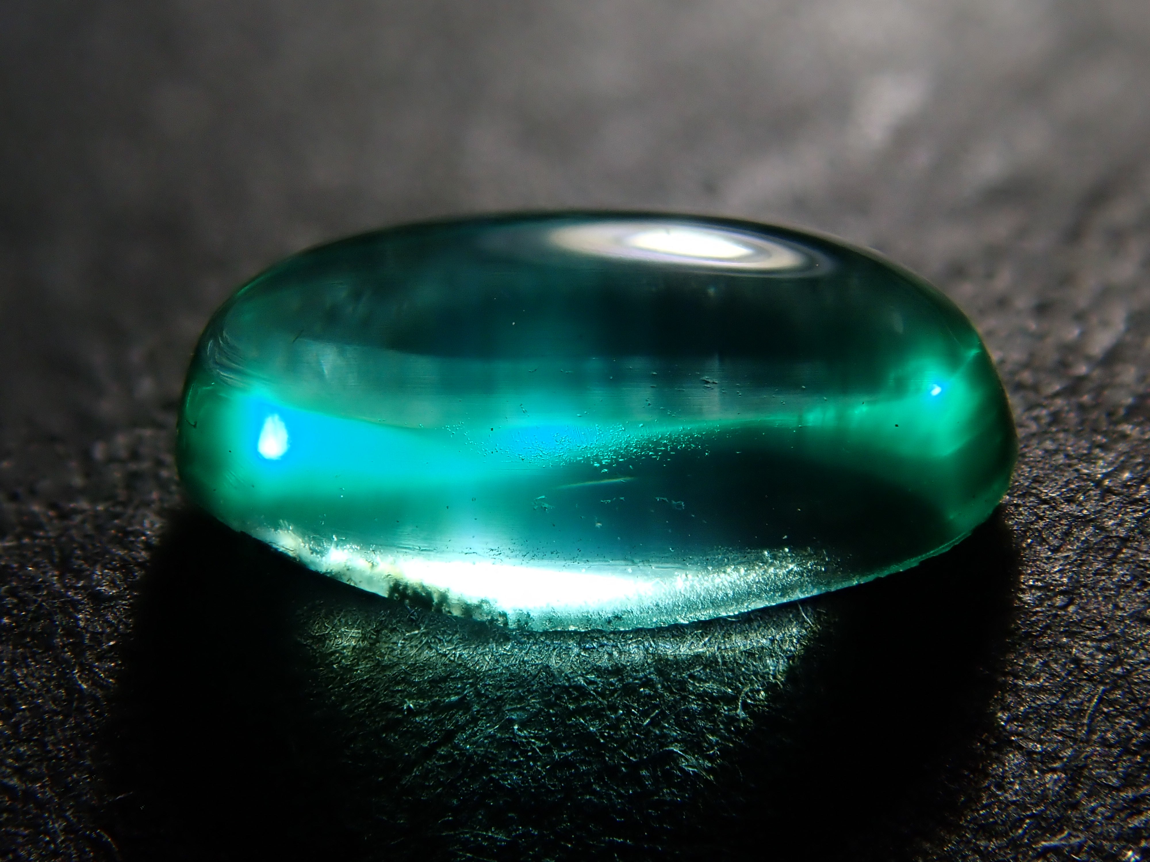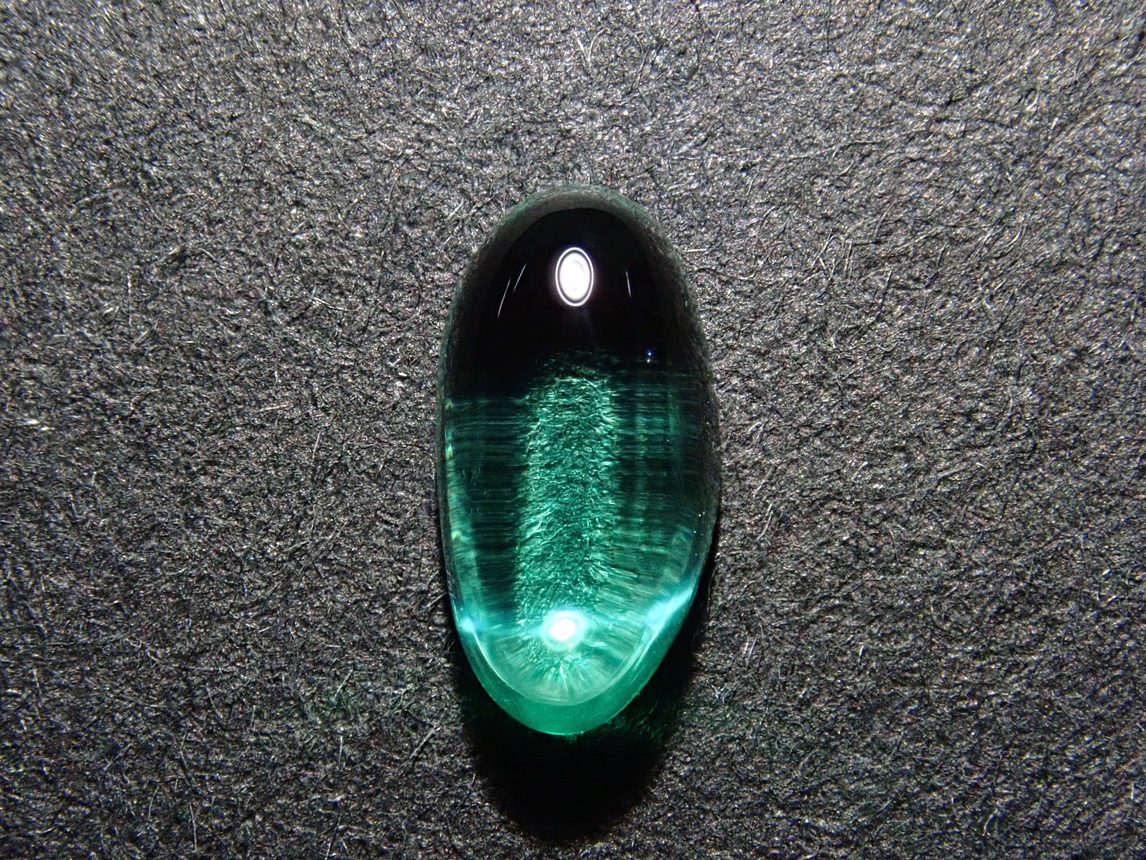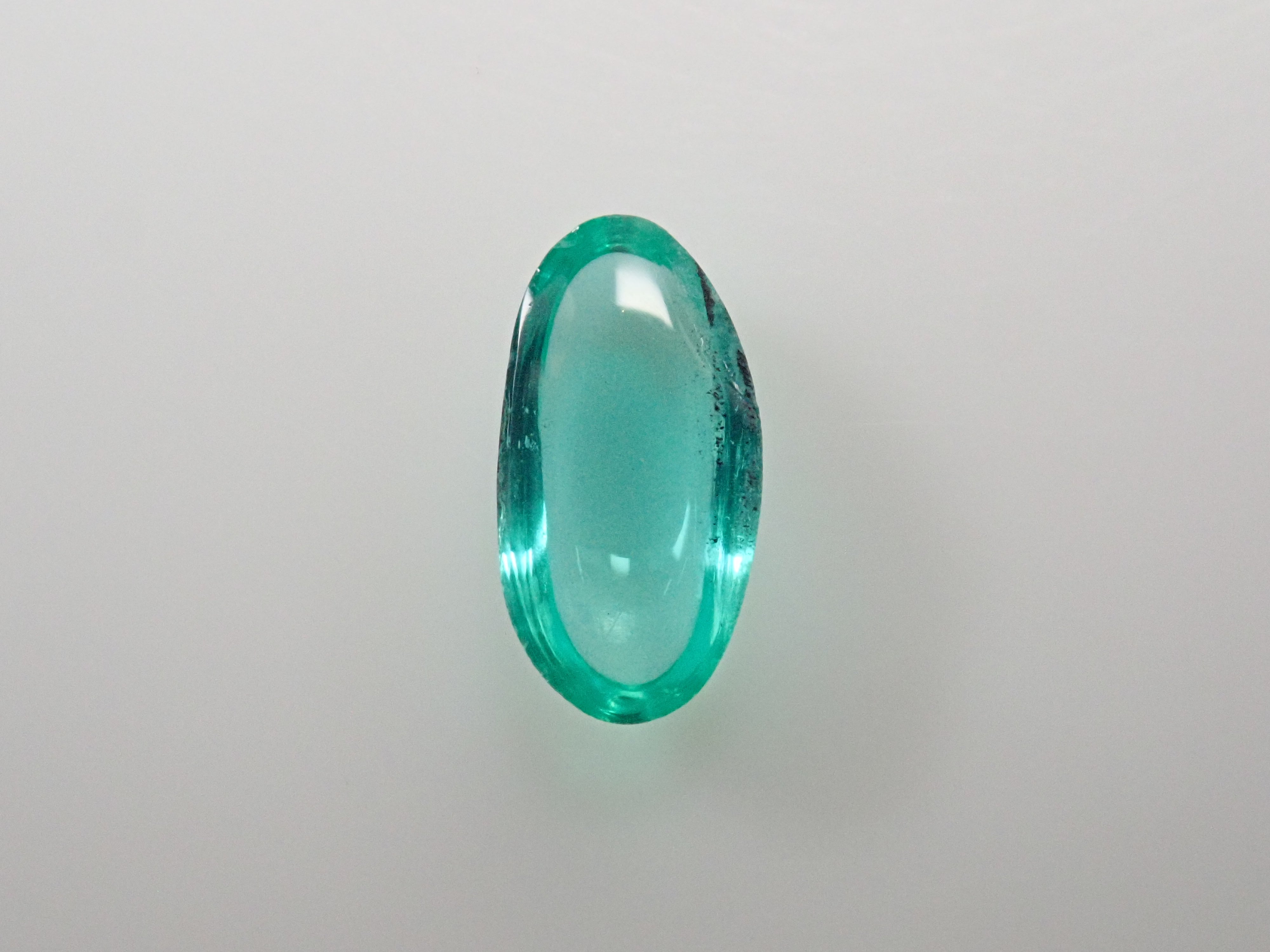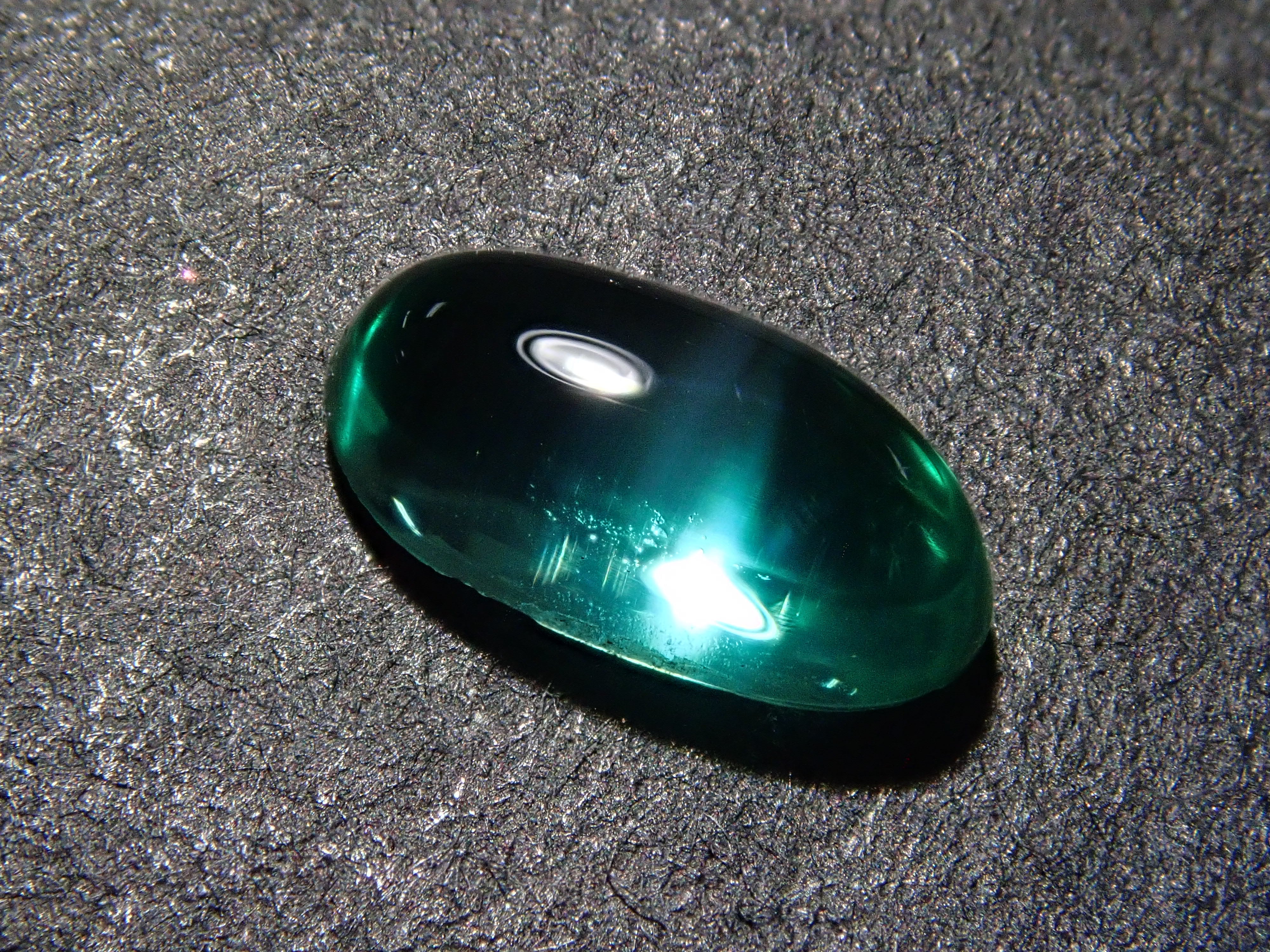 祖母綠是克莉奧佩特拉鍾愛的著名寶石。俗話說,「完美無瑕的祖母綠和完美無瑕的人一樣少」。因此,人們通常會用油處理祖母綠,使刮痕不那麼明顯。在光線照射下,可以看到貓眼效應。這種兼具溫柔與清新的氣質,充滿魅力。照片是用筆形電筒拍攝的。寶石背面通常未經拋光。