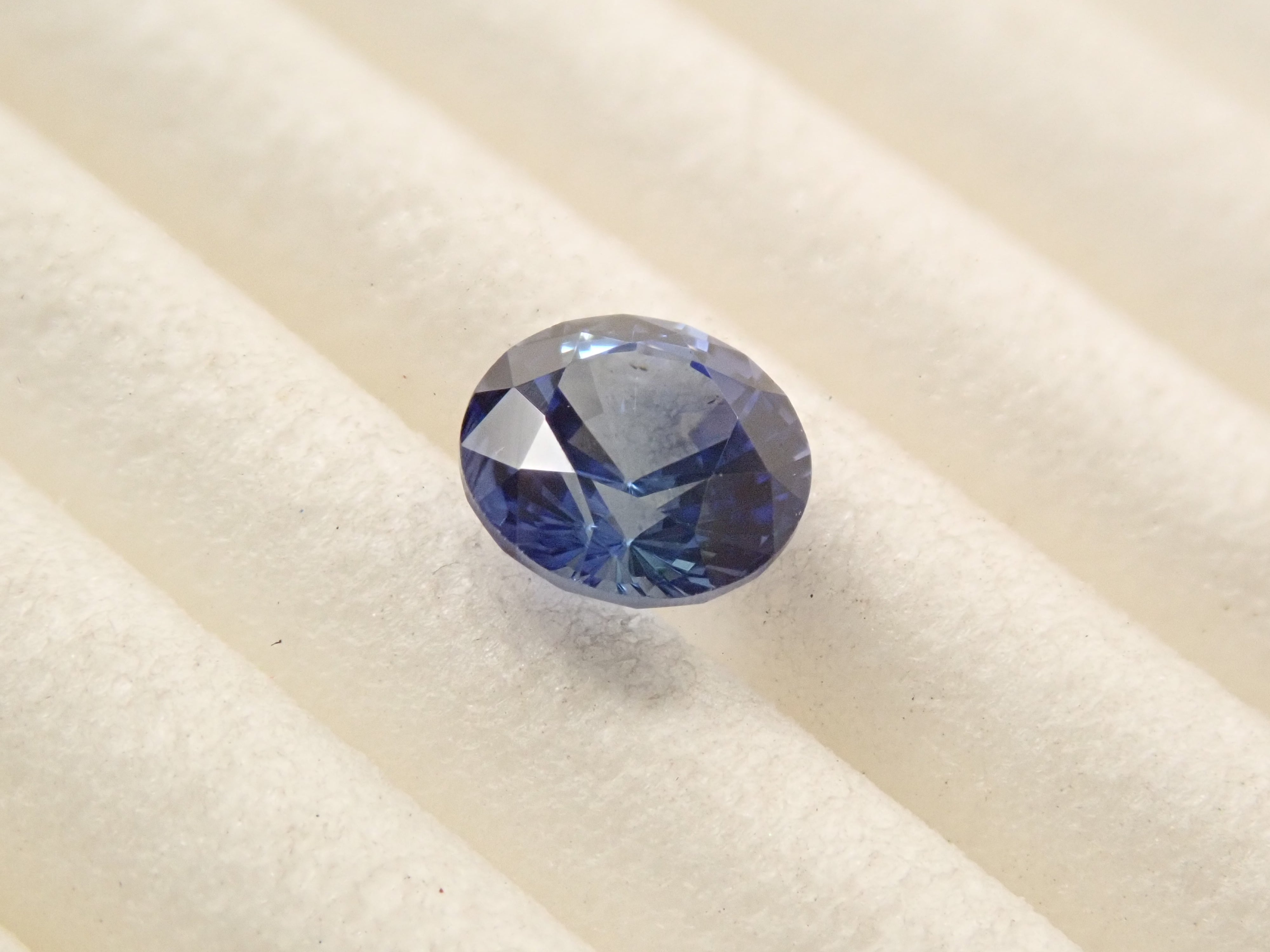 這是一顆璀璨的矢車菊藍寶石,圓形切割,附有AIGS證書。