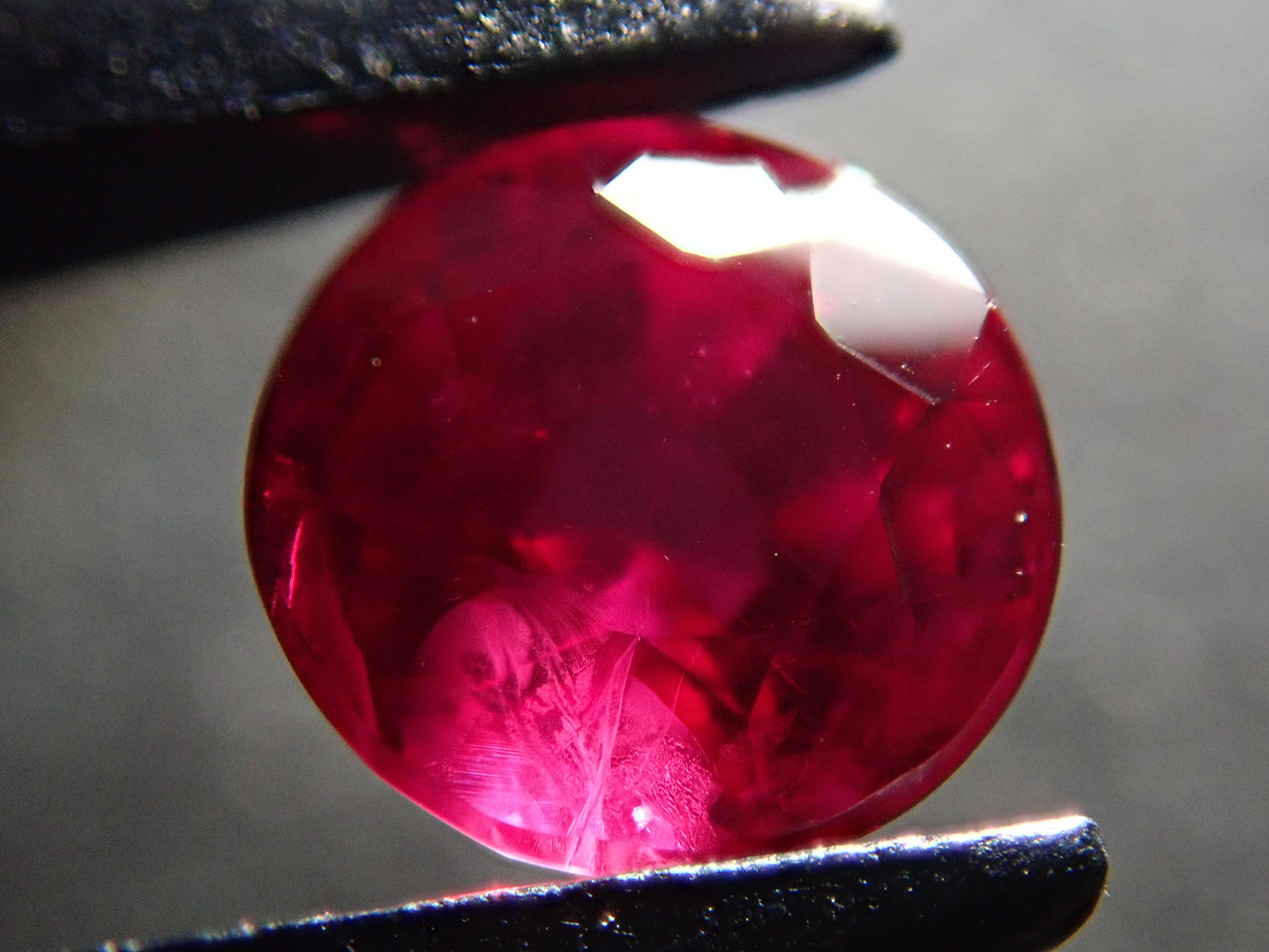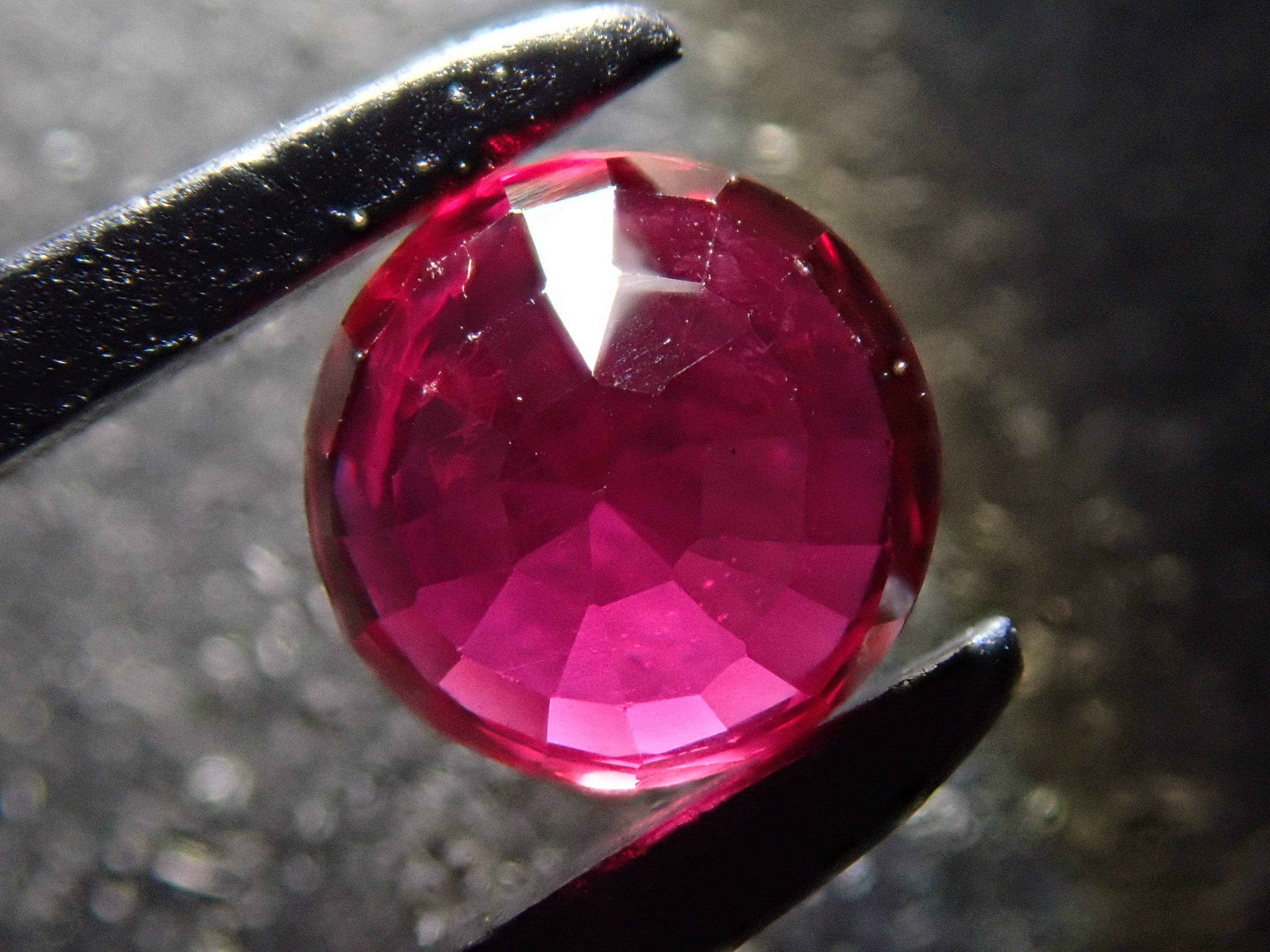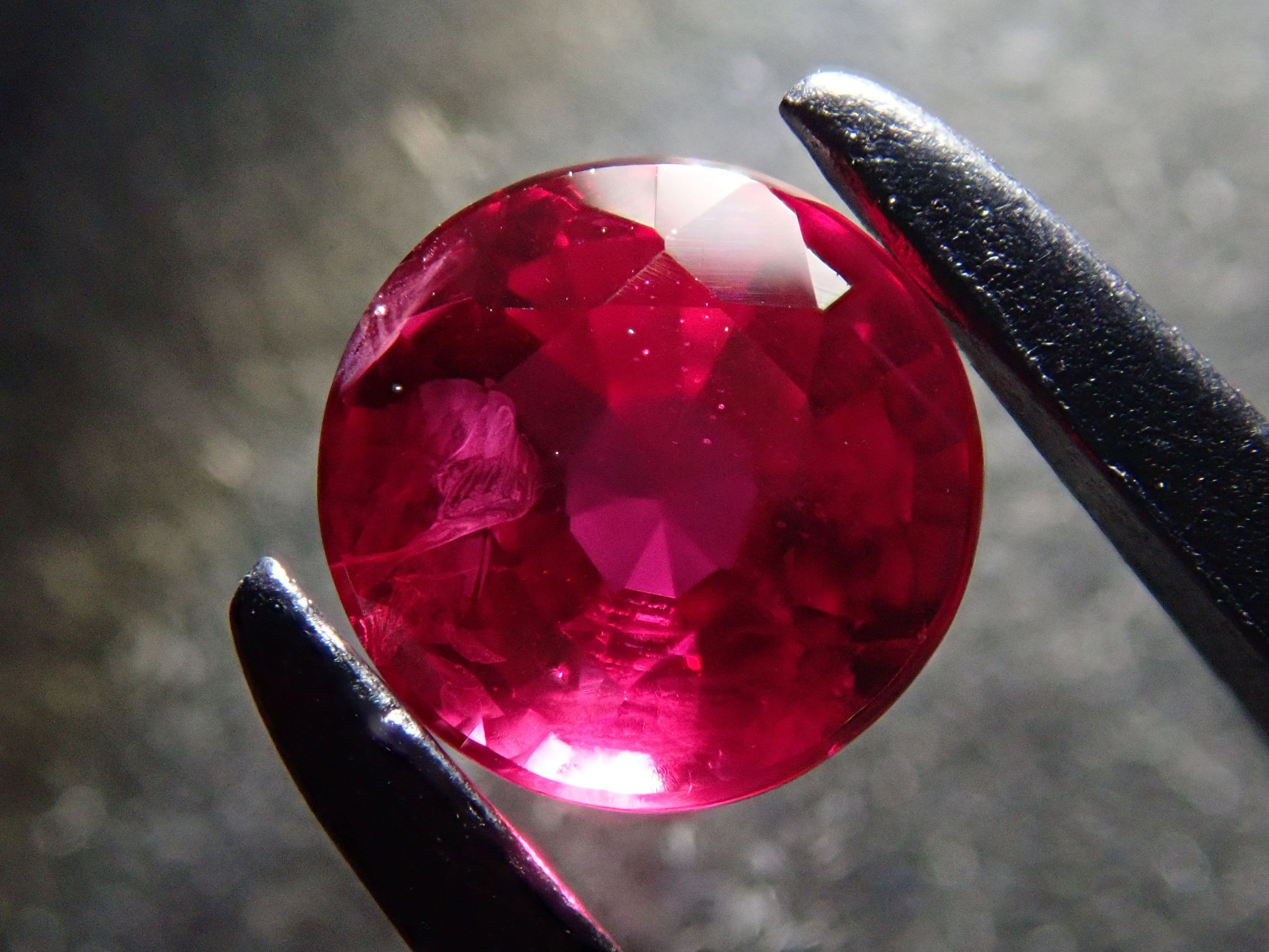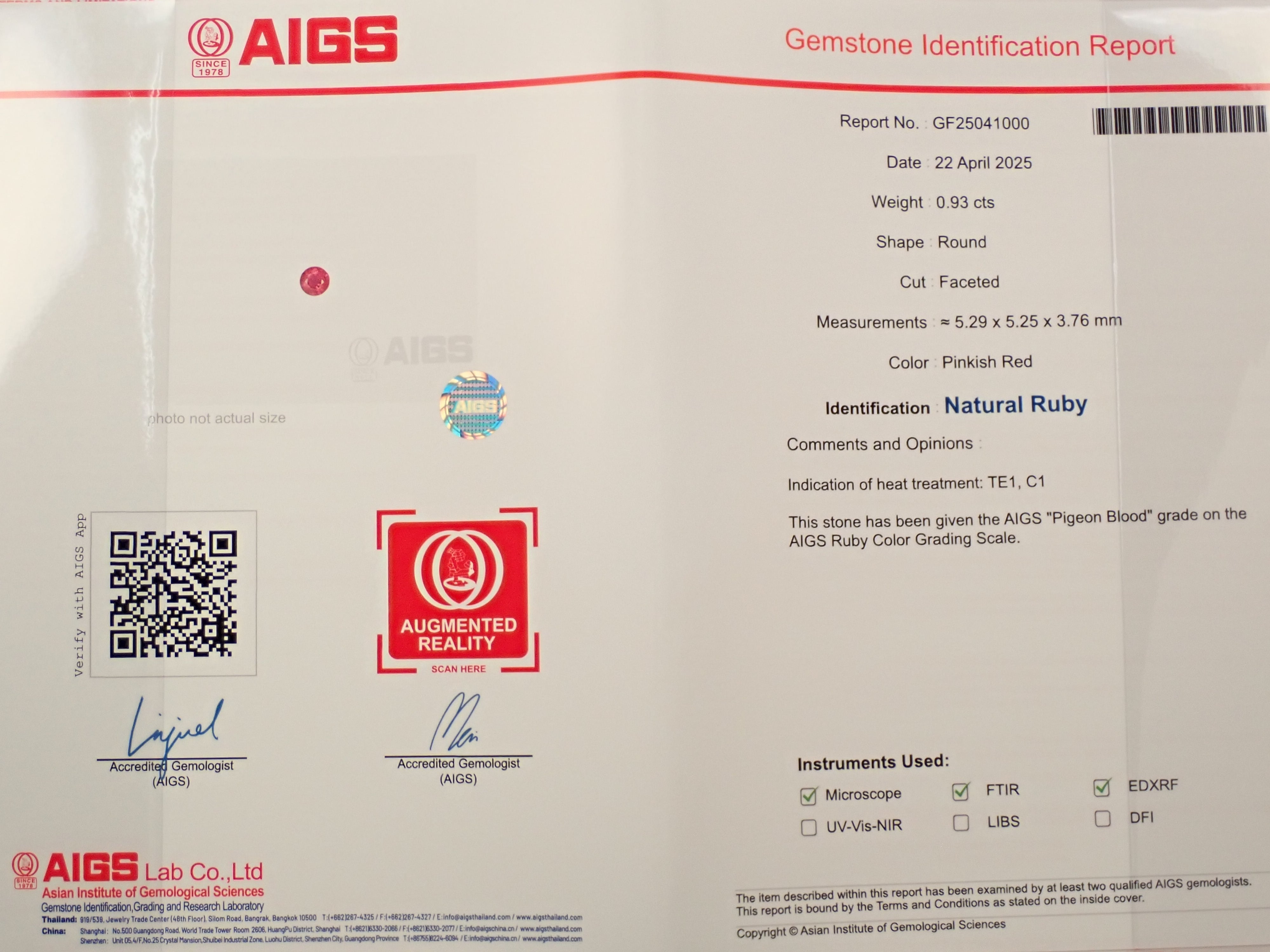 這是一顆5.2毫米圓形切割鴿血紅寶石,透明度高。精緻的切割工藝更顯璀璨奪目。附AIGS真品證書。