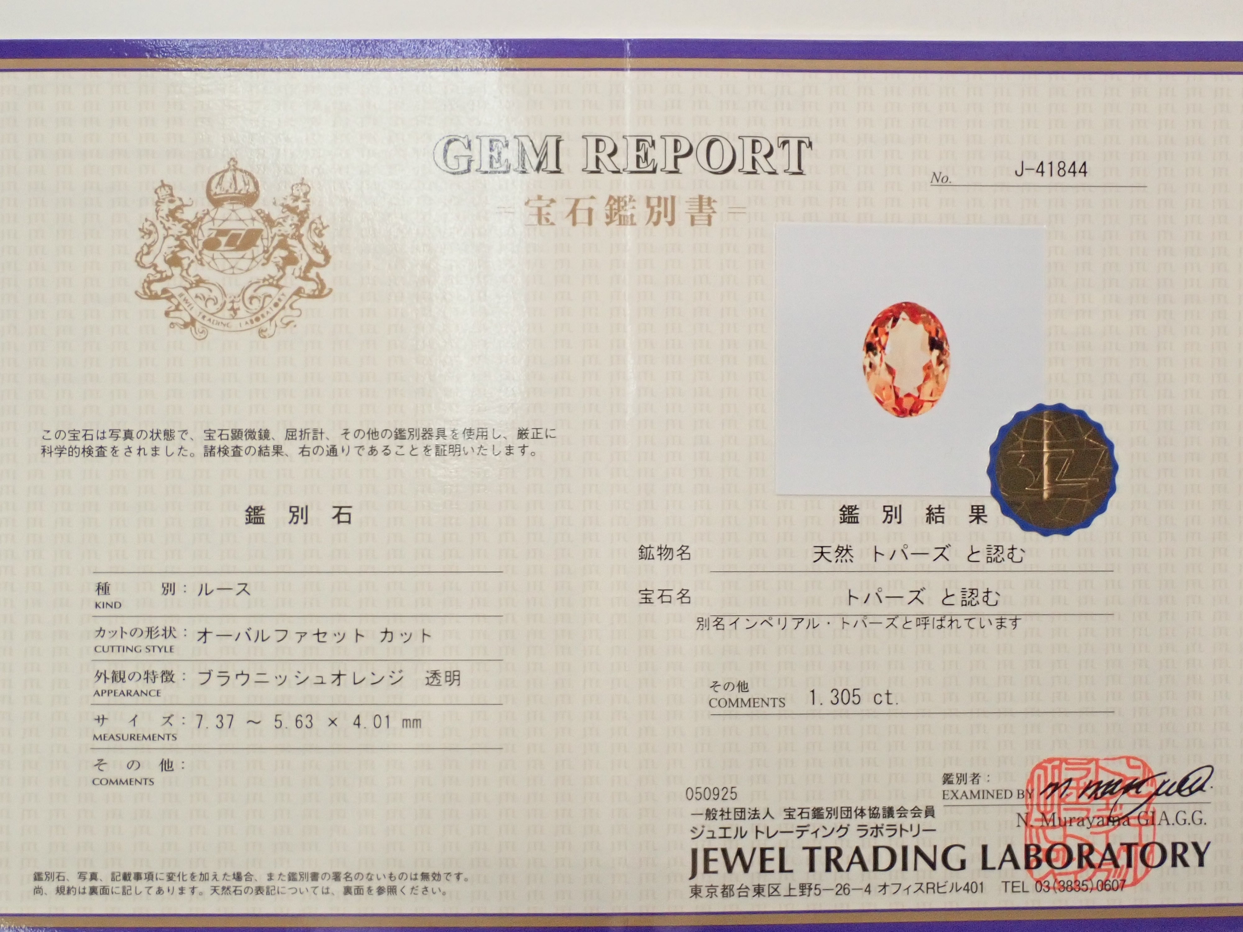・重量:1.305ct