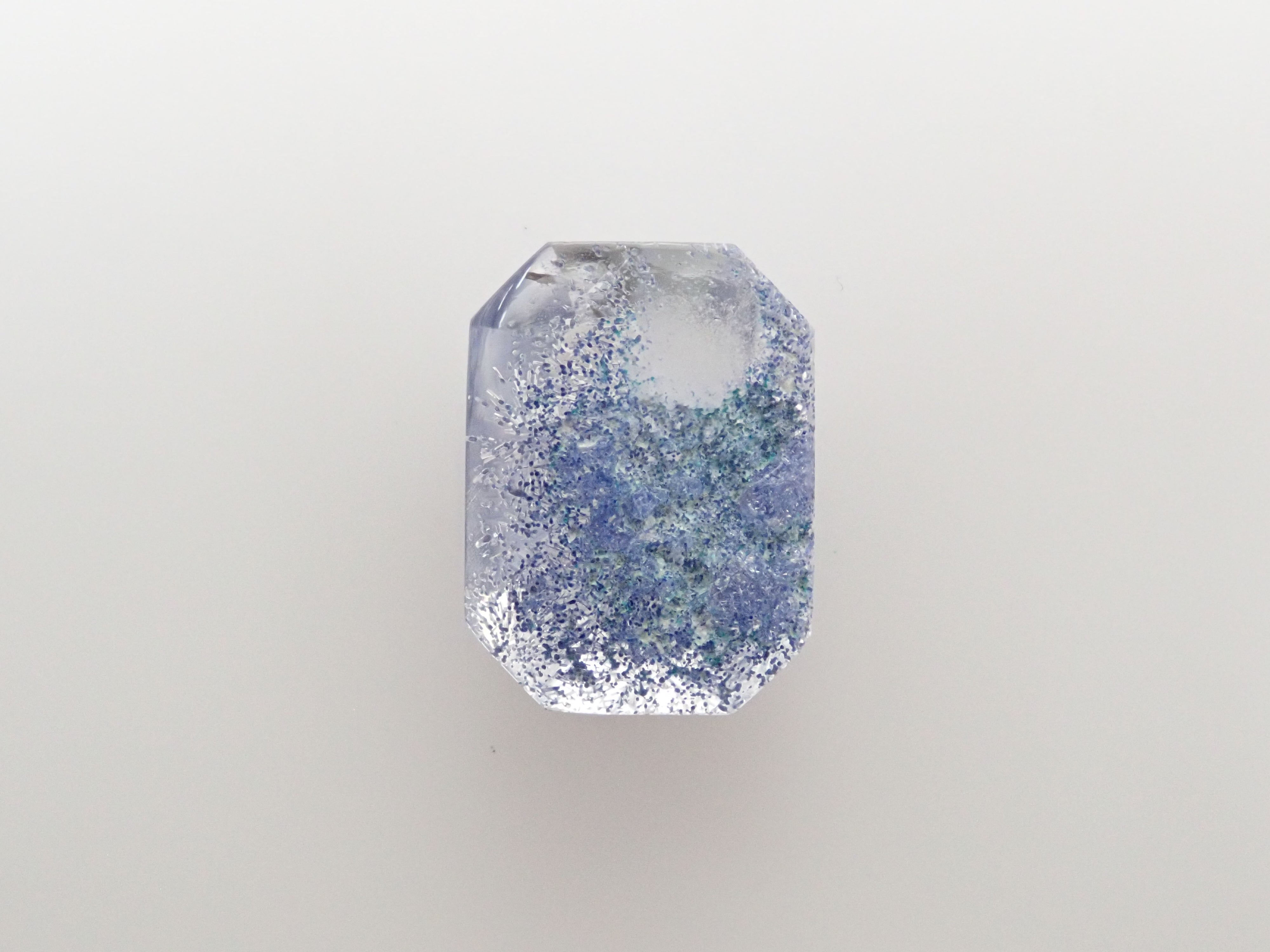 石英,日文稱為“suisho”,是日本常見的寶石,但它也是一種色澤深邃的寶石,種類繁多,包括紫水晶和黃水晶。這款藍線石是石英中的藍線石,擁有美麗的藍色內含物。其他寶石中沒有一種擁有相同的紋路,因此它成為收藏家們的心頭好。