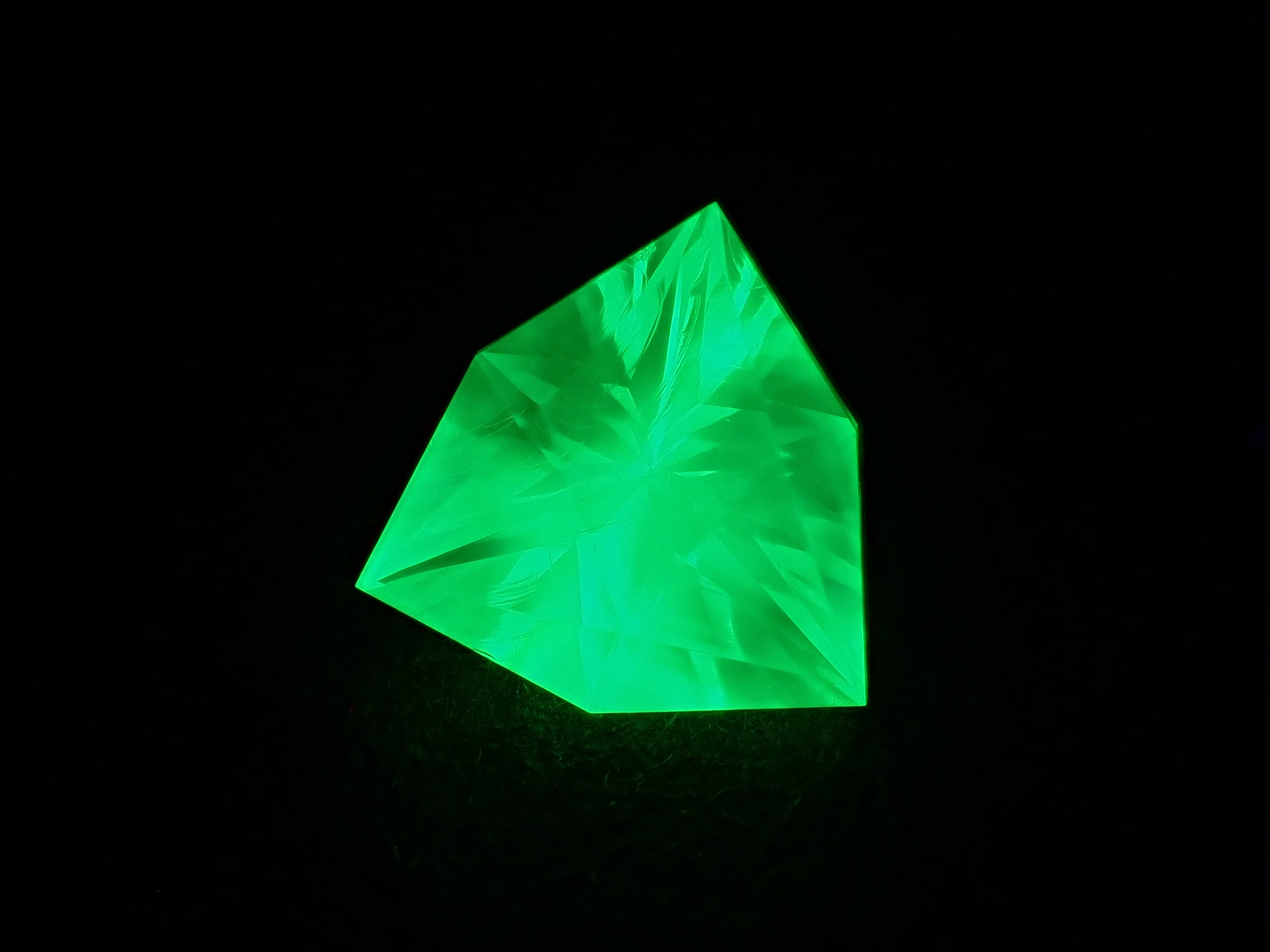 透明蛋白石在黑光照射下會發出薄荷綠的螢光。它是一種被稱為稀有寶石的寶石。顧名思義,它在礦物學上屬於蛋白石家族,但沒有變彩。請使用黑光燈欣賞螢光。這是一種罕見的透明蛋白石,在陽光下也會發出螢光。