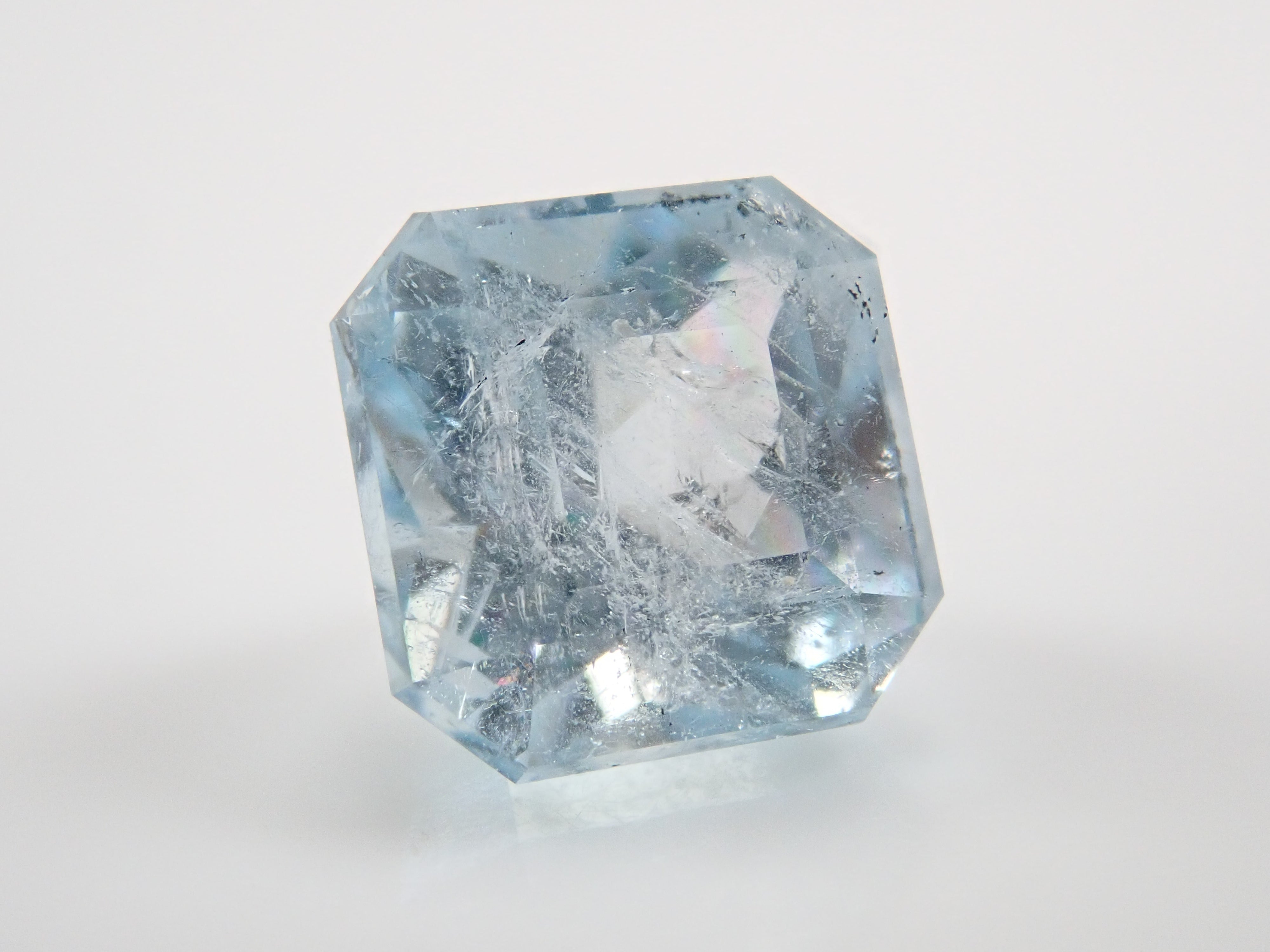 綠柱石(Euclase)的名字來自希臘語“eu”(意為“好”)和“klasis”(意為“破碎”)。顧名思義,它擁有完美的解理。由於產地稀少,這種寶石很少被製成寶石。它有多種顏色,包括白色、無色、淺綠色、淺藍色和深藍色。這是產自哥倫比亞的綠柱石。